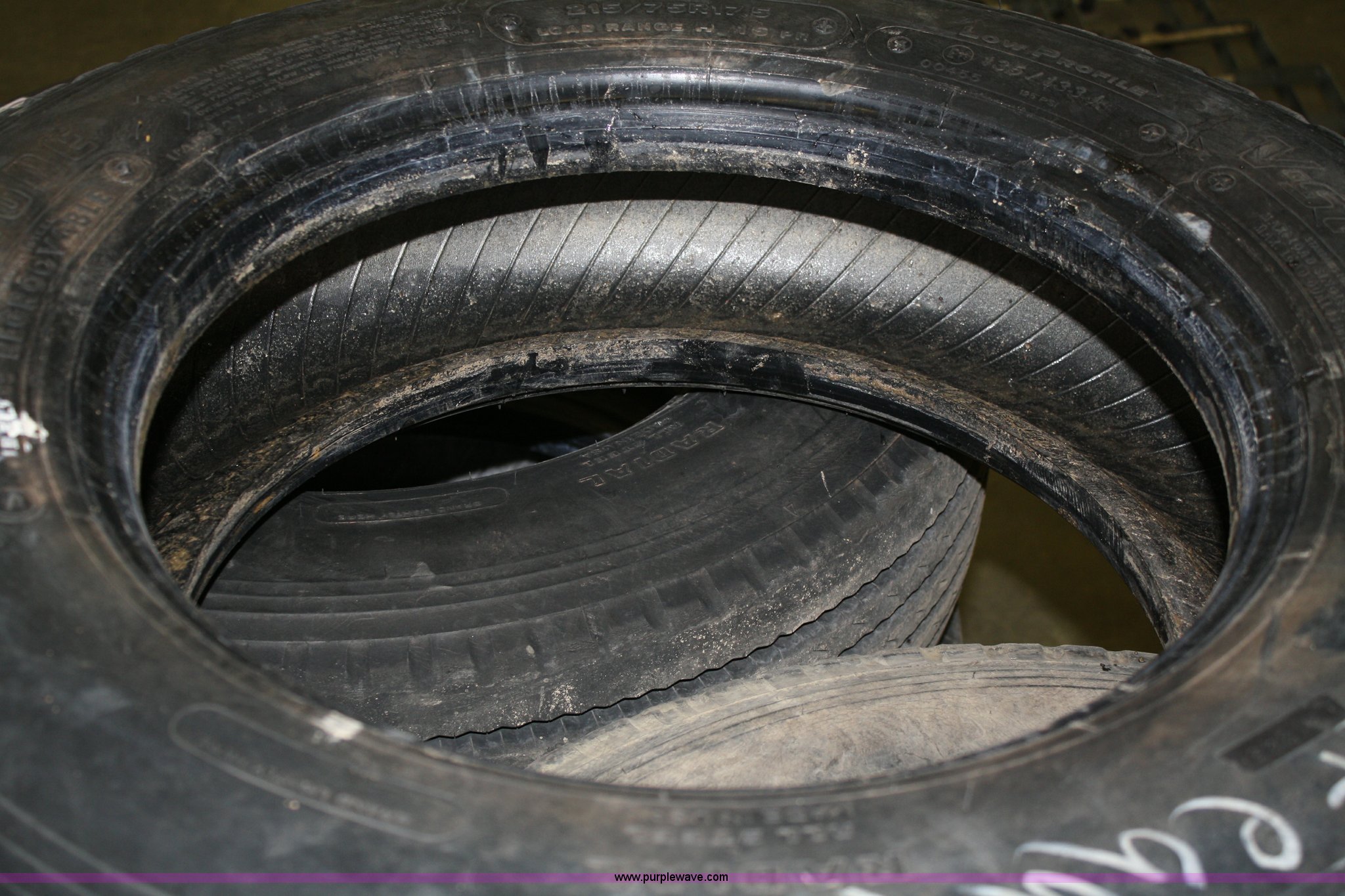 Purple Wave is selling a used Automotive Parts or Acces. in Kansas. This item is a (7) 215/75R17.5 tires with the following: Load range H, 16 ply, Used