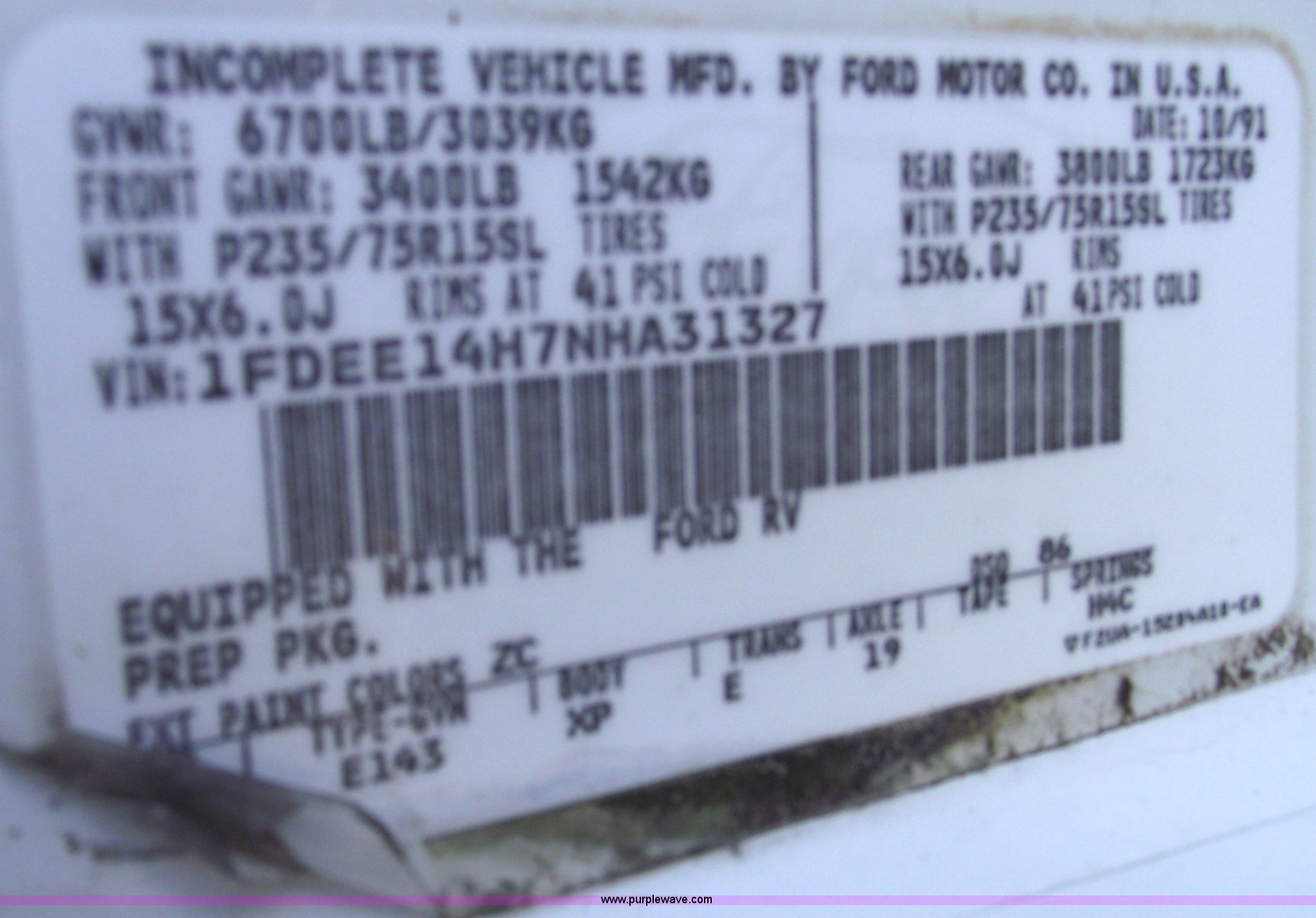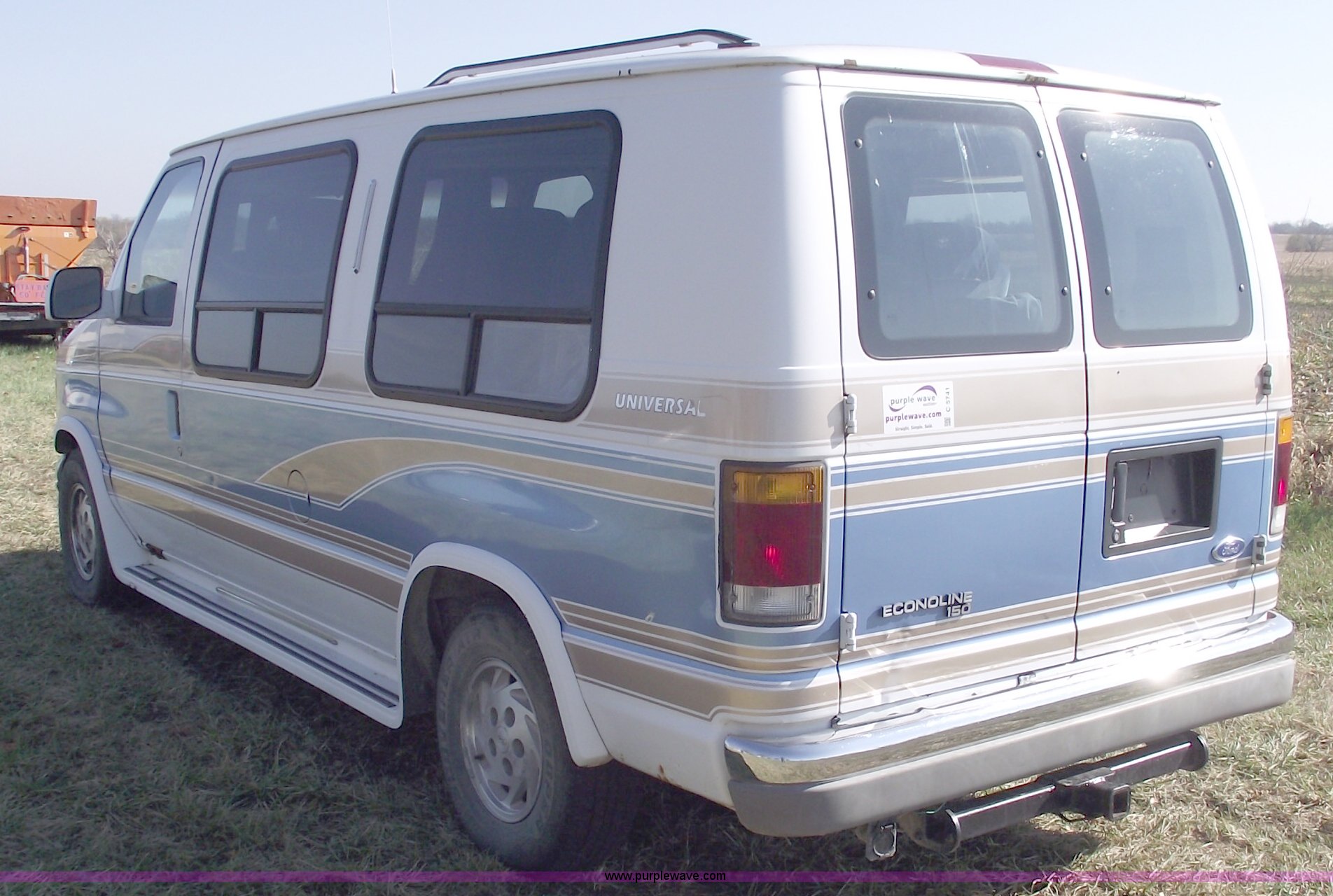 Purple Wave is selling a used Passenger Vehicle in Missouri. This item is a 1992 Ford Econoline E150 van with the following: 167,756 miles on odometer, 5.8L V8 EFI engine, Automatic transmission, AC and heat, Tilt, Cruise, Power windows and locks, Cloth interior, Captain seats, Rear cassette player, Television, CB antenna, Running boards, Receiver hitch, Trailer wiring, Aluminum wheels, 235/75R16 tires, Rust, No radio