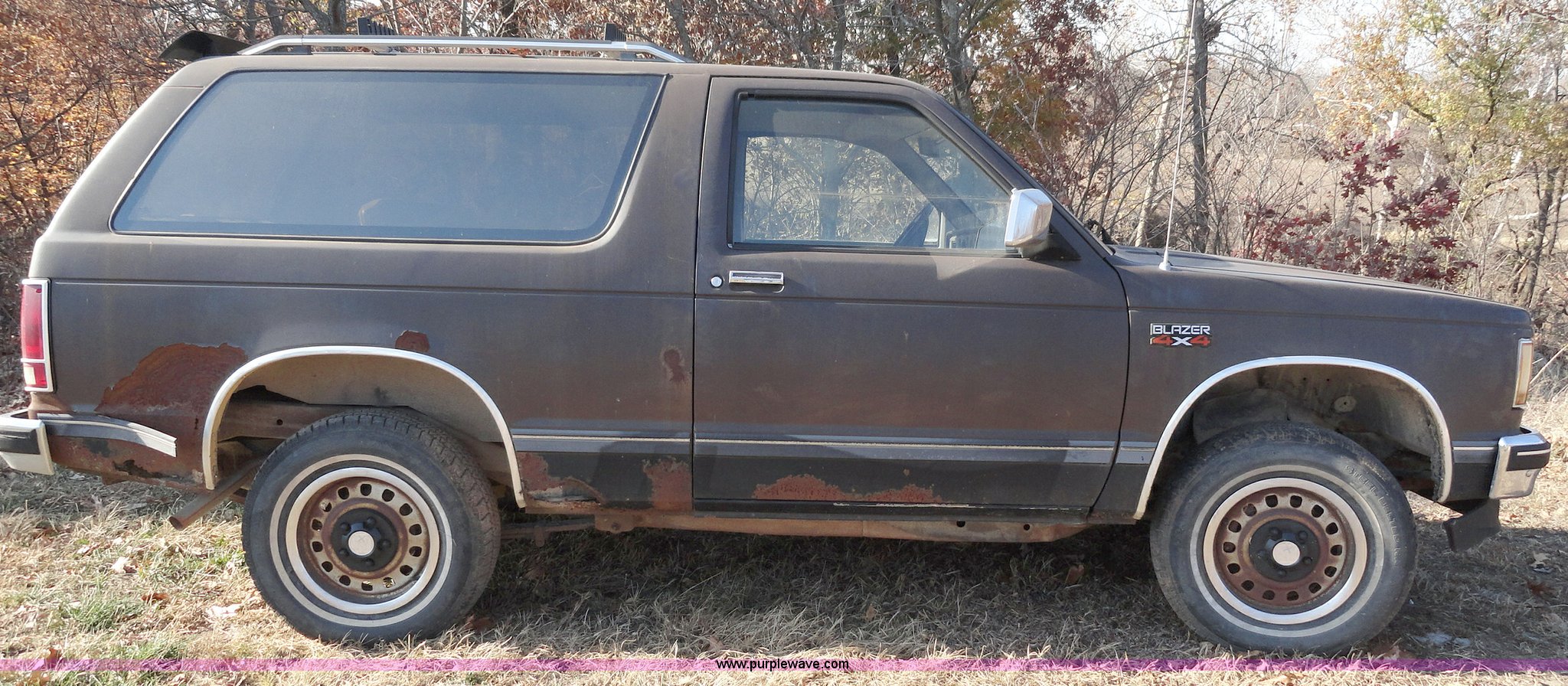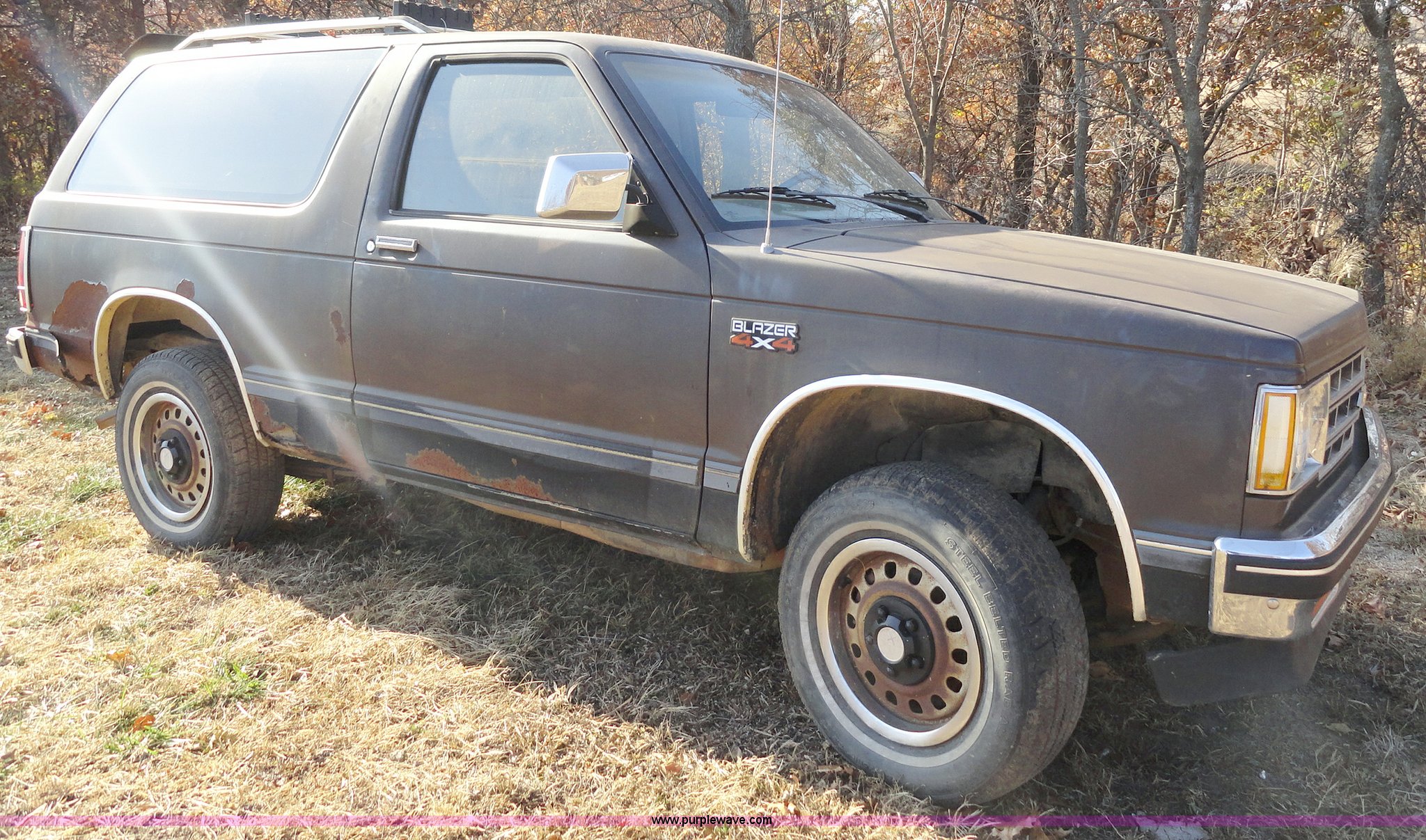 Purple Wave is selling a used Passenger Vehicle in Kansas. This item is a 1984 Chevrolet S10 Blazer SUV with the following: 89,423 miles on odometer, 2.8L V6 2BBL engine, Five speed manual transmission, Four wheel drive, AC and heat, Tilt, FM/Cassette, Manual windows and locks, Vinyl seats, 225/70R15 tires, Rust, Dead battery, Interior/exterior cosmetic damage