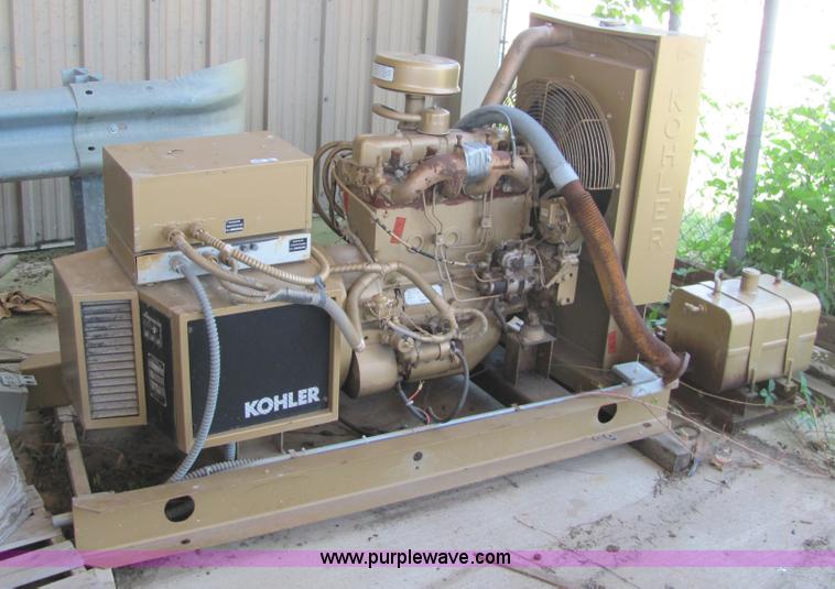 Purple Wave is selling a used Generator Set in Kansas. This item is a Kohler 30 KW generator with the following: 1,333 hours on meter, Model 30R0Z71, 37.5 KV9, Three phase, White four cylinder diesel engine, Includes transfer switch and day tank, Working when removed from service in 2008
