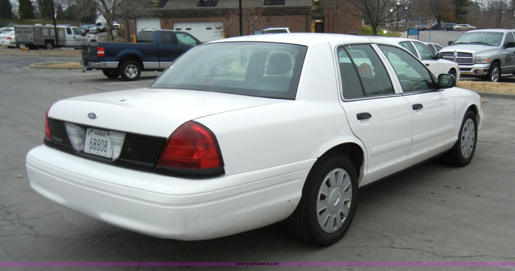 Purple Wave is selling a used Passenger Vehicle in Kansas. This item is a 2008 Ford Crown Victoria Police Interceptor with the following: 81,113 miles on odometer, 4.6L V8 EFI engine, Automatic transmission, AC and heat, Tilt, Cruise, AM/FM, Power windows, locks, mirrors, and seats, 235/55R17 tires, Seat damage