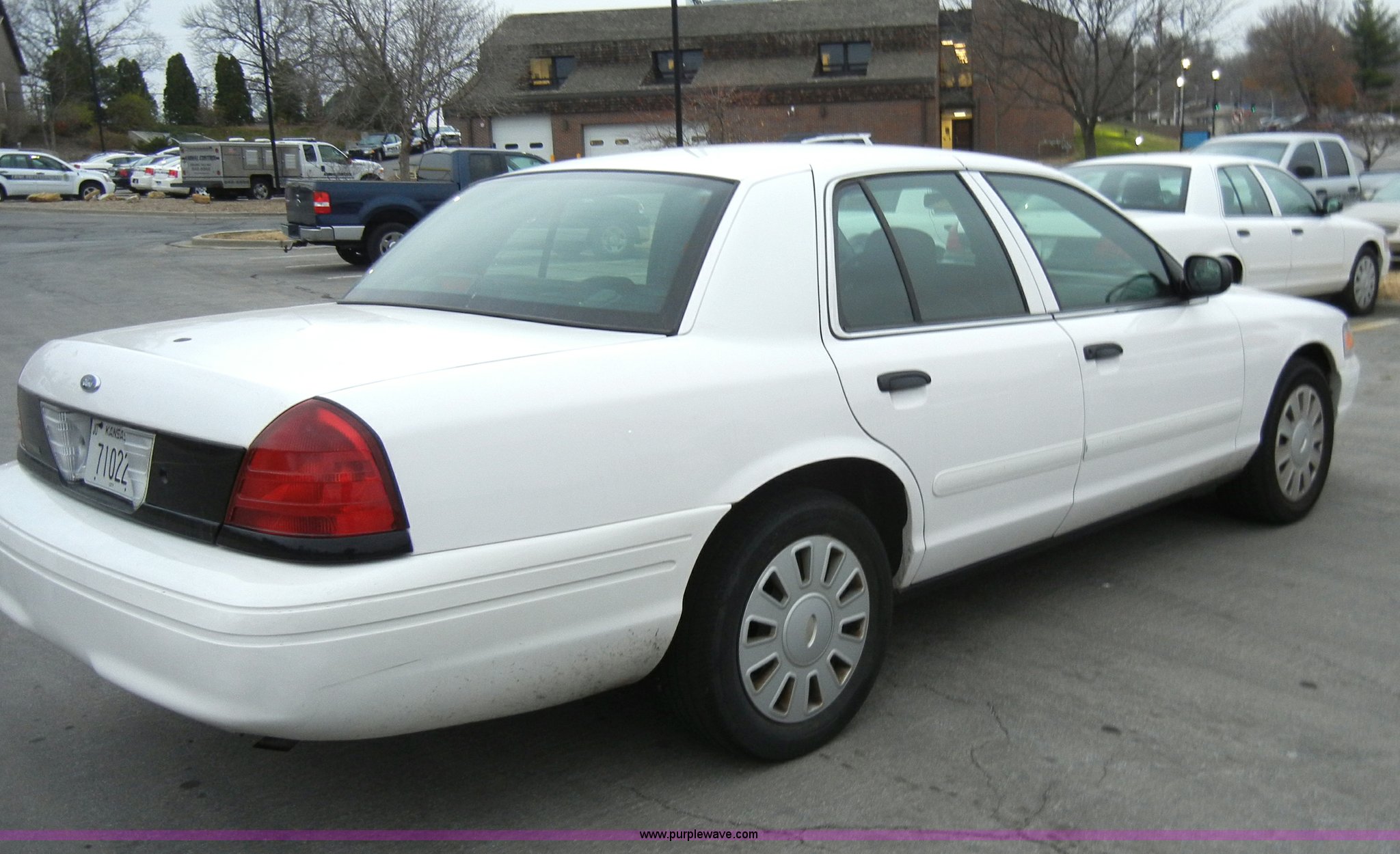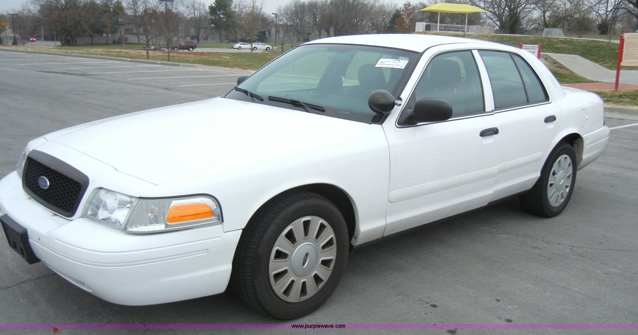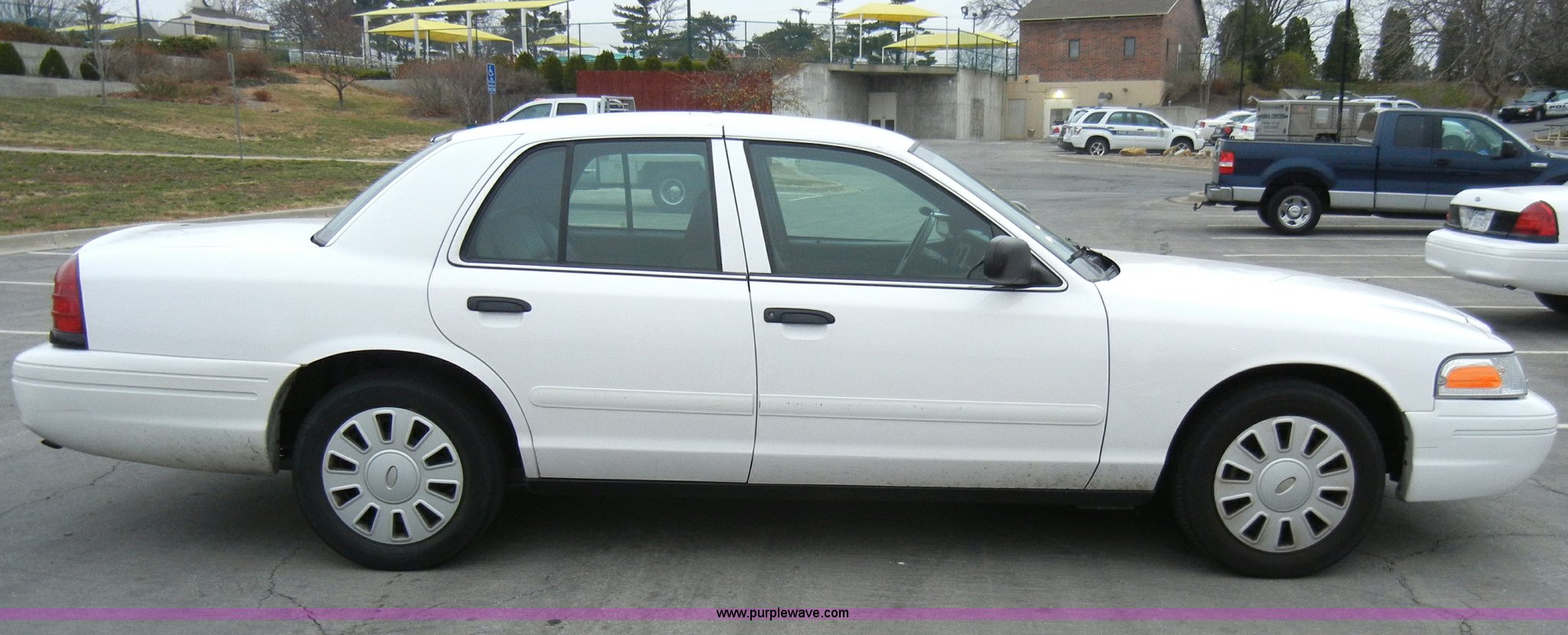 Purple Wave is selling a used Passenger Vehicle in Kansas. This item is a 2008 Ford Crown Victoria Police Interceptor with the following: 64,848 miles on odometer, 4.6L V8 EFI engine, Automatic transmission, AC and heat, Tilt, Cruise, AM/FM, Power windows, locks, mirrors, and seats, Cloth front seats, Vinyl rear seats, 235/55R17 tires, Paint chipping