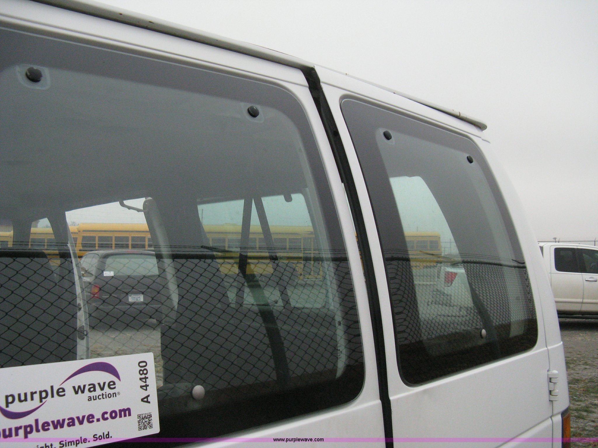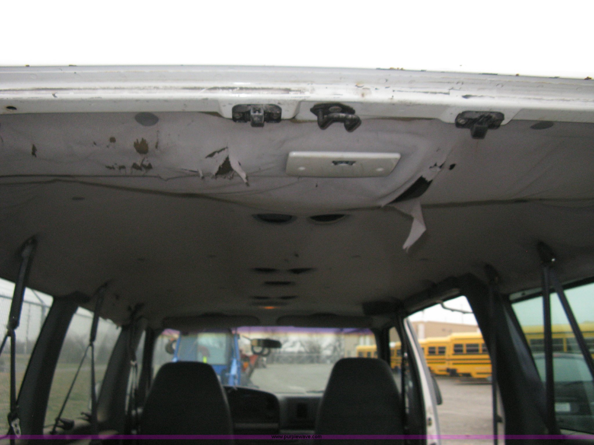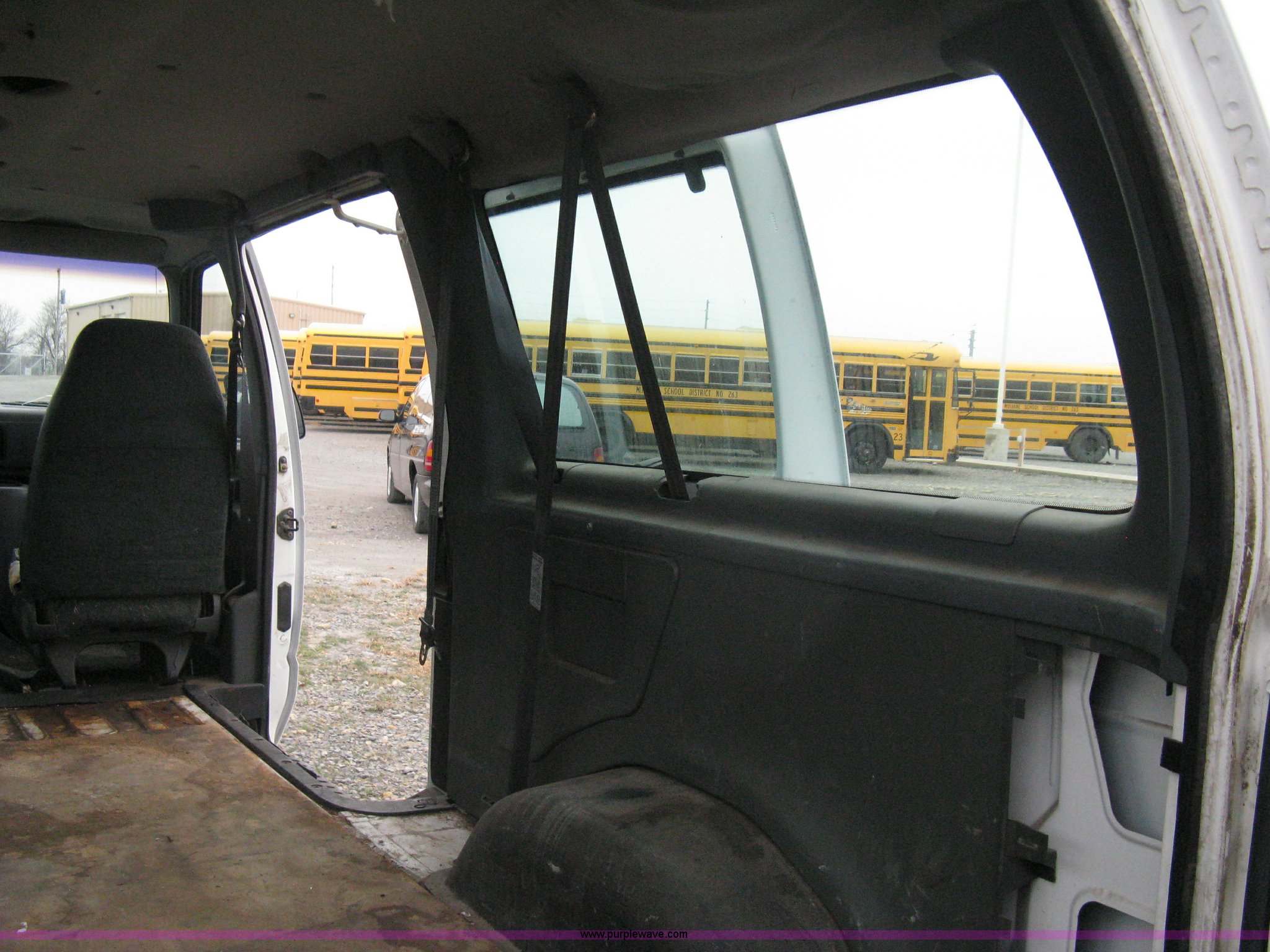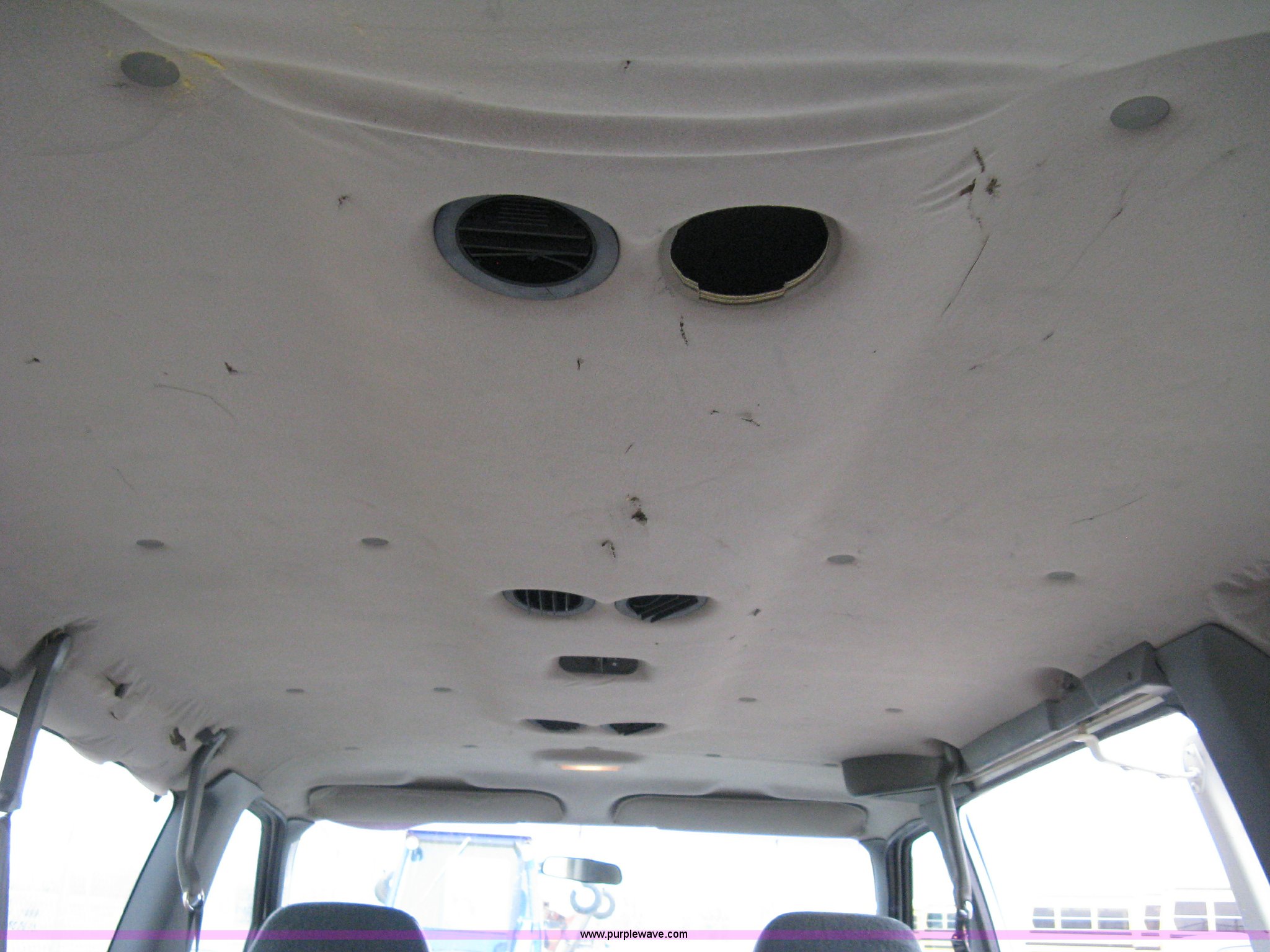 1993 Ford E350 passenger van. 120,150 miles on odometer, 4.9L I6 EFI engine, Automatic transmission, AC and heat, AM/FM, Manual windows and locks, P235/75R16 tires, Cracked windshield, Rear door sprung, does latch shut, Rear seats removed, Battery needs replaced. 1FBHE31Y4PHA91302. Mulvane School Dist.. 10080 E 111th St S.. Mulvane, KS 67110