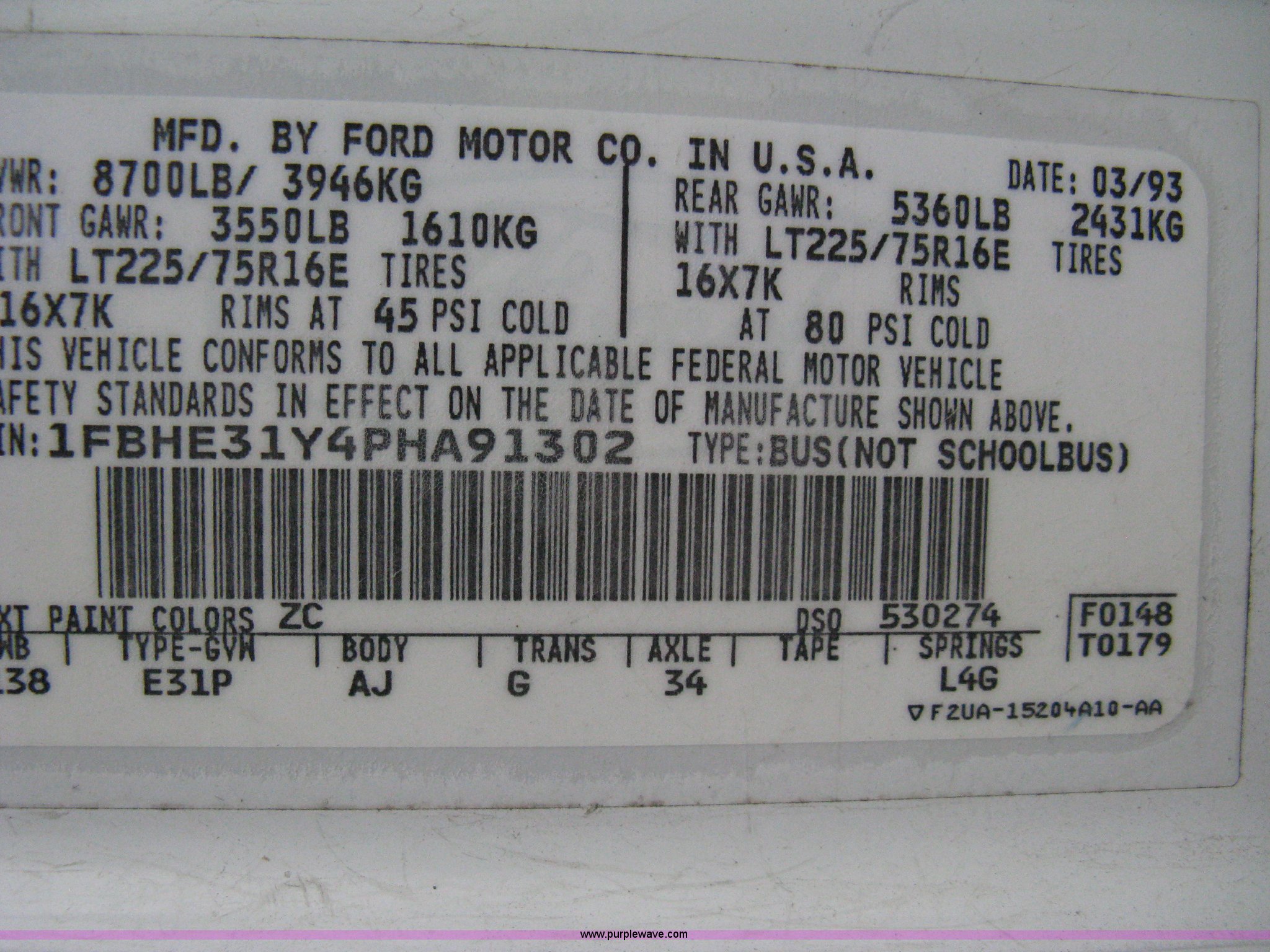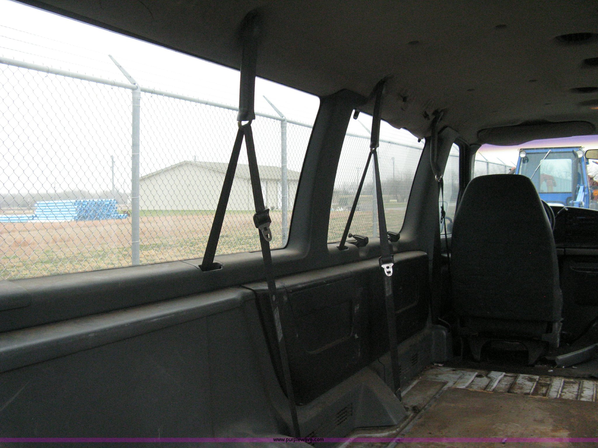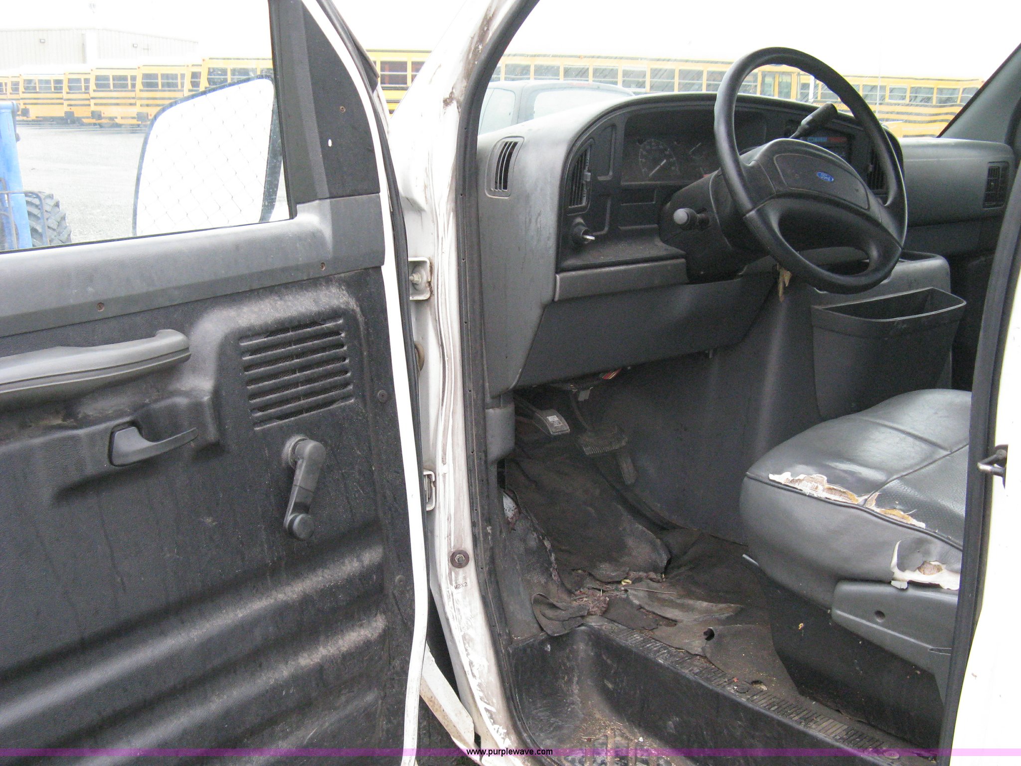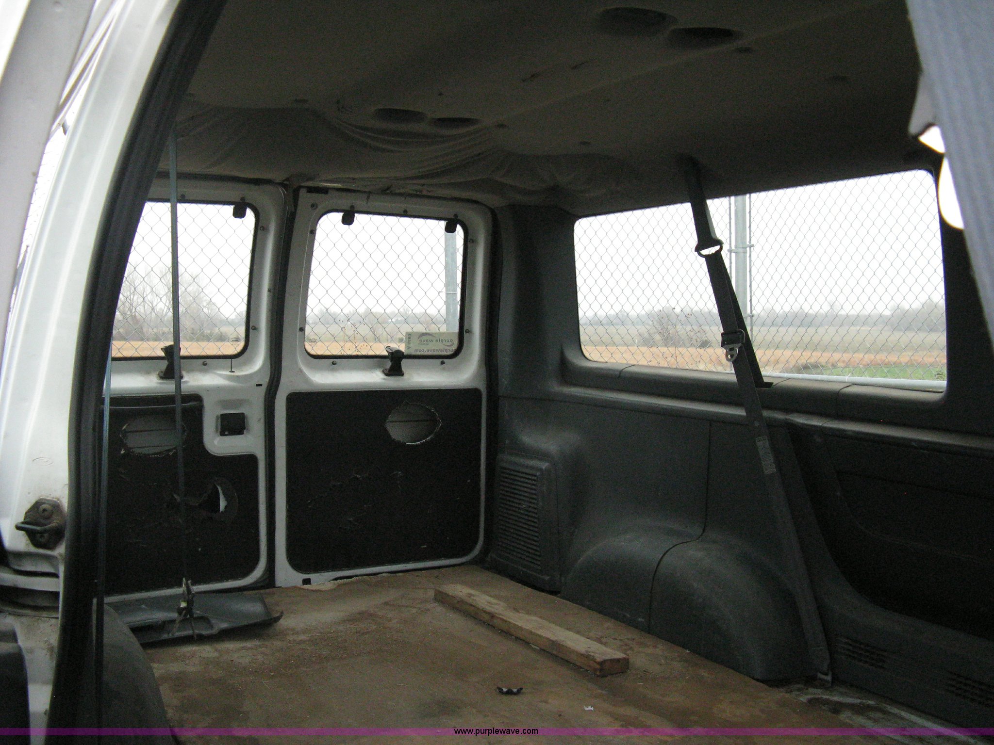 Purple Wave is selling a used Passenger Vehicle in Kansas. This item is a 1993 Ford E350 passenger van with the following: 120,150 miles on odometer, 4.9L I6 EFI engine, Automatic transmission, AC and heat, AM/FM, Manual windows and locks, P235/75R16 tires, Cracked windshield, Rear door sprung, does latch shut, Rear seats removed, Battery needs replaced