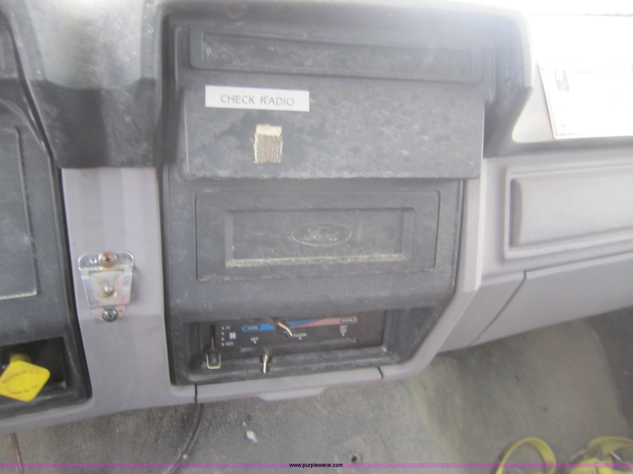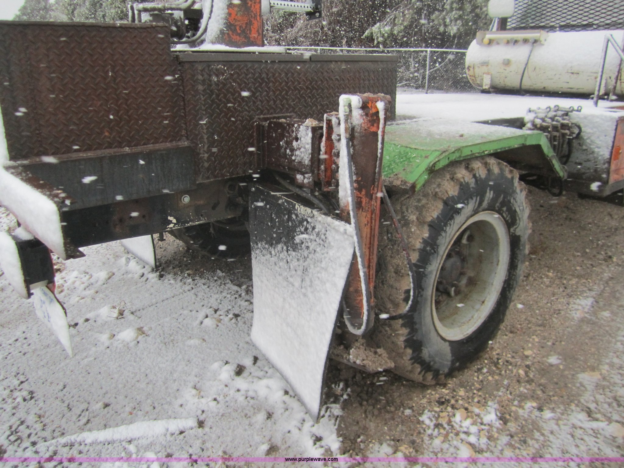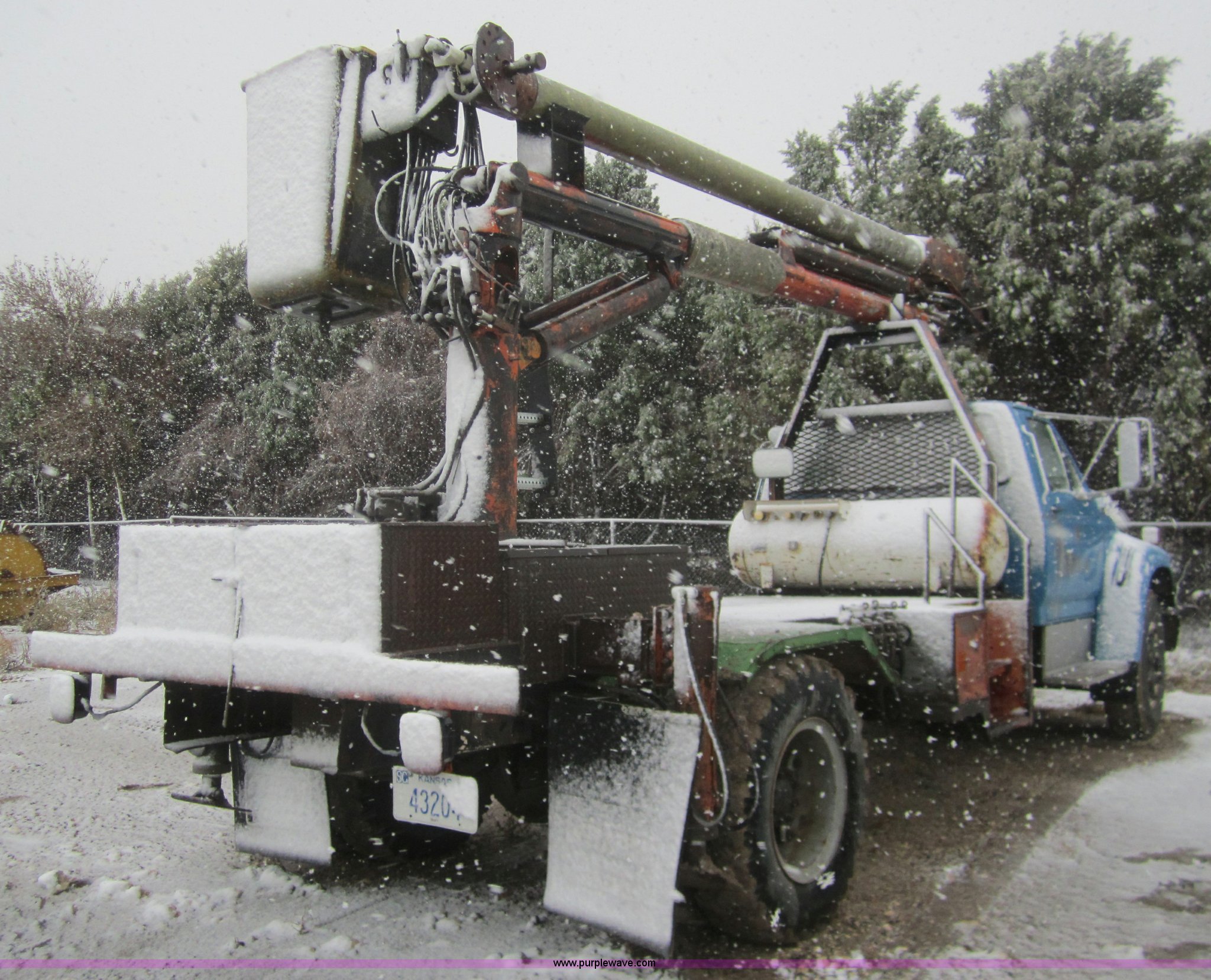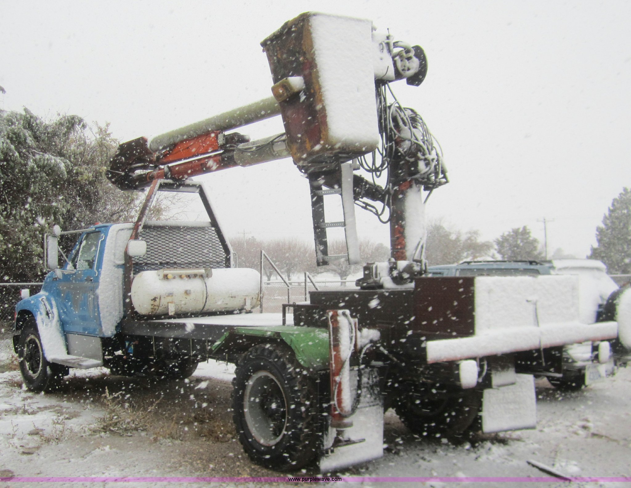 Purple Wave is selling a used Crane Truck in Kansas. This item is a 1995 Ford F700 bucket truck with the following: 26,748 miles on odometer, V8 propane engine, Four speed manual transmission with hi/low axle, Heater, Power American bucket, Model ABSS-12-42, Air brakes, 10.00-20 tires