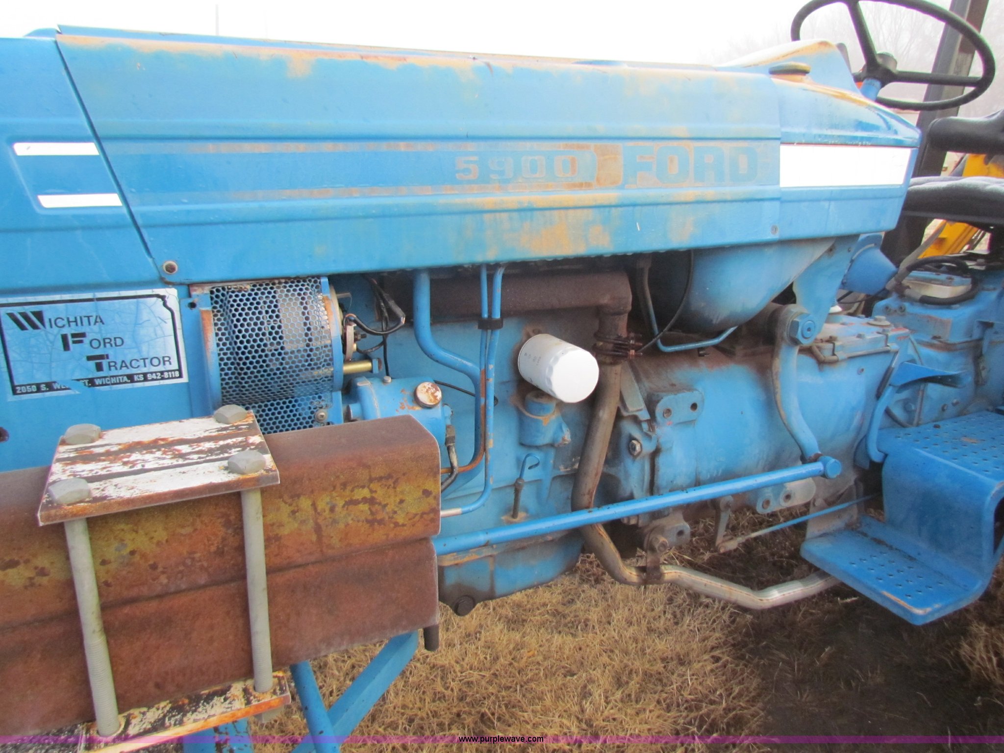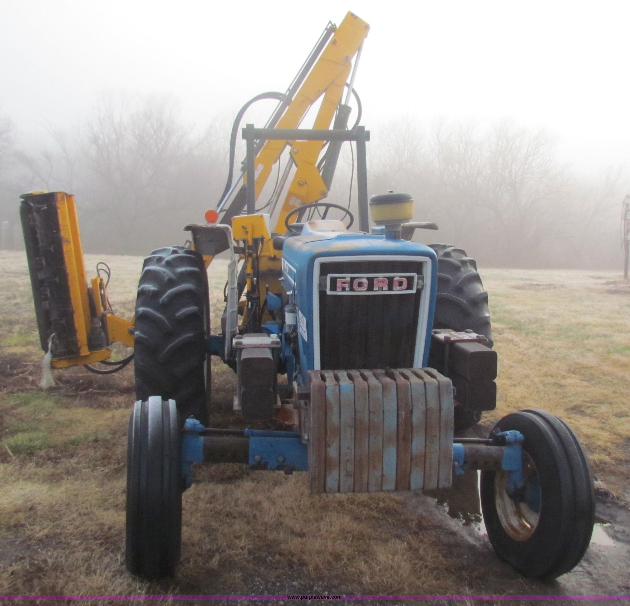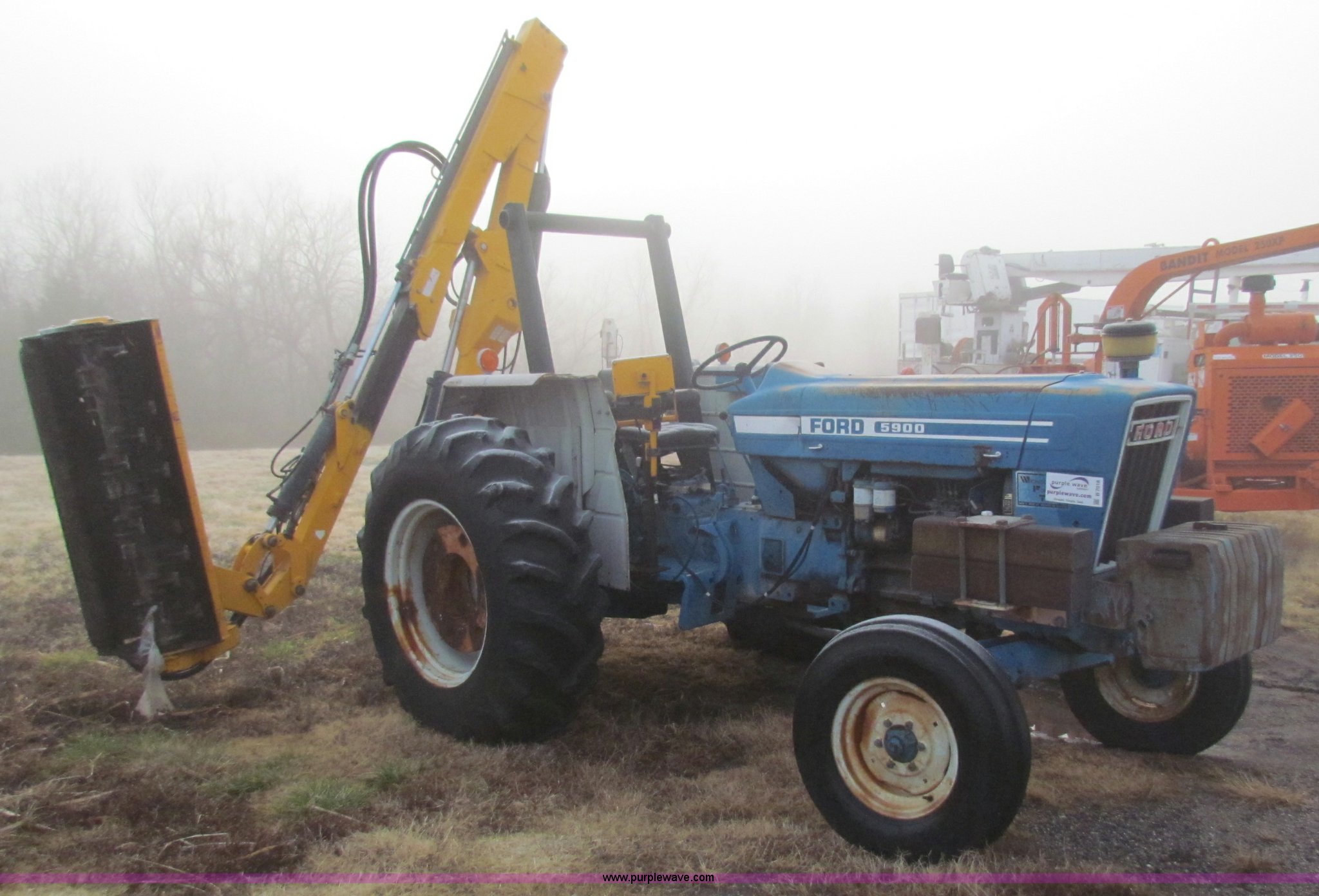 Purple Wave is selling a used Tractor in Kansas. This item is a 1986 Ford 5900 tractor with flail boom mower with the following: 1,488 hours on meter, Four cylinder diesel engine, Serial 0XF138737, Four speed Hi/Low transmission, OROPS, 540 PTO, 2000 Turner flail boom mower, 4' deck, Serial 18960, (11) suitcase weights, (4) block weights, 16.9-30 rear tires, 7.50-16 front tires, Intermittent operational issues, Serial 74NY-6015-A