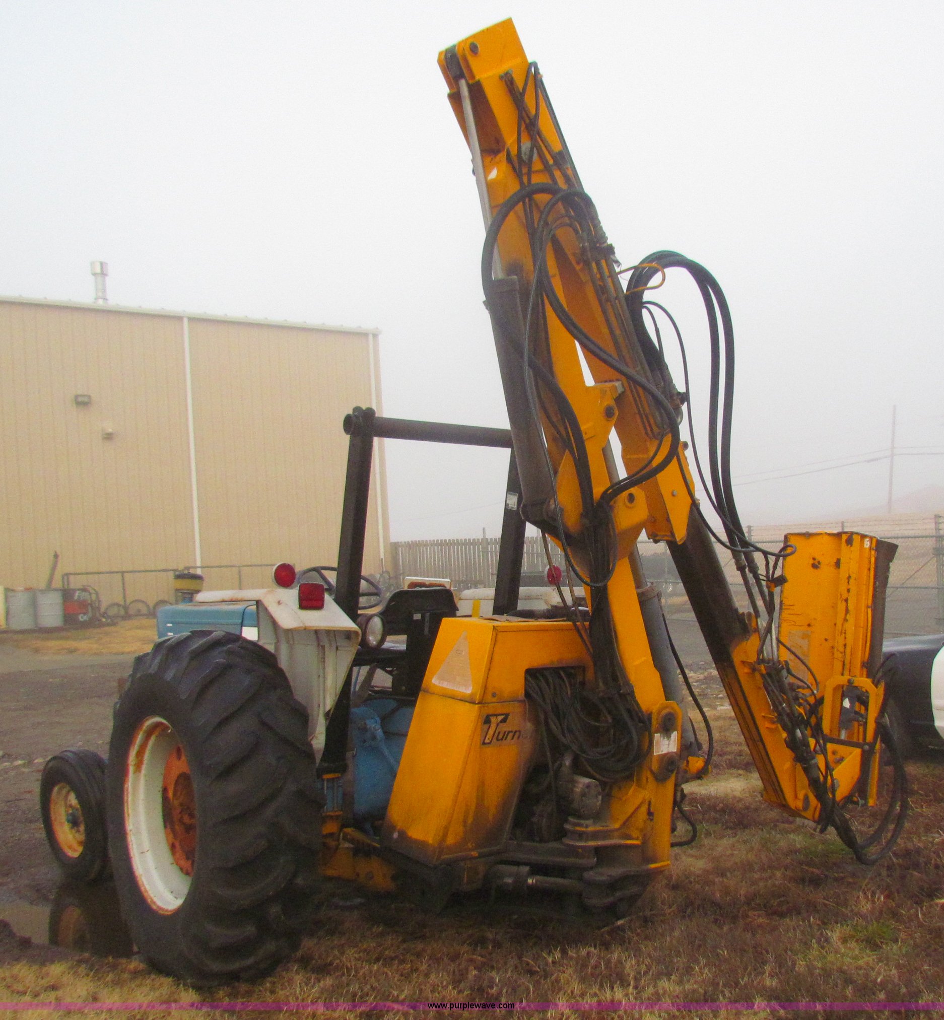 1986 Ford 5900 tractor with flail boom mower. 1,488 hours on meter, Four cylinder diesel engine Serial 0XF138737, Four speed Hi/Low transmission, OROPS, 540 PTO, 2000 Turner flail boom mower 4' deck, Serial 18960, (11) suitcase weights, (4) block weights, 16.9-30 rear tires, 7.50-16 front tires, Intermittent operational issues, Serial 74NY-6015-A. City Of Winfield fleet services. Winfield, KS 67156