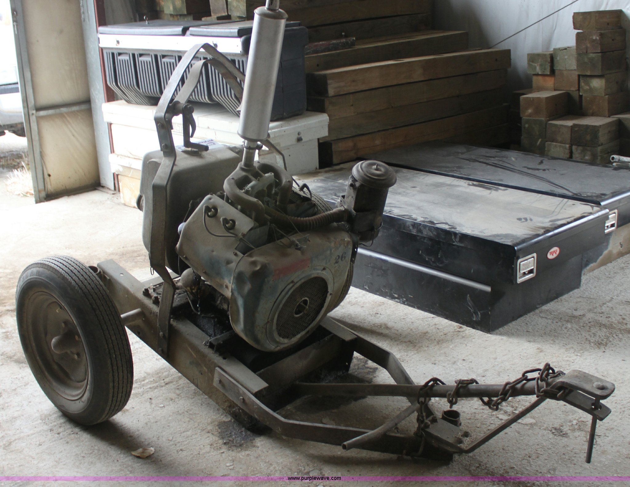 Purple Wave is selling a used Pump in Kansas. This item is a Marlow 4" water pump with the following: Model 4C7, Wisconsin four cylinder gas engine, 5.60-15 tires, Pin hitch