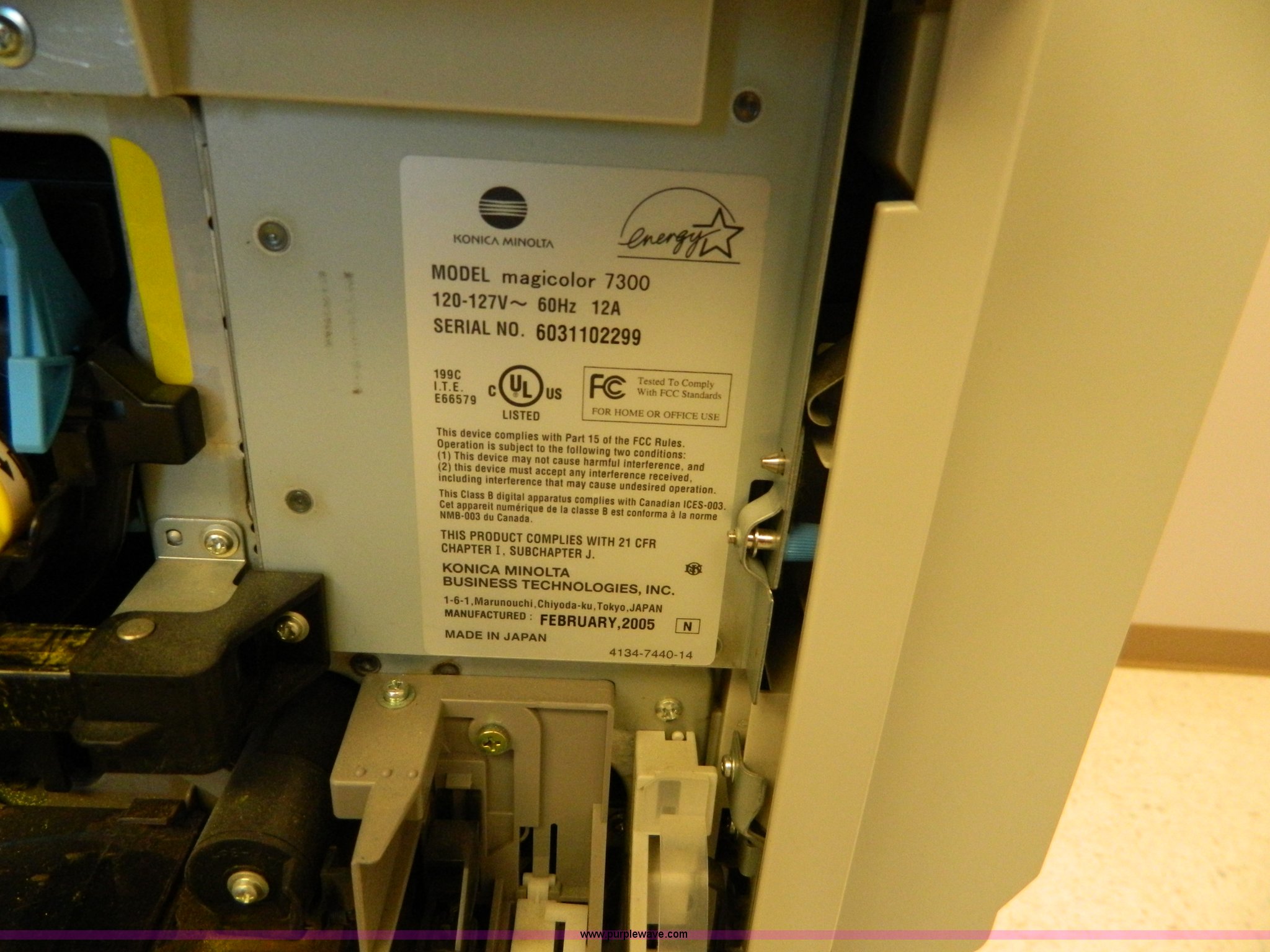 2006 Minolta Magicolor 7300 copier. 120v, Stand not included, Serial 6031102299. USD 281. 101 W Main. Hill City, KS 67642