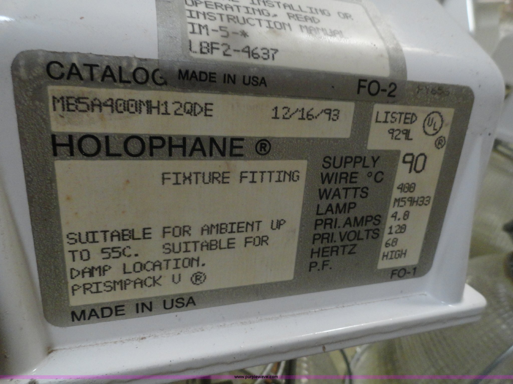 Approximately 67 400 watt bay lights. Holophane, Some with electrical conduit. 200 Rice Rd. Silver Lake, KS 66539