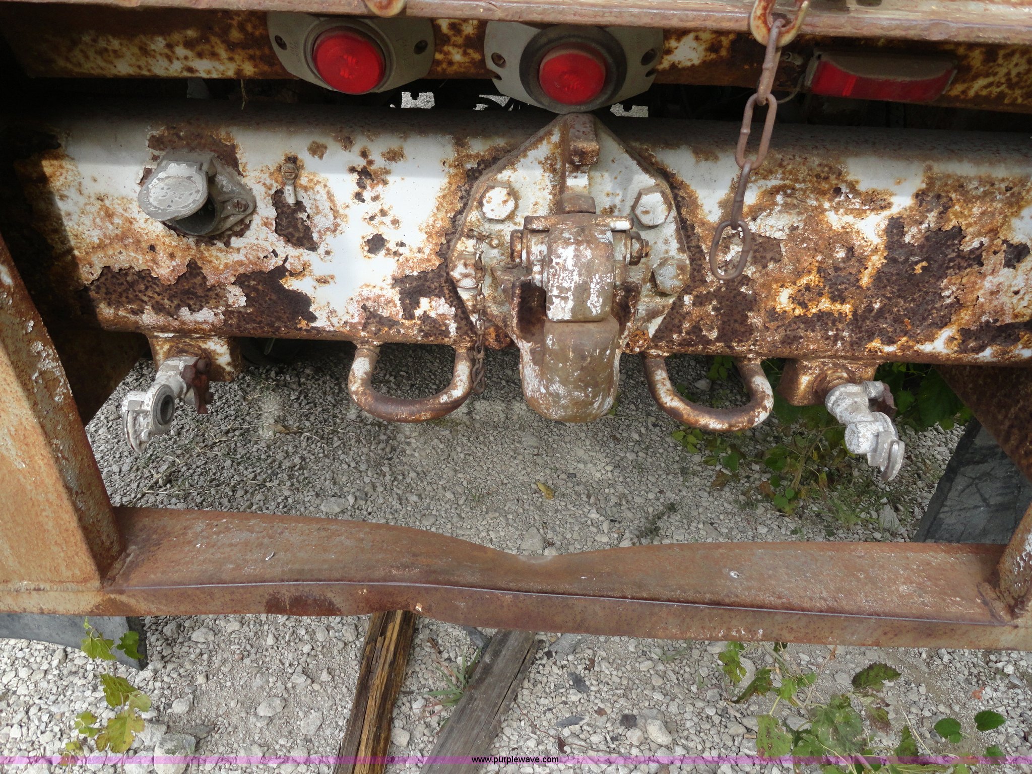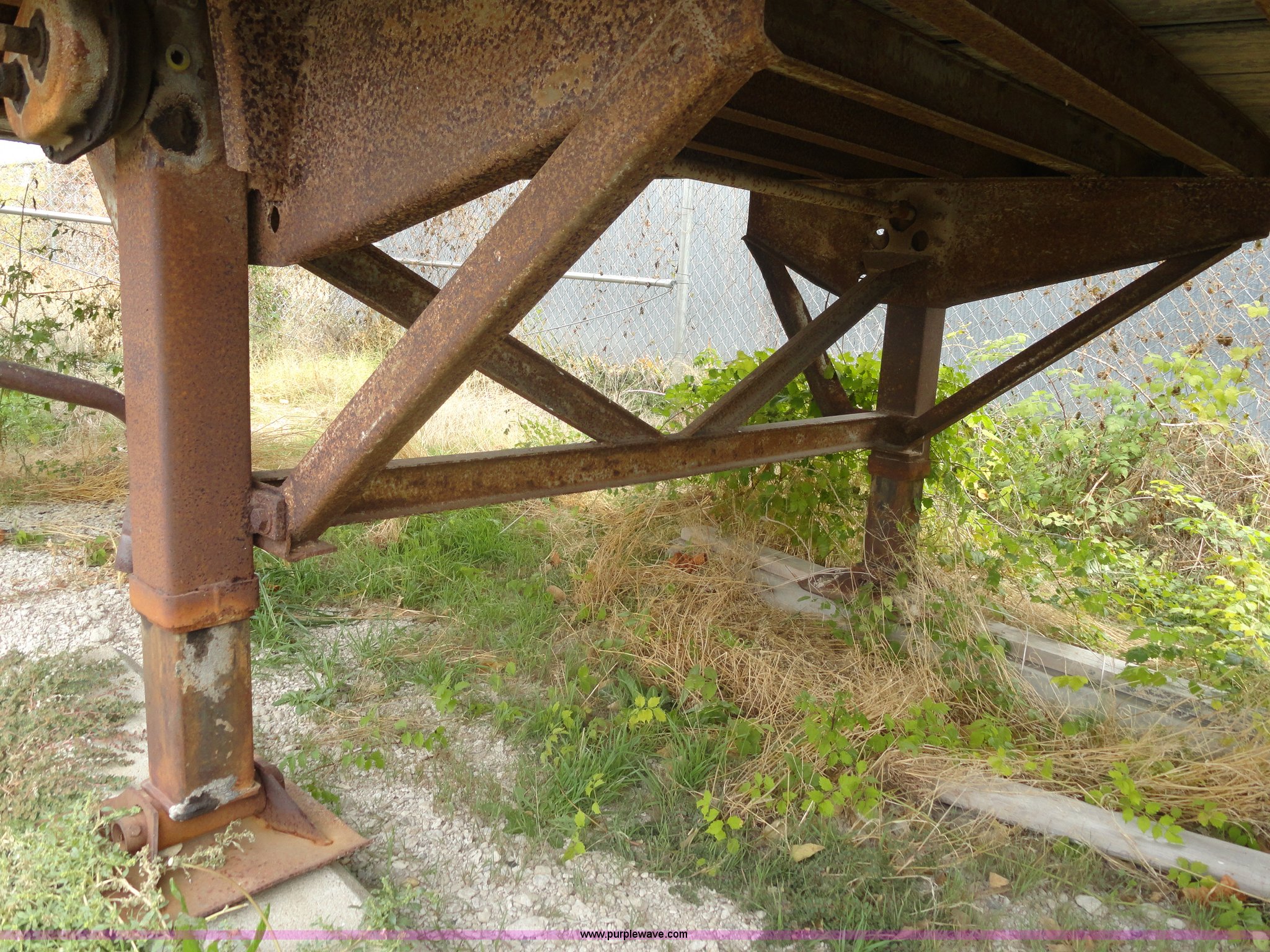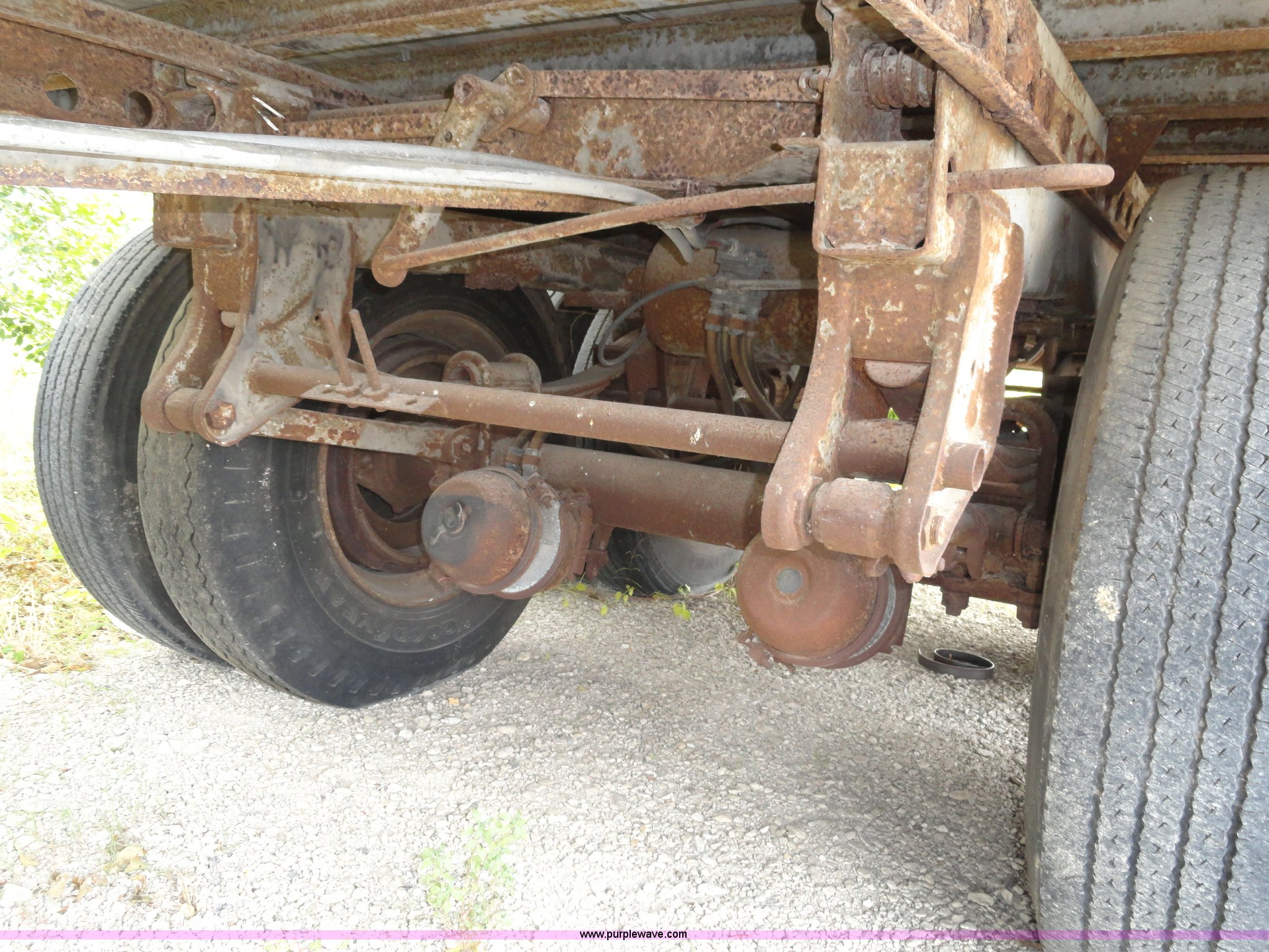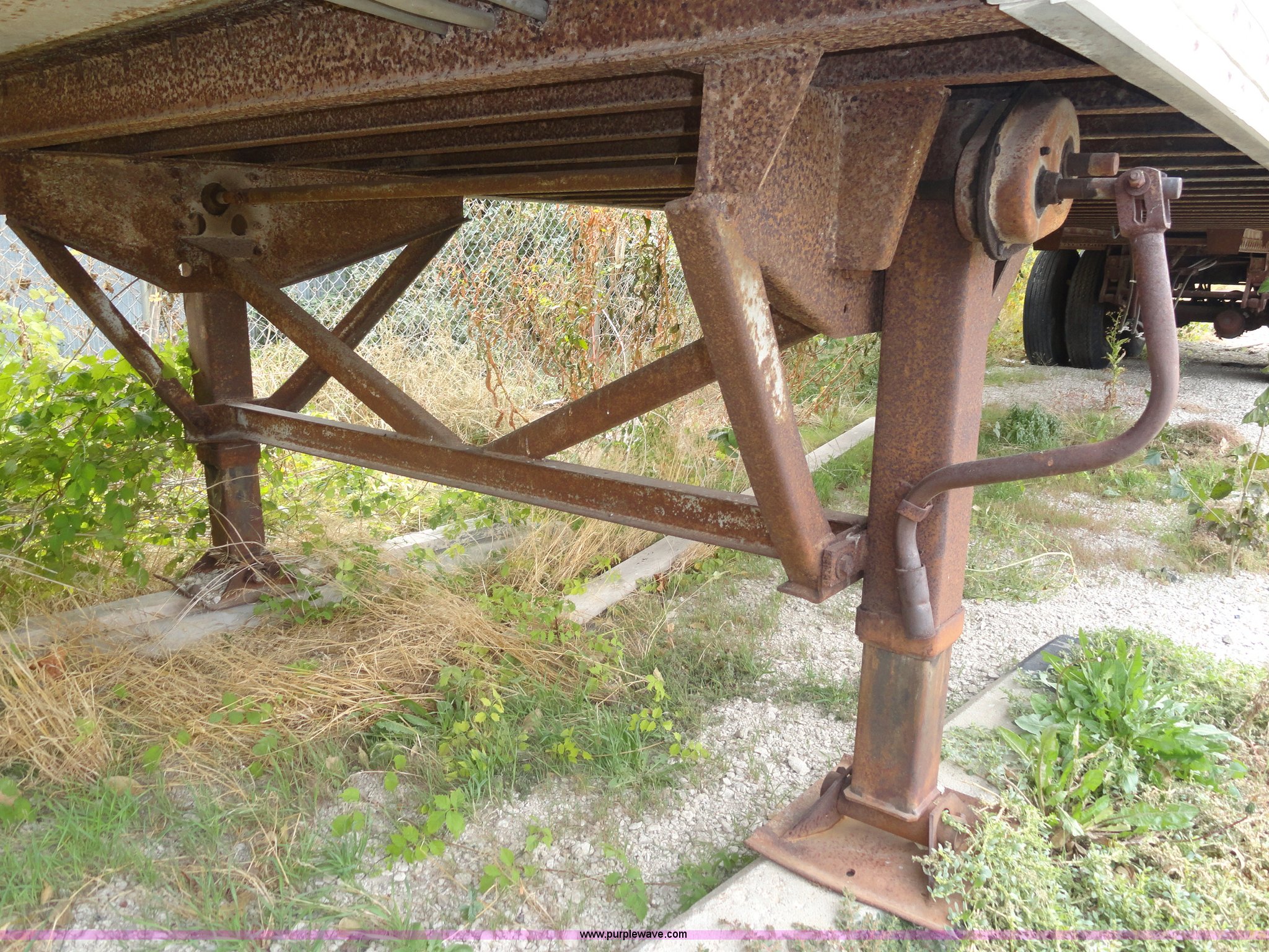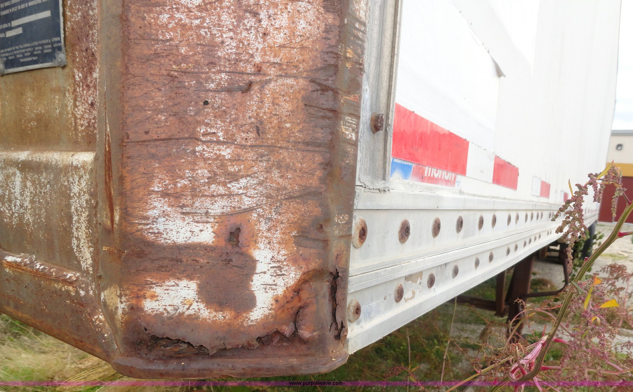 Purple Wave is selling a used Dry Van Trailer in Kansas. This item is a 1982 Monon FA-70-CDW dry van trailer with the following: 45'L x 8'W, 13.5'H, Double rear doors, Wood floor, Spring suspension, Rear pintle hitch and air hookup, 11R22.5 tires, GVWR 68,000 lbs, Used as storage, Holes in front of trailer, Frame rust