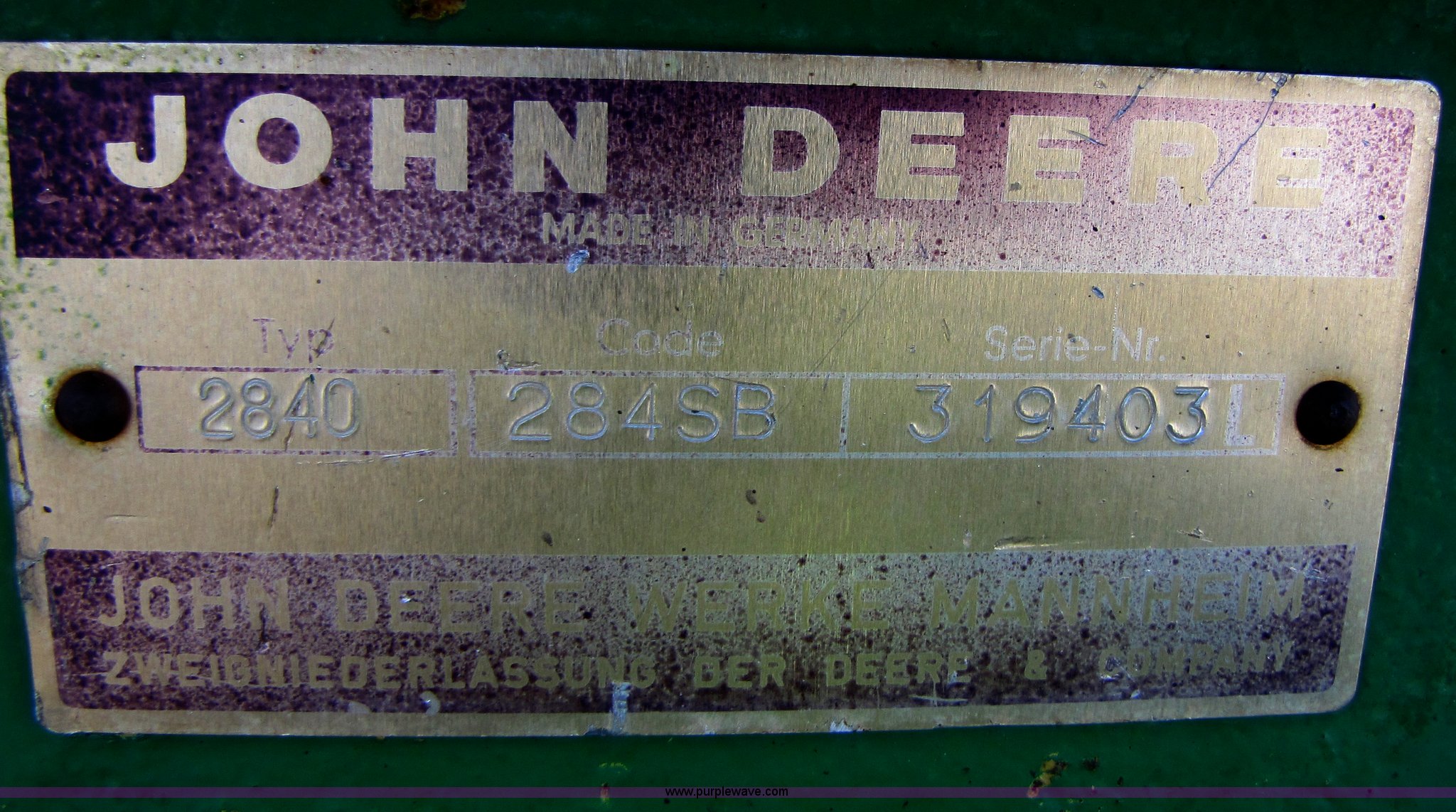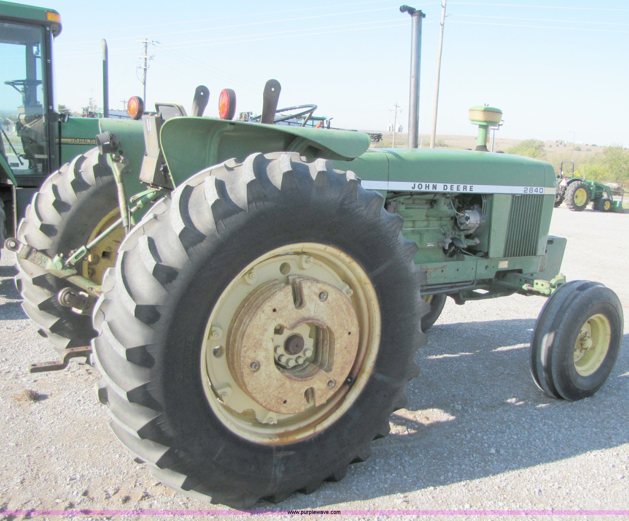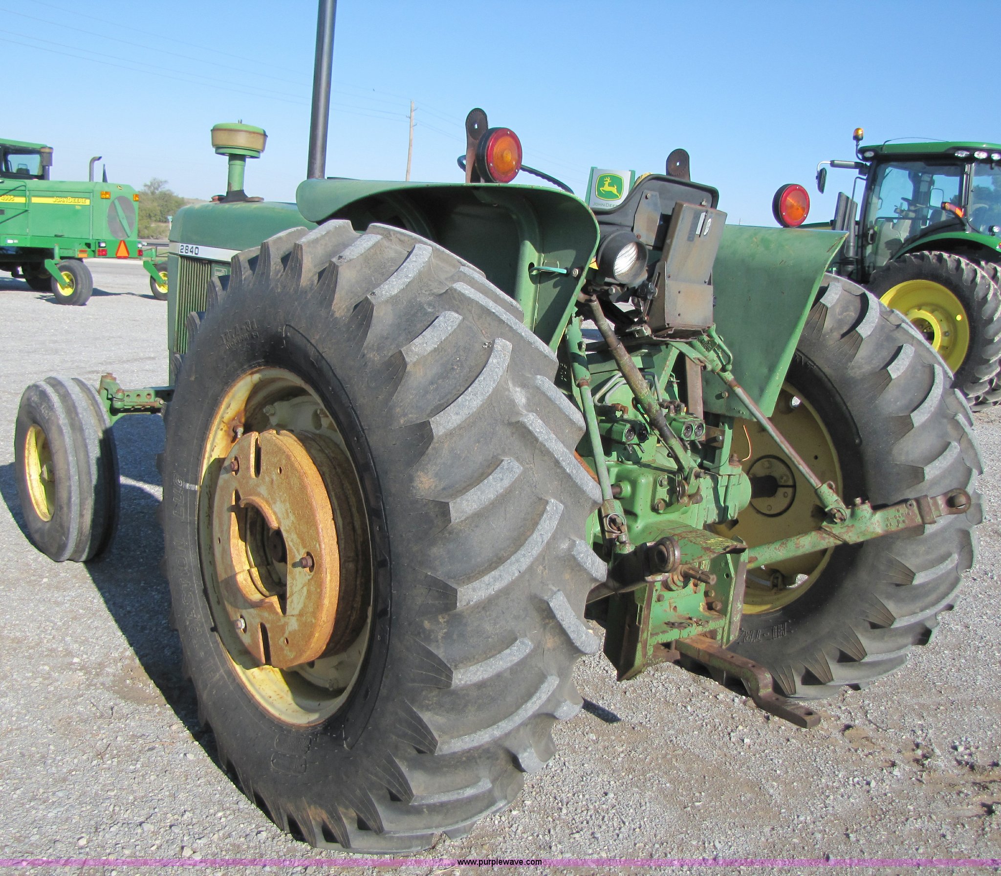 Purple Wave is selling a used Tractor in Oklahoma. This item is a 1977 John Deere 2840 tractor with the following: 2,696 hours on meter, John Deere 5.4L six cylinder diesel engine, 80 PTO HP, Model BB29DL-12, Serial 38680800, Partial Powershift transmission, 12F-6R gears, Differential lock, Three point, Draw bar, 540/1000 PTO, (2) rear hydraulic remote sets, 28 gallon fuel tank, Rear wheel weights, 10.00-16 front tires, 18.4-34 rear tires, Serial 219403, Stock# 61240