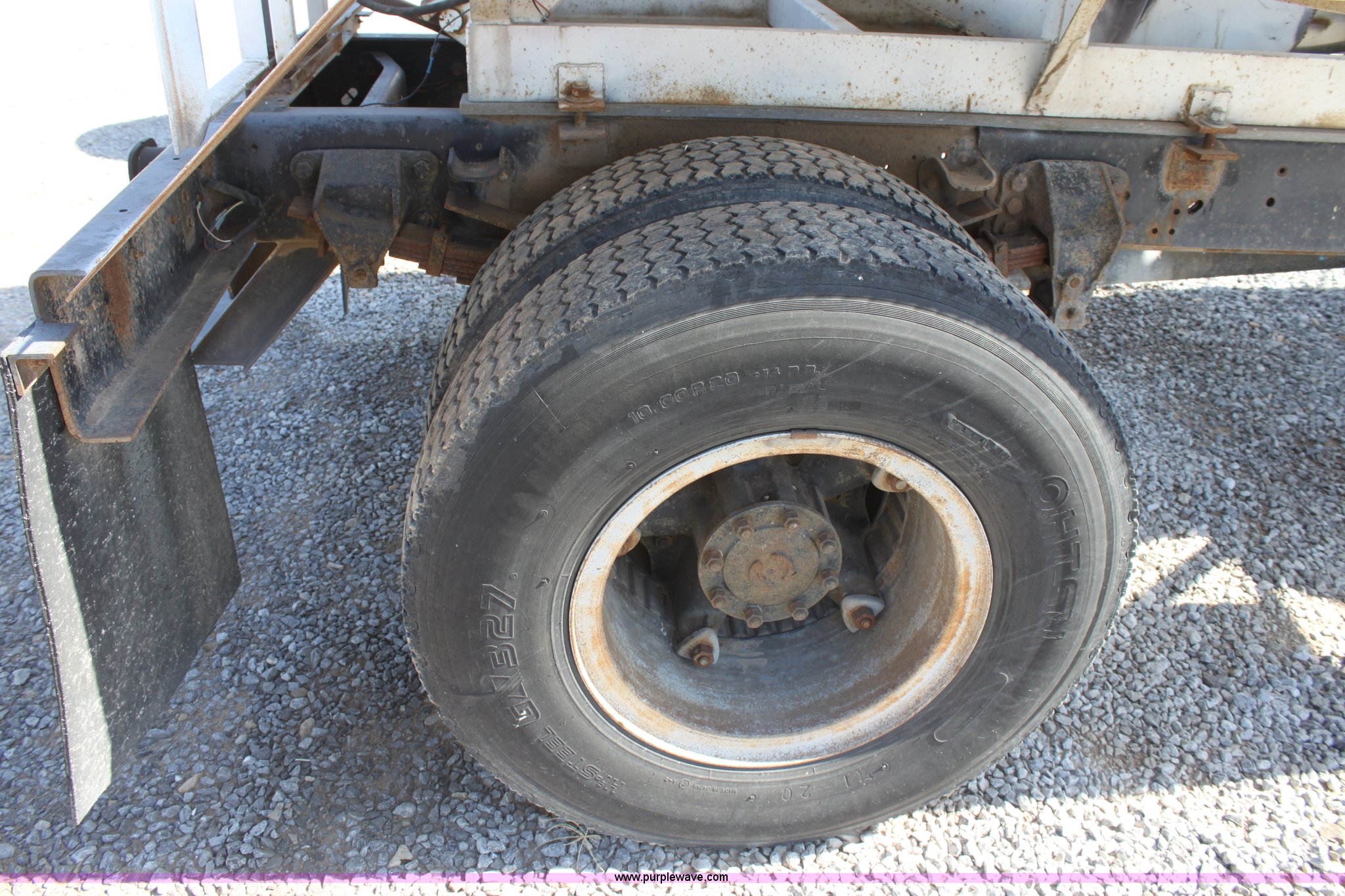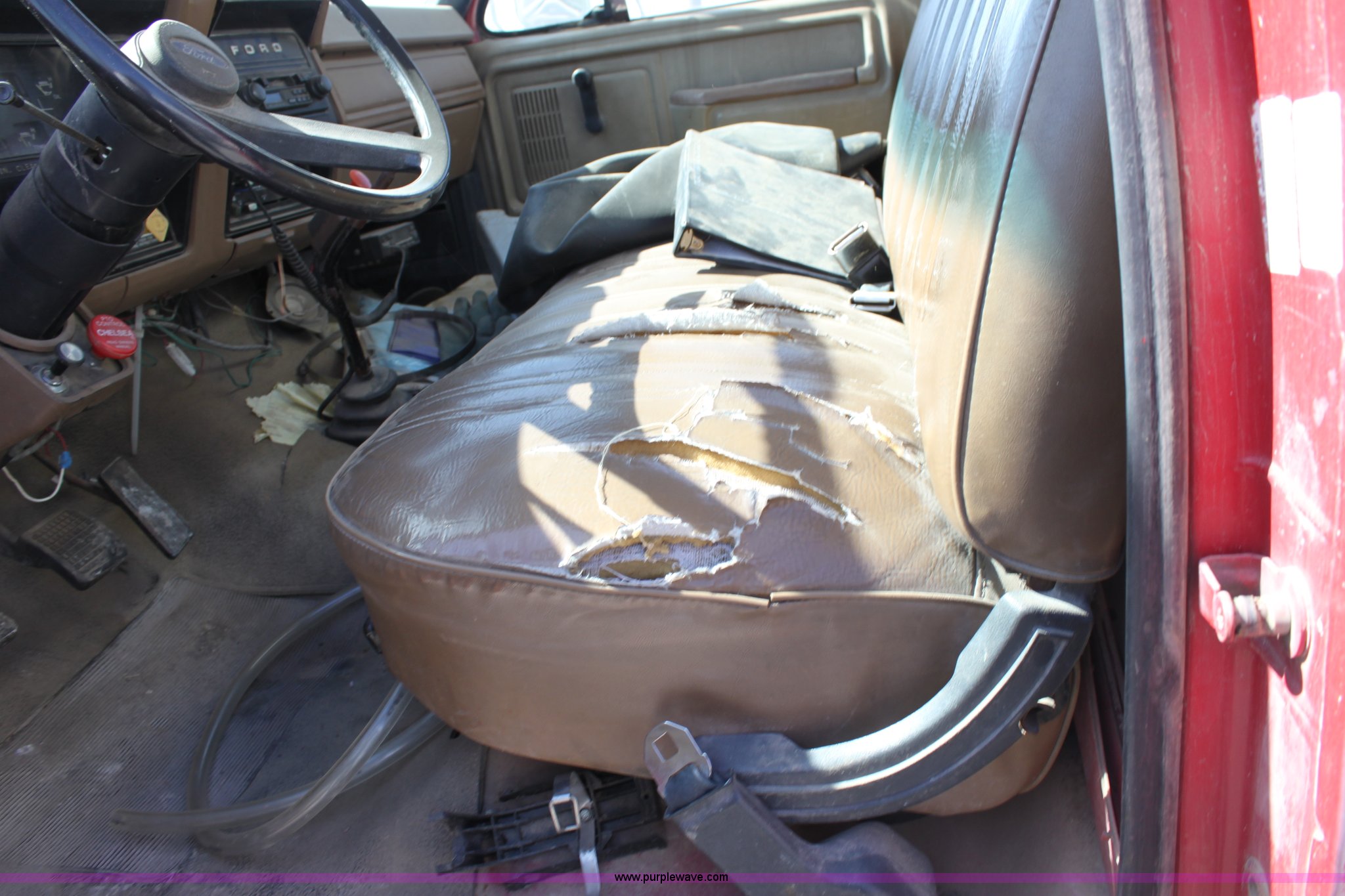 Purple Wave is selling a used Fertilizer or Feed Delivery Truck in Kansas. This item is a 1987 Ford F700 tender truck with the following: 6,034 miles on odometer, Not actual mileage, Ford 6.1L V8 gas engine, 10 speed split axle manual transmission, Heater, AM/FM/Cassette, Manual windows and locks, Chelsea PTO, Dual 50 gallon fuel tanks, Hydrualic auger raise, 15'L x 8.5"W hydraulic driven auger, Two hopper tank, 8 ton hopper, 10.00R20 tires, GVWR 28,000 lbs, 207" wheelbase