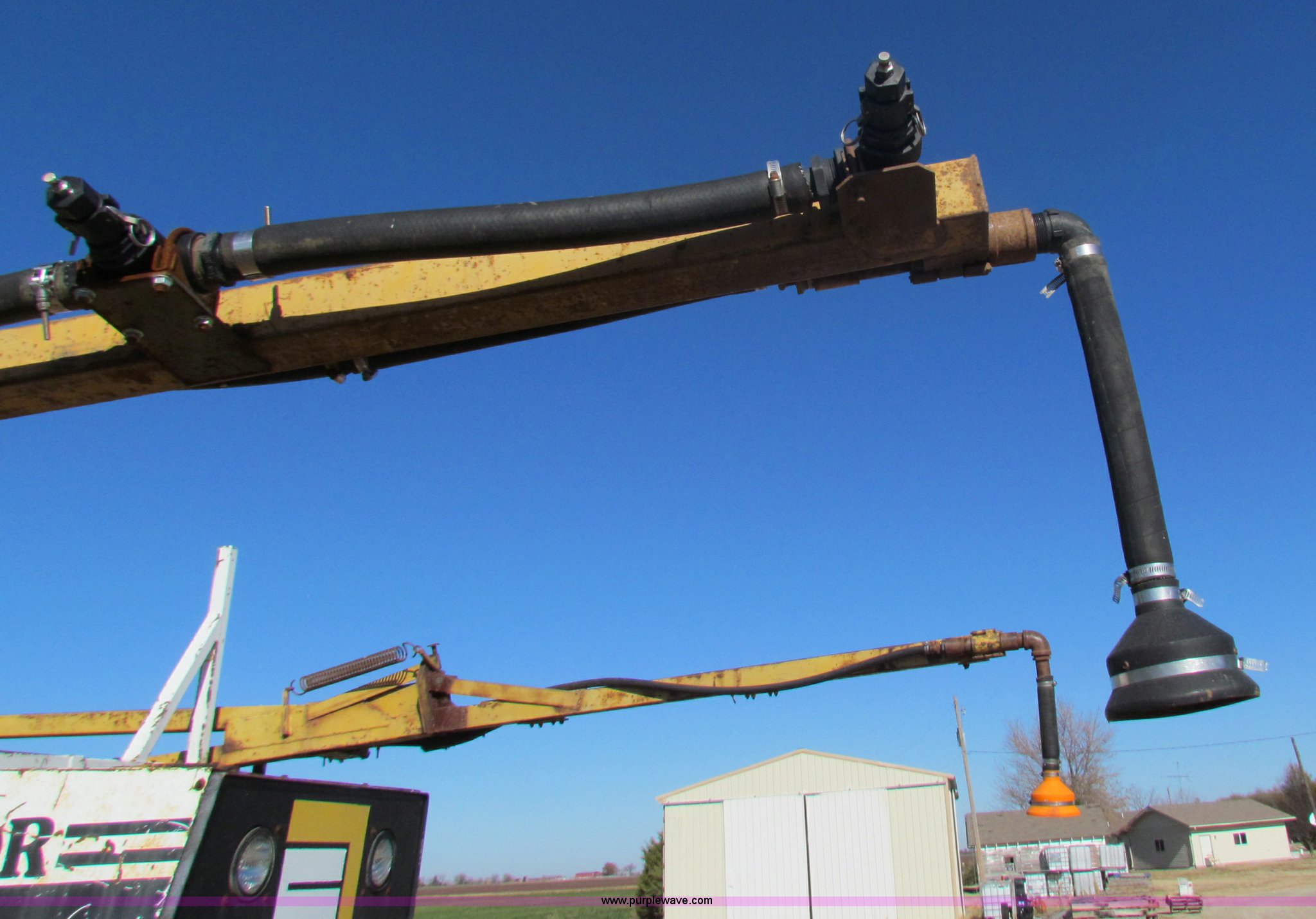 Purple Wave is selling a used Applicator Self Propelled in Kansas. This item is a 1980 Terra Gator 1603 self propelled sprayer with the following: 9,400 hours on meter, 800 hours on replacement engine, Cummins 5.9L diesel engine, Replaced by Coby Cummins, 10 speed transmission, Cab with AC, New Raven 440 monitor, 70' boom, 1,600 gallon stainless steel tank, 30" spacing, 10 and 20 GPM tips included, Flood nozzles included, Recently replaced alternator, 66x43.00-25 tires, Second owner, Hi side of two speed axle will not engage
