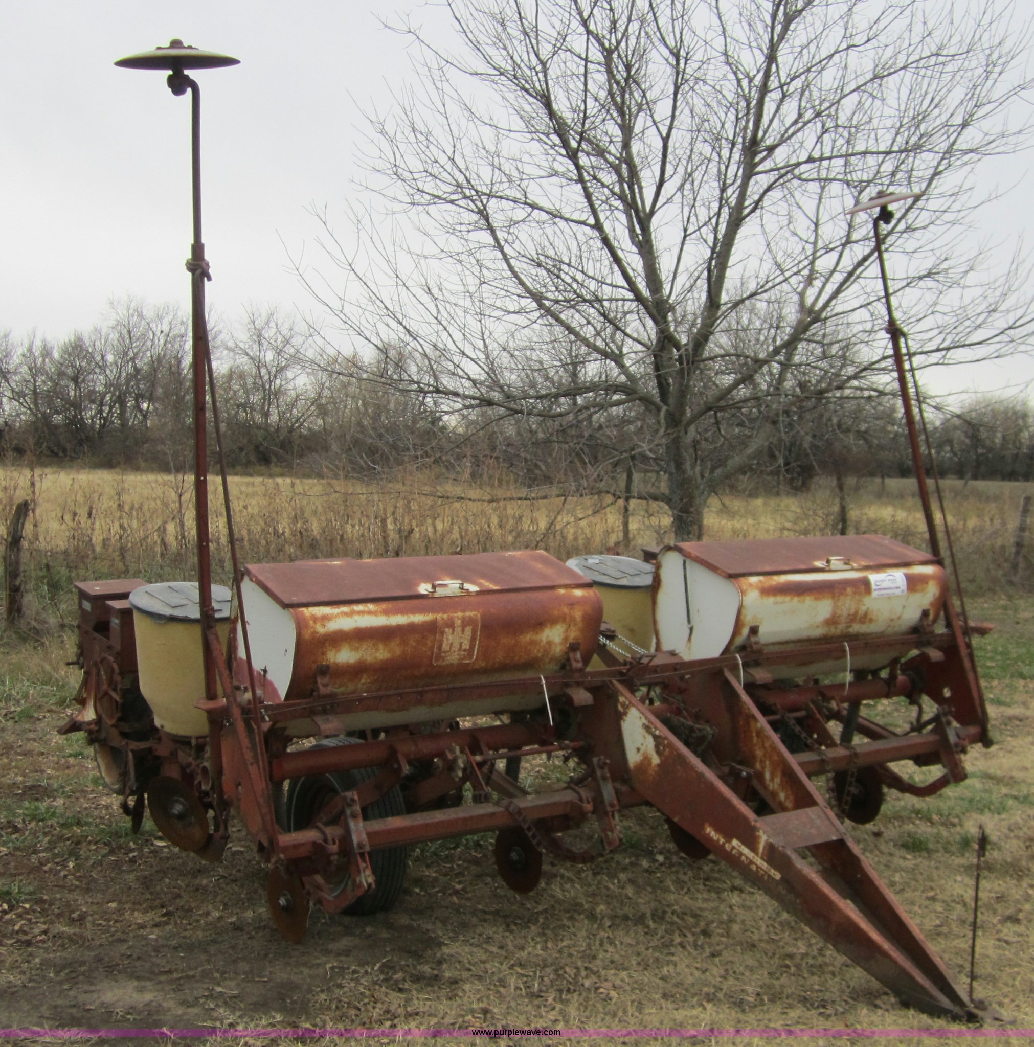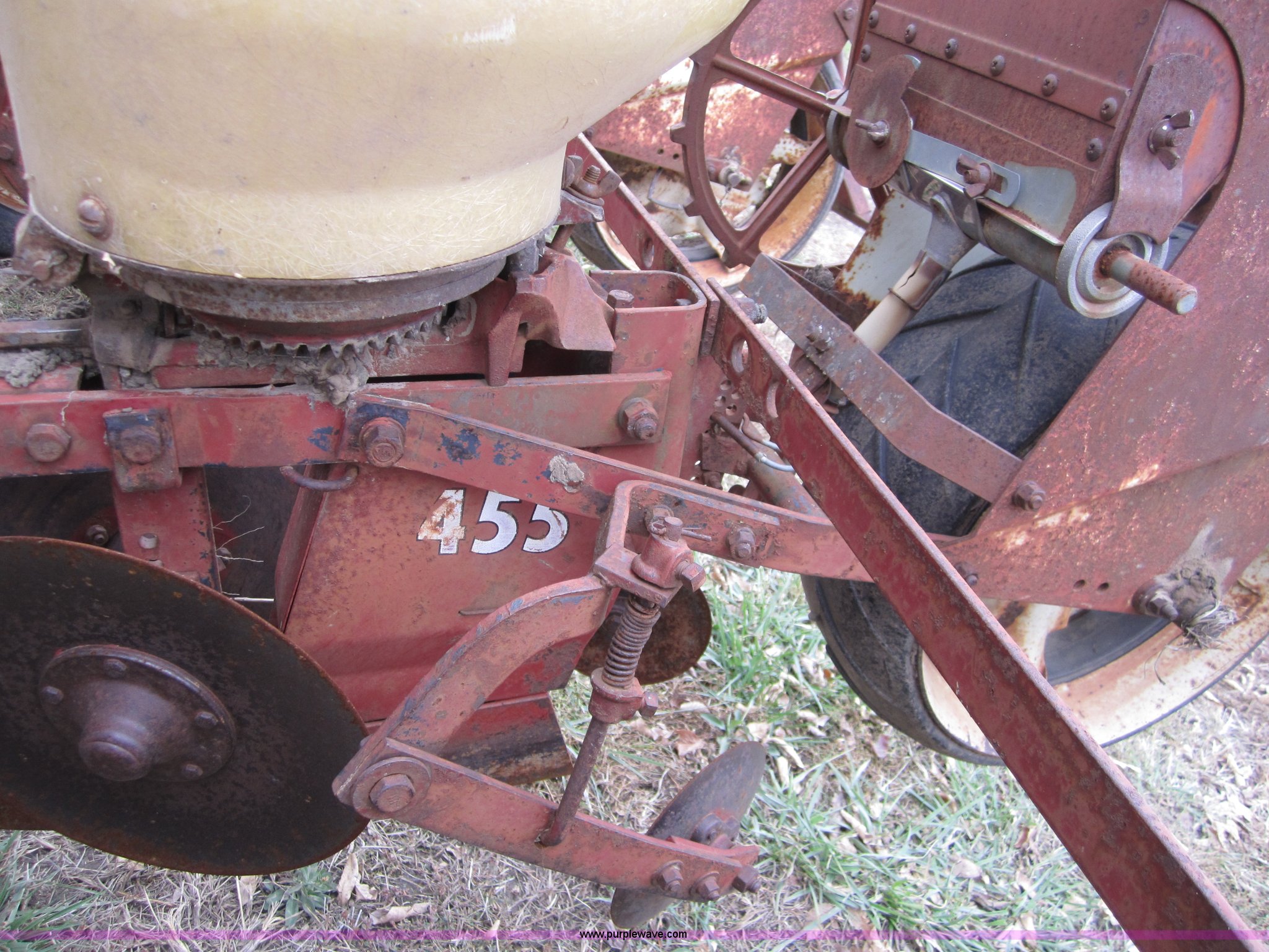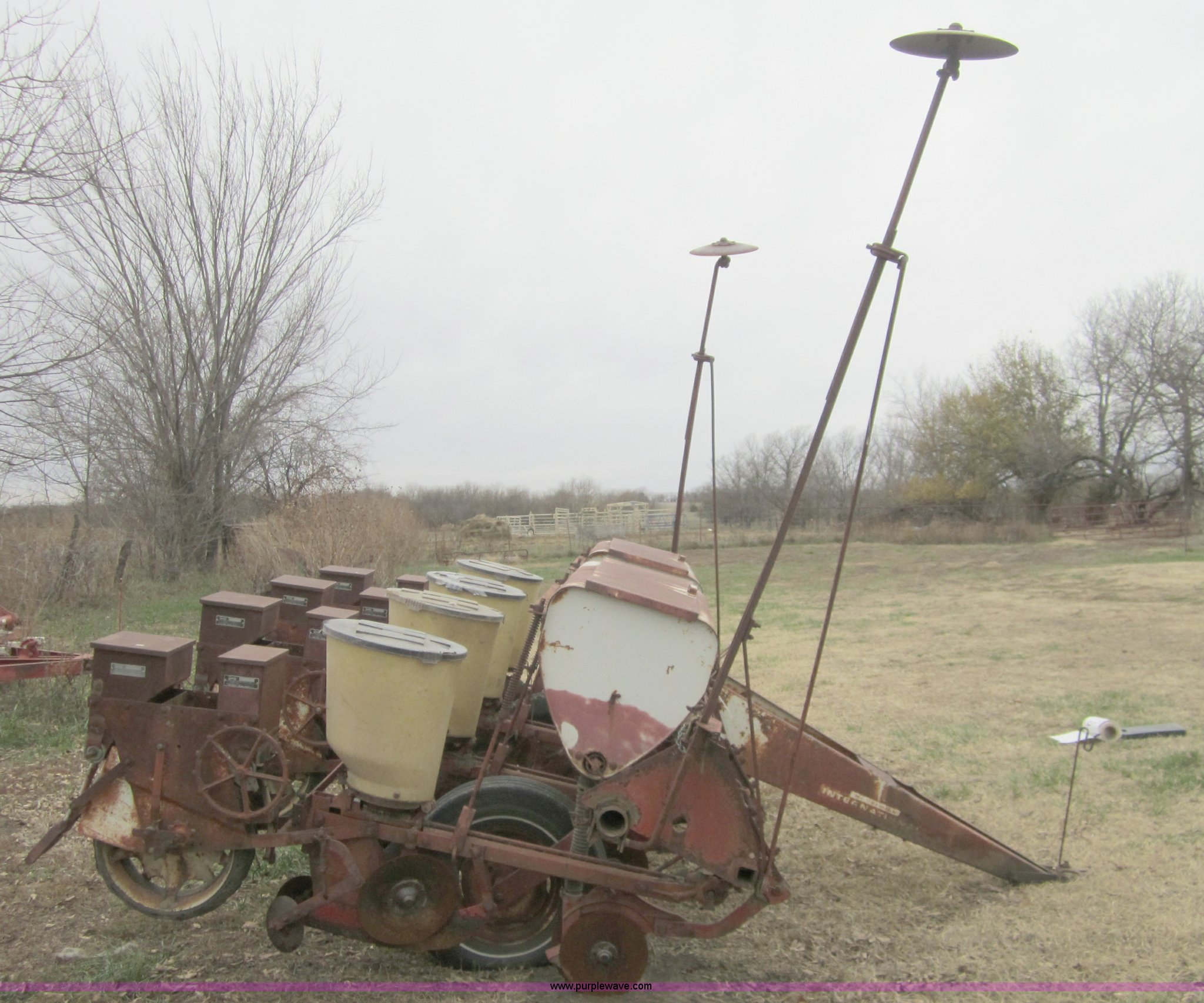 Purple Wave is selling a used Planter in Kansas. This item is a International 455 four row planter with the following: Planted 200 acres in 2011, Dual marker arms