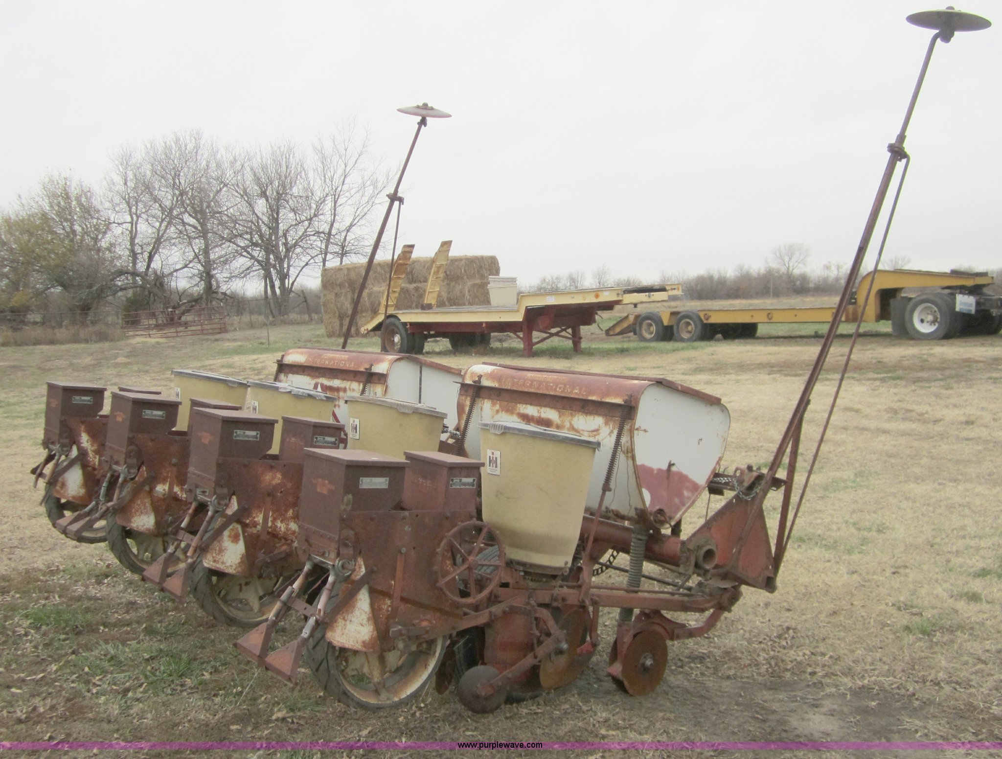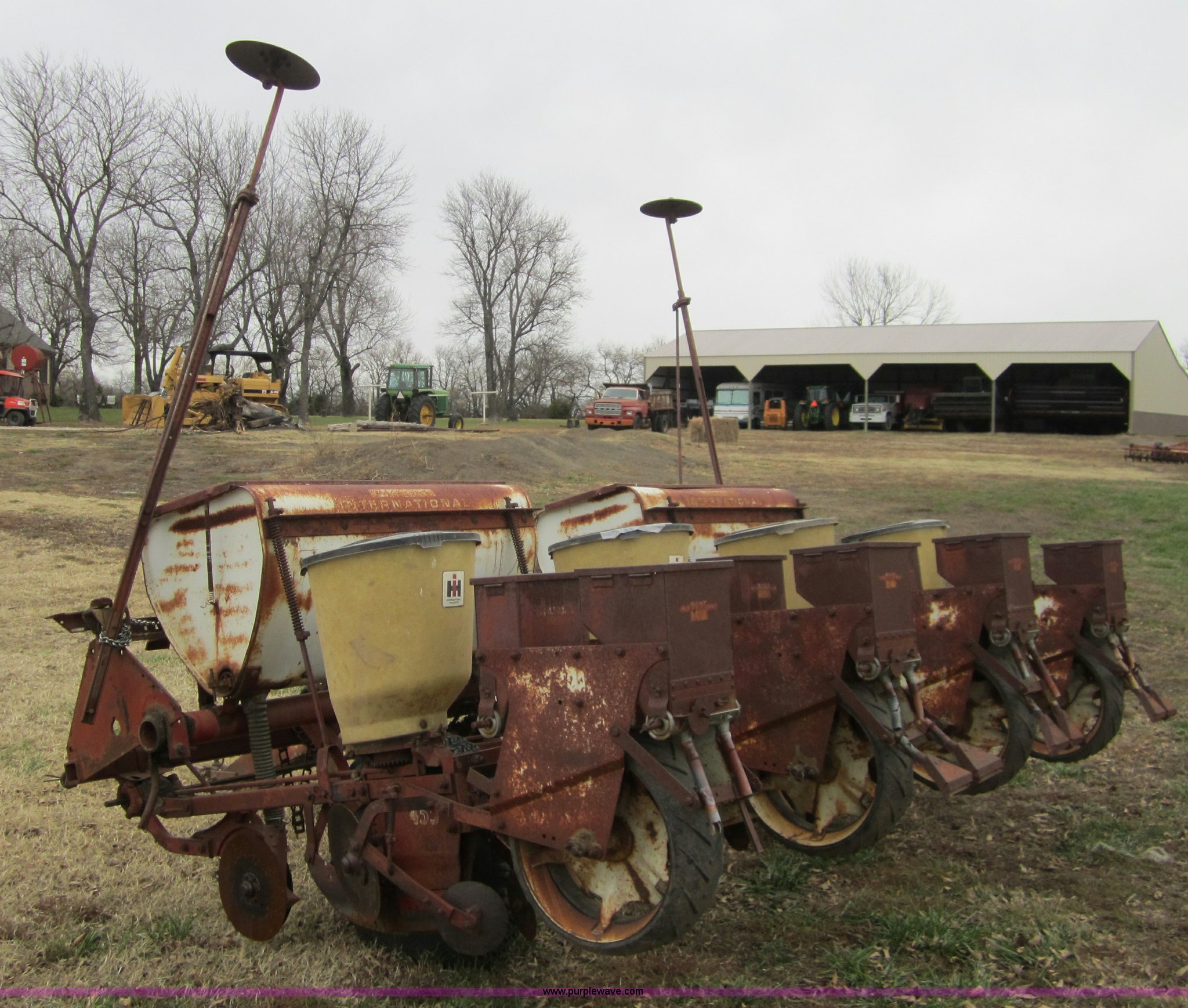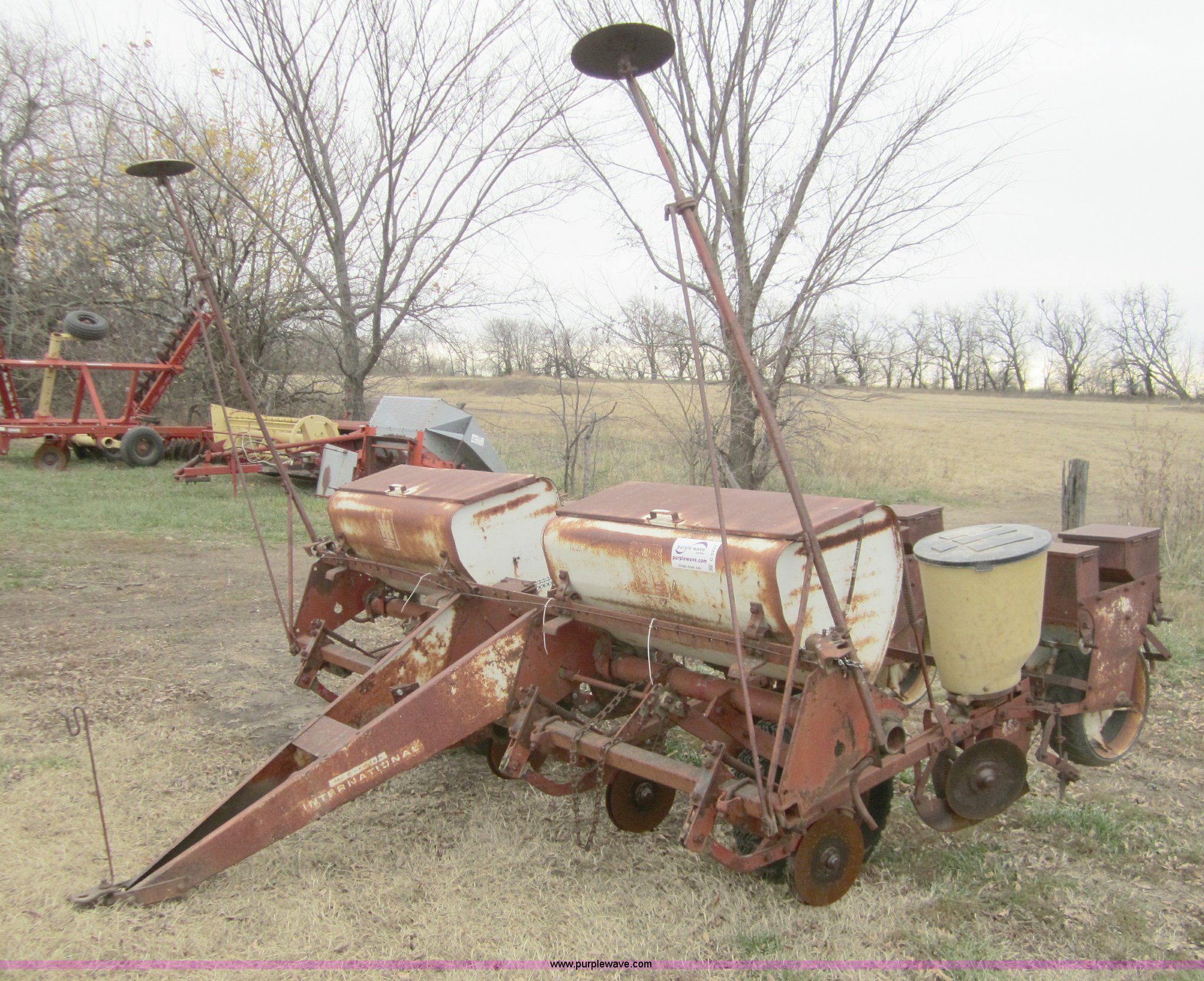 Purple Wave is selling a used Planter in Kansas. This item is a International 455 four row planter with the following: Planted 200 acres in 2011, Dual marker arms