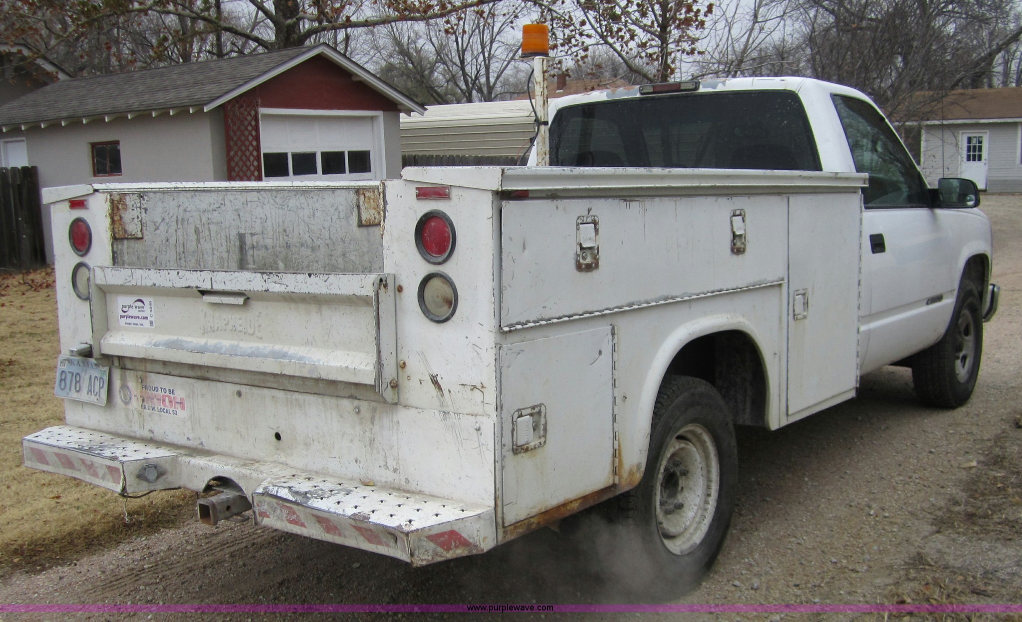 Purple Wave is selling a used Passenger Vehicle in Kansas. This item is a 2000 Chevrolet 3500 pickup truck with the following: 117,999 miles on odometer, 5.7L V8 MPI gas engine, Automatic transmission, AC and heat, AM/FM/Cassette, Manual windows and locks, Cloth interior, Utility bed, Receiver hitch, Trailer wiring, LT245/75R16 tires