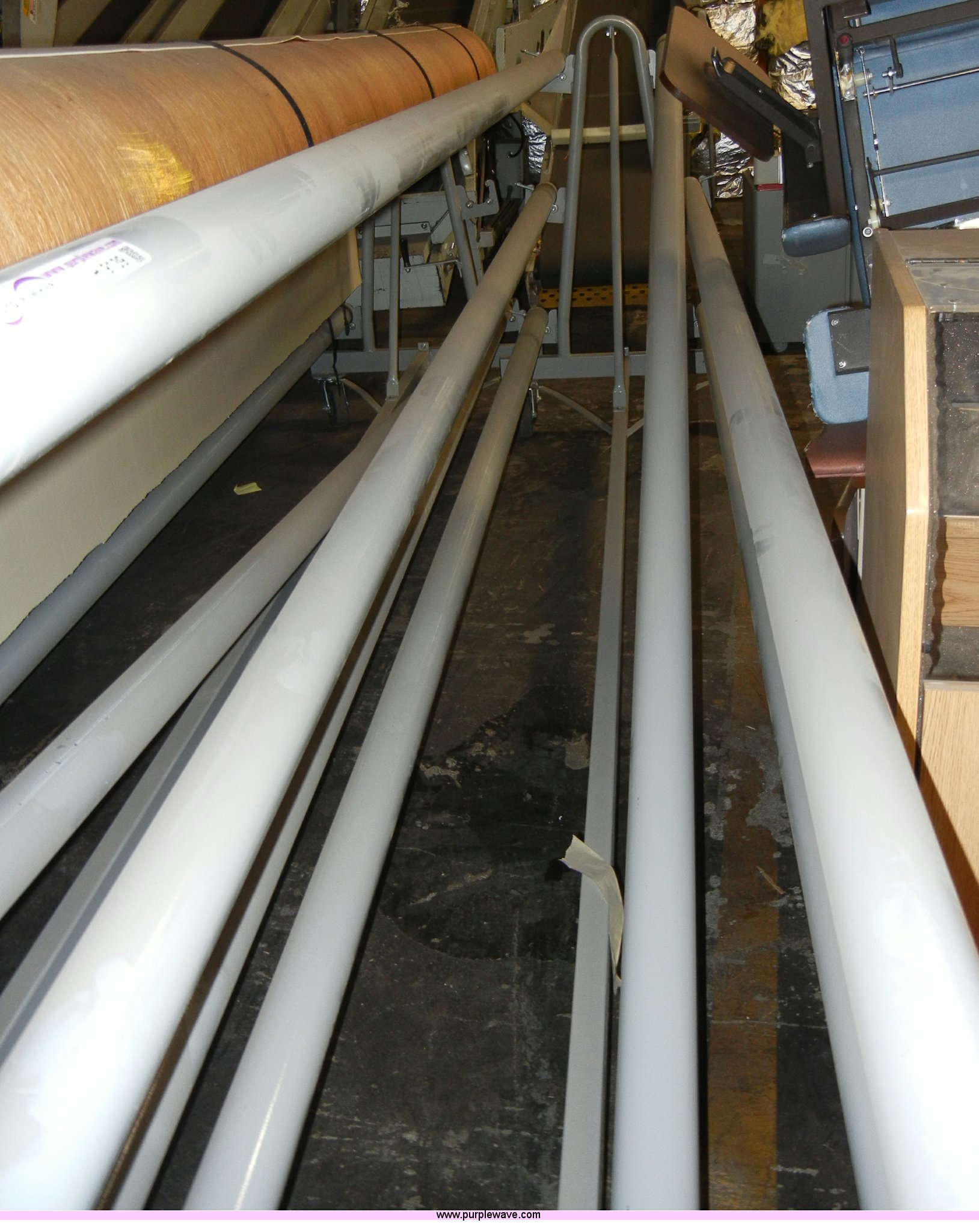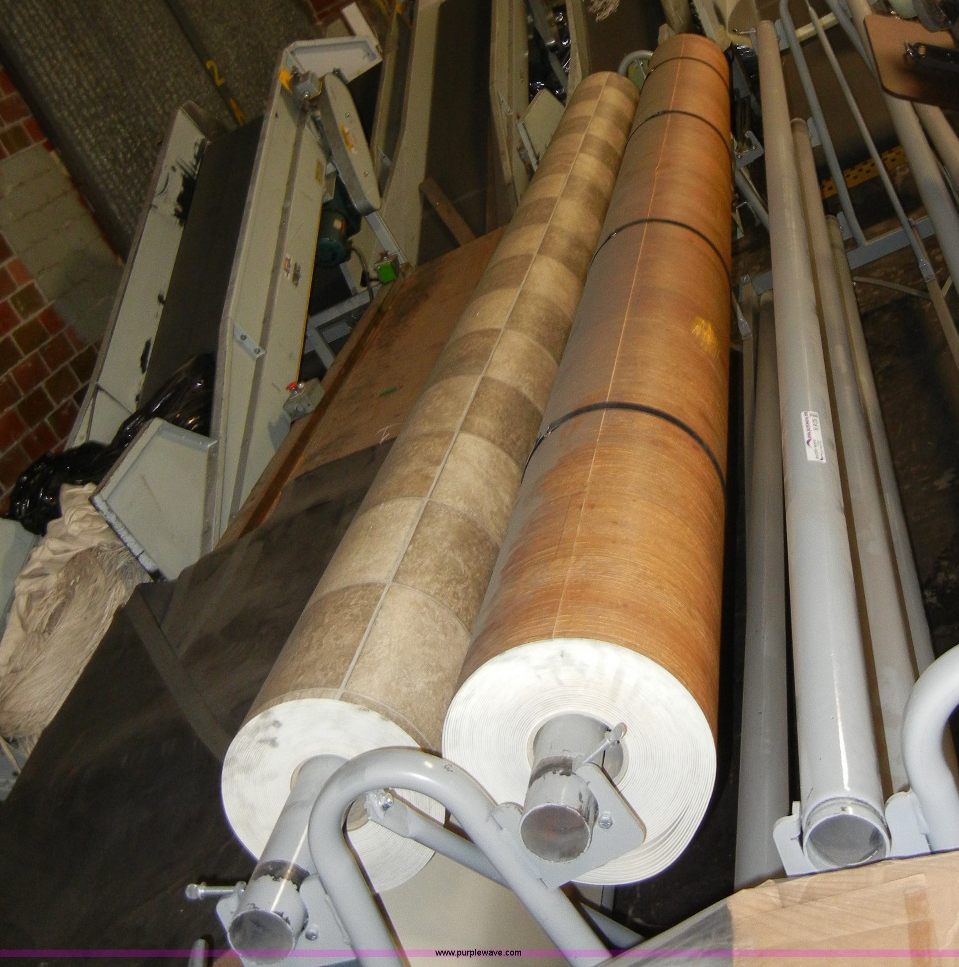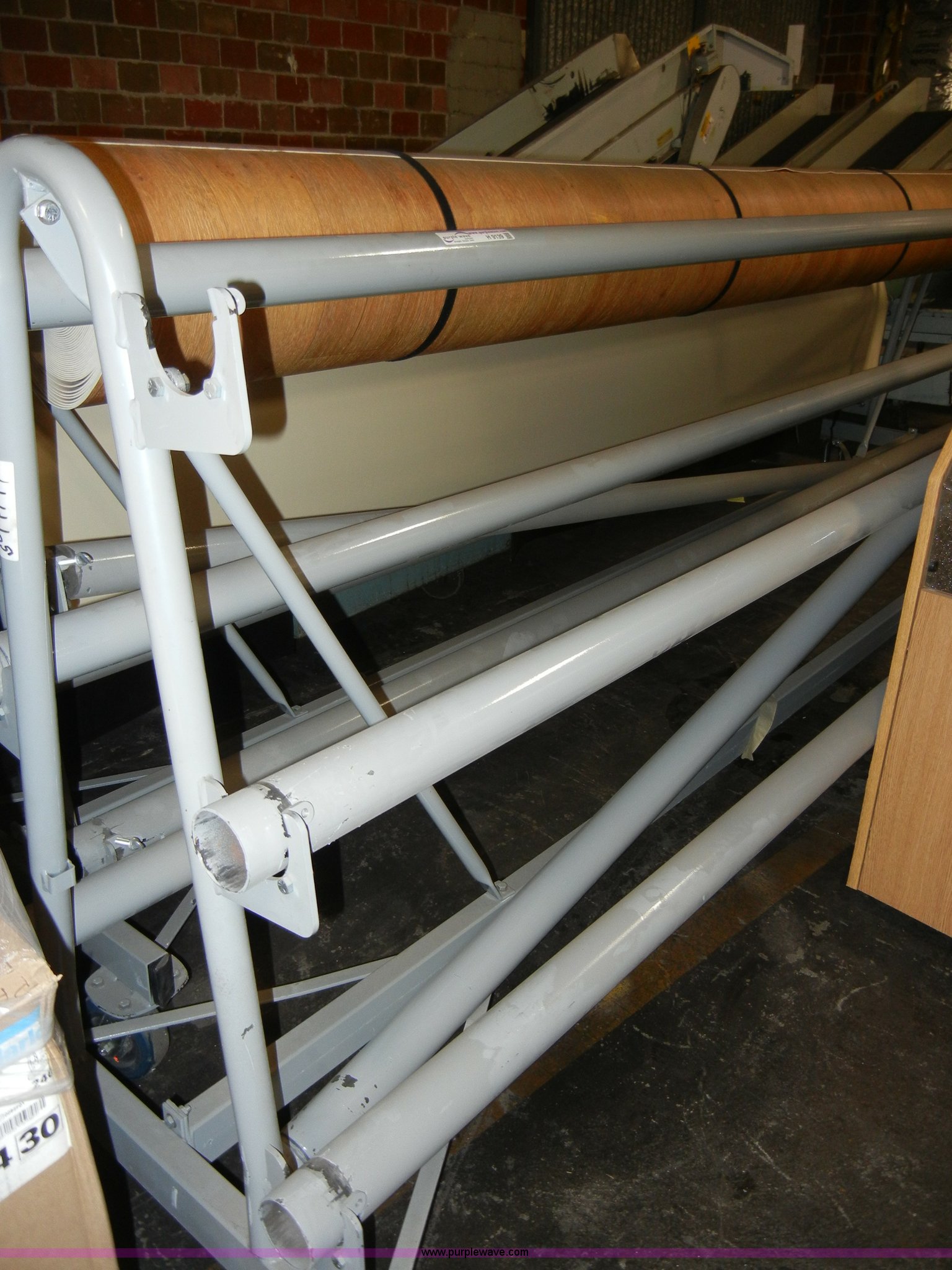 Purple Wave is selling a used Retail Displays in Kansas. This item is a (2) linoleum display racks with the following: 14'L, Six row capacity, (2) partial rolls included