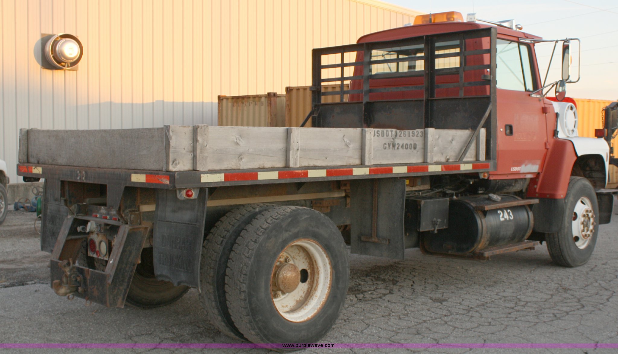 Purple Wave is selling a used Flat Bed Truck in Kansas. This item is a 1995 Ford L8000 truck with dump bed with the following: 41,343 miles on odometer, Cummins 8.3L turbo diesel engine, 210 HP, Eaton Fuller eight speed transmission, 11.5'L x 8'W dump bed, Dual ram hoist, Air ride seat, Air brakes, Dual fuel tanks, Spring suspension, PTO, Pintle hitch, 11R22.5 tires