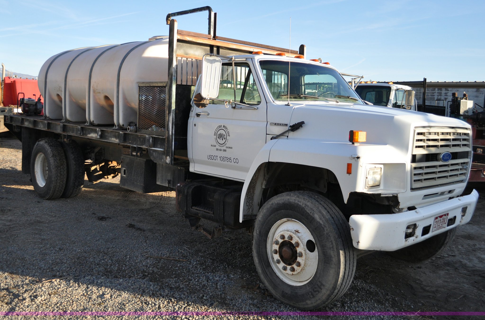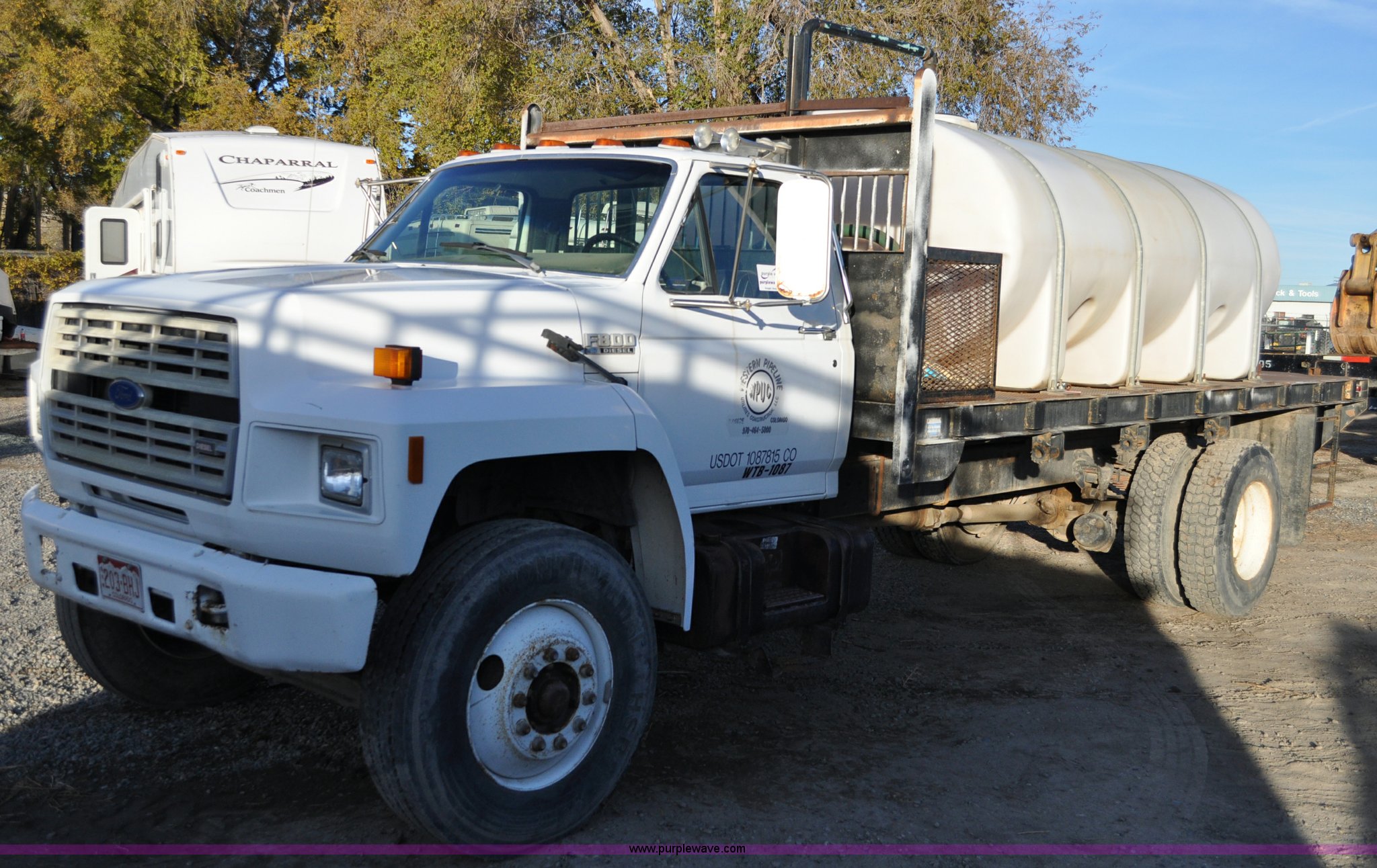 1993 Ford F800 flatbed truck with tank has sold in Grand Junction, Colorado for $6160. Item A5717 sold on December 19th, 2011.