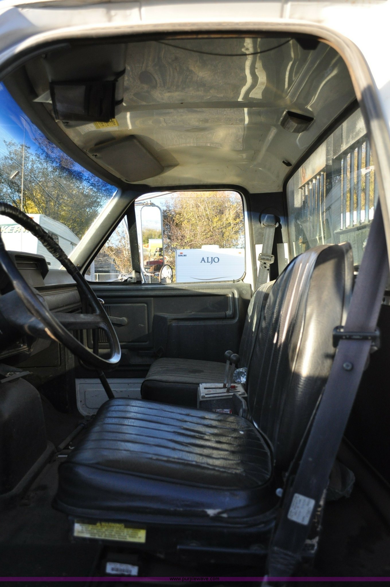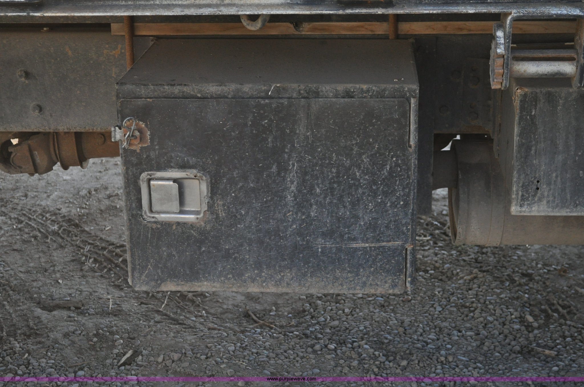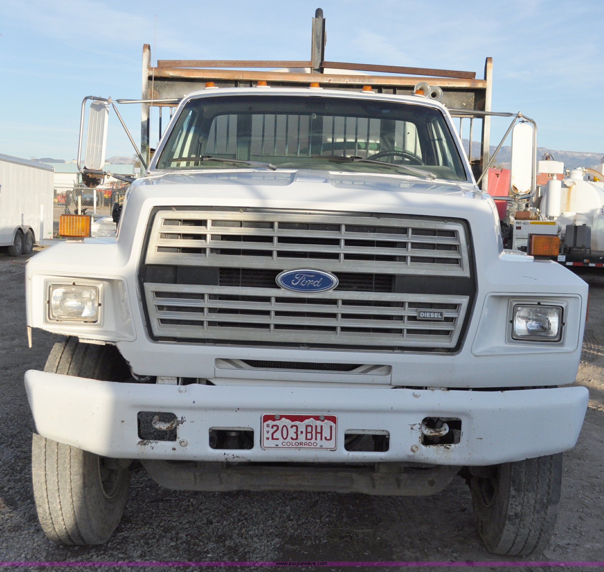 Purple Wave is selling a used Flat Bed Truck in Colorado. This item is a 1993 Ford F800 flatbed truck with tank with the following: 142,556 miles on odometer, Cummins ISC L6, 8.3L diesel engine, Six speed manual transmission, 18' flat bed, 2,000 gallon topfill tank, PTO, Pintle hitch, Air brakes, 11R22.5 tires