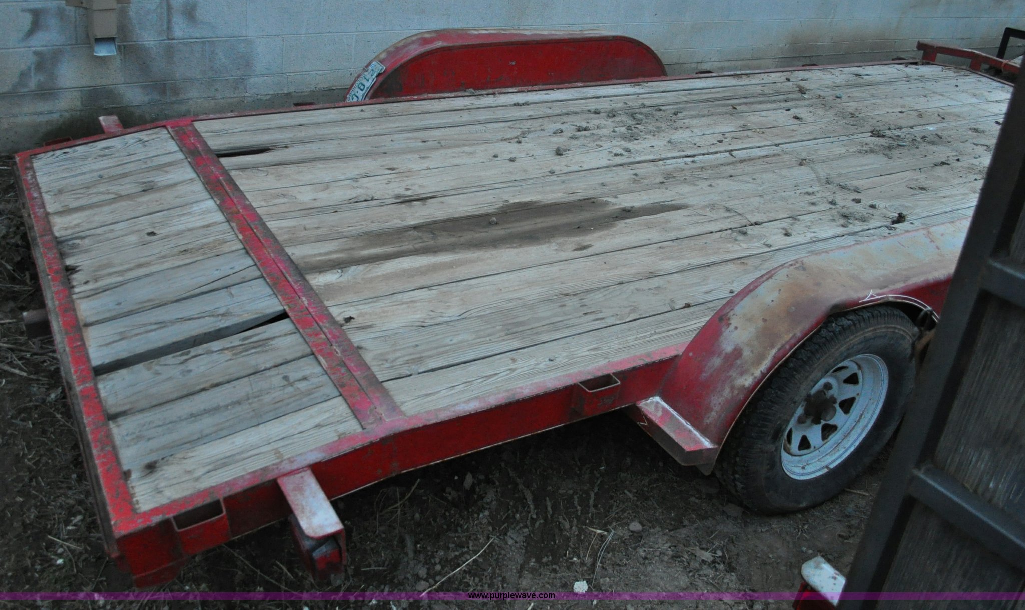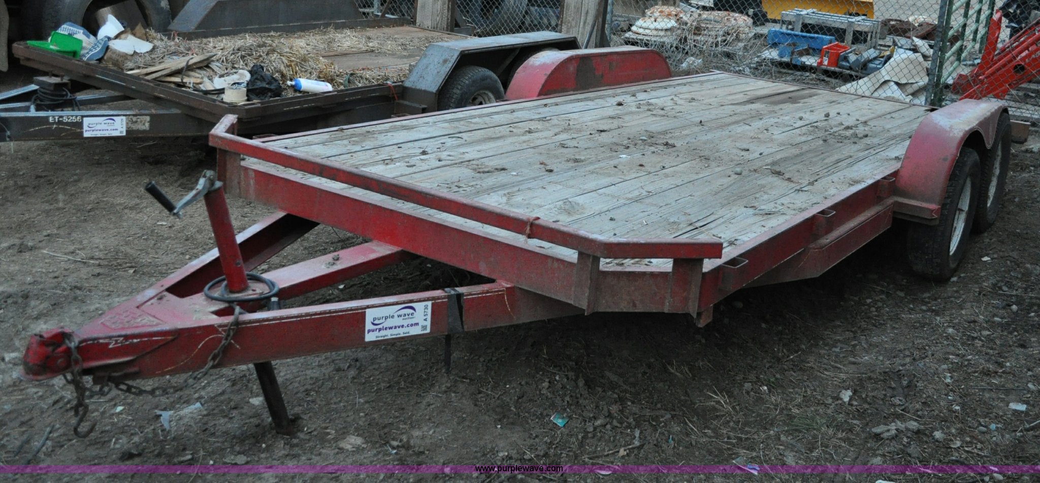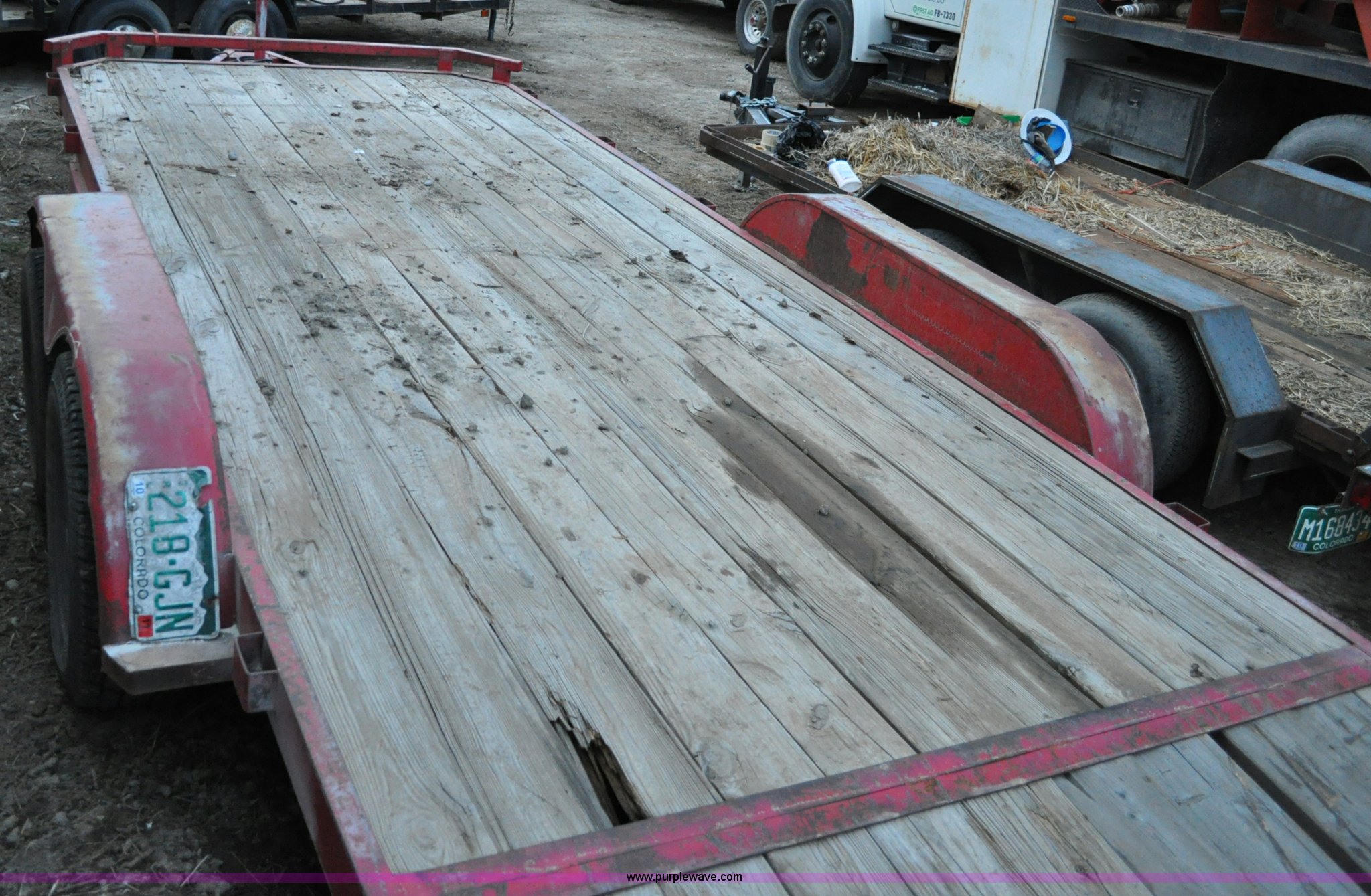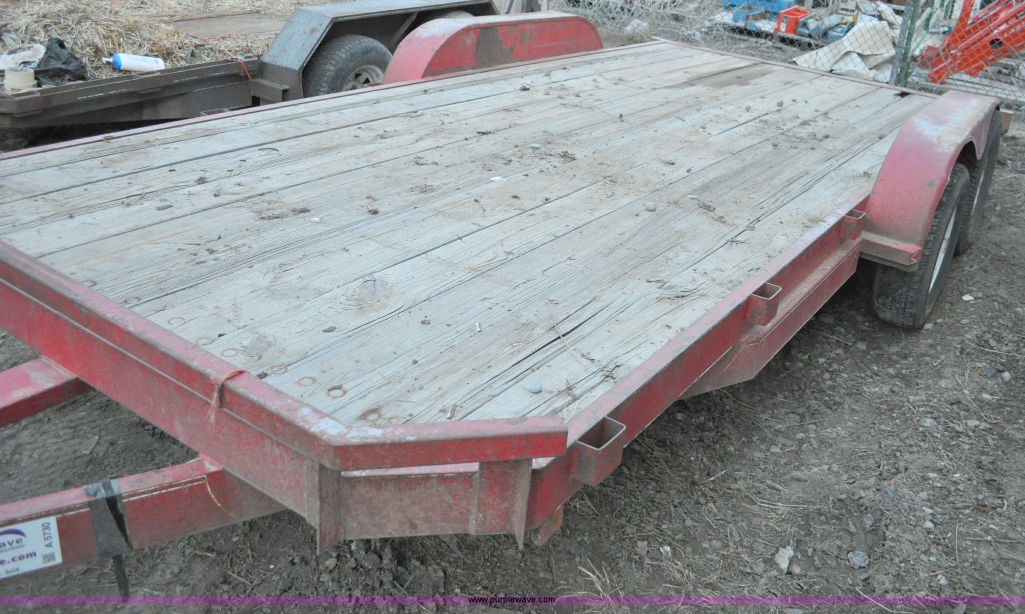 Purple Wave is selling a used Car or Utility Trailer in Colorado. This item is a 2001 JJ trailer with the following: 16' deck, 2' dove tail, 7' wide, Hitch receiver on rear of trailer, 215/75R15 tires, Some damage to deck