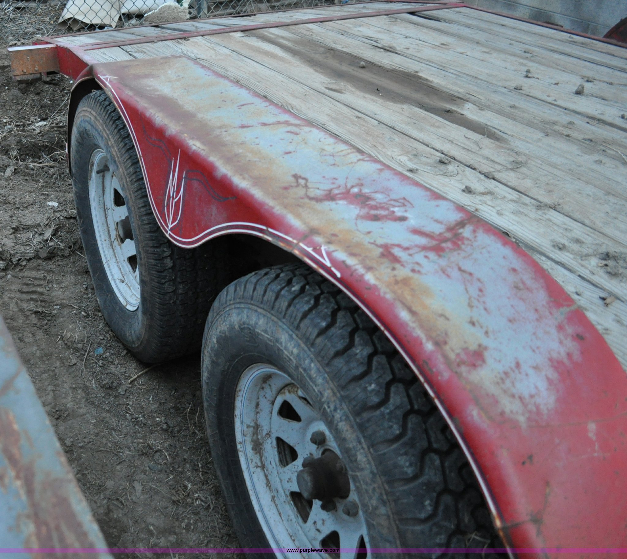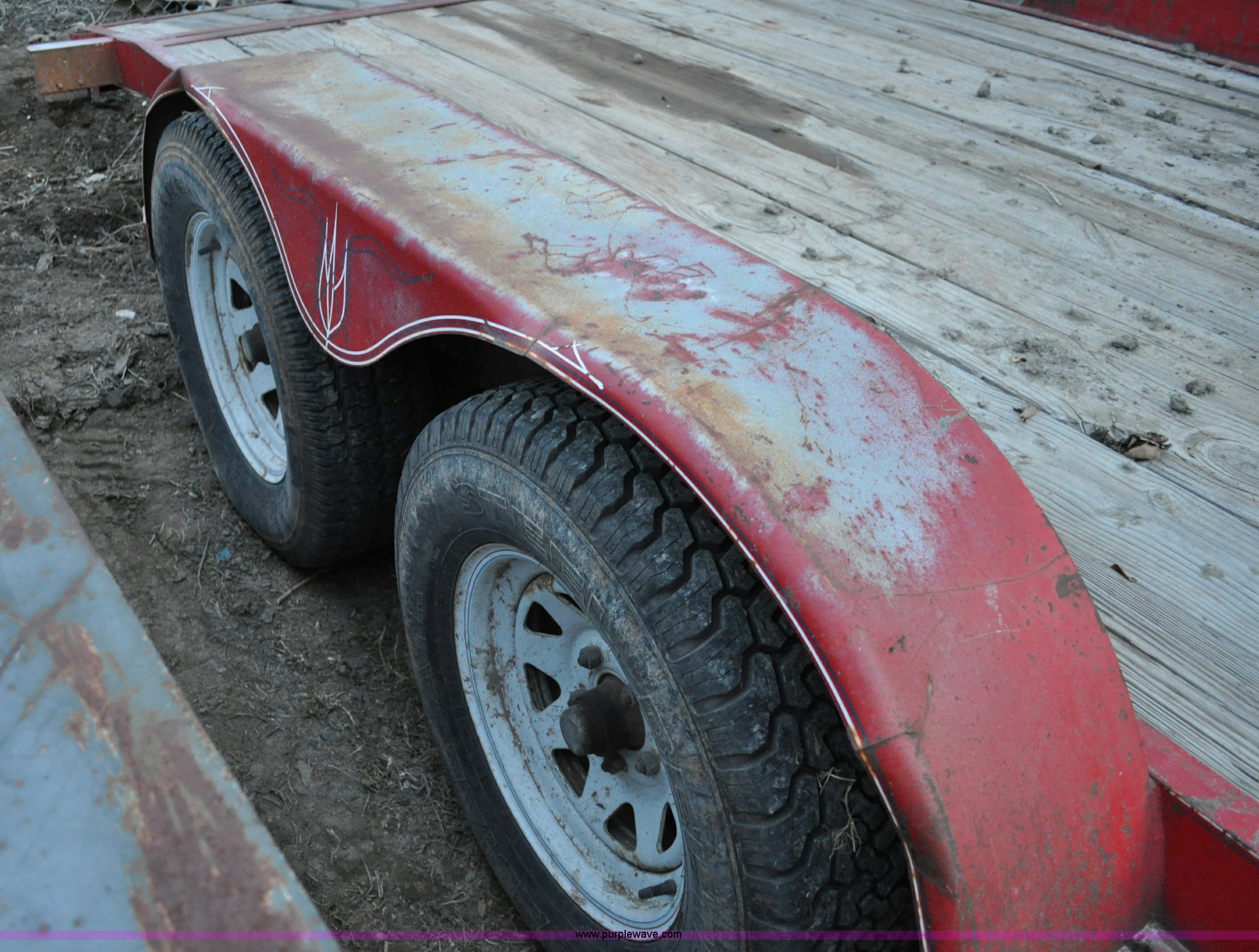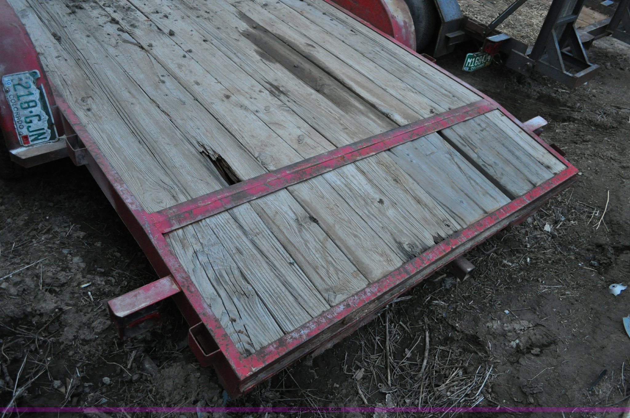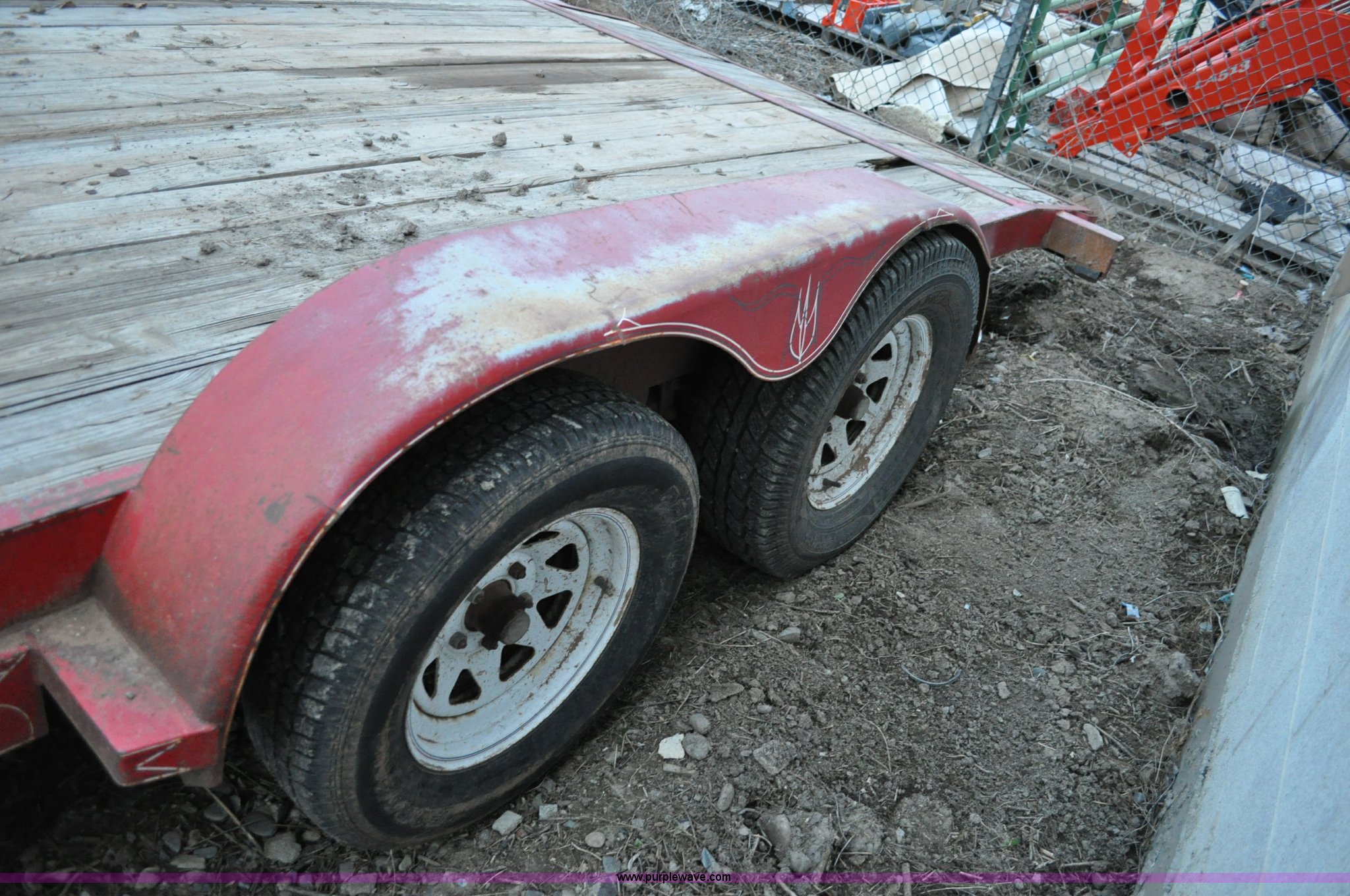 Purple Wave is selling a used Car or Utility Trailer in Colorado. This item is a 2001 JJ trailer with the following: 16' deck, 2' dove tail, 7' wide, Hitch receiver on rear of trailer, 215/75R15 tires, Some damage to deck