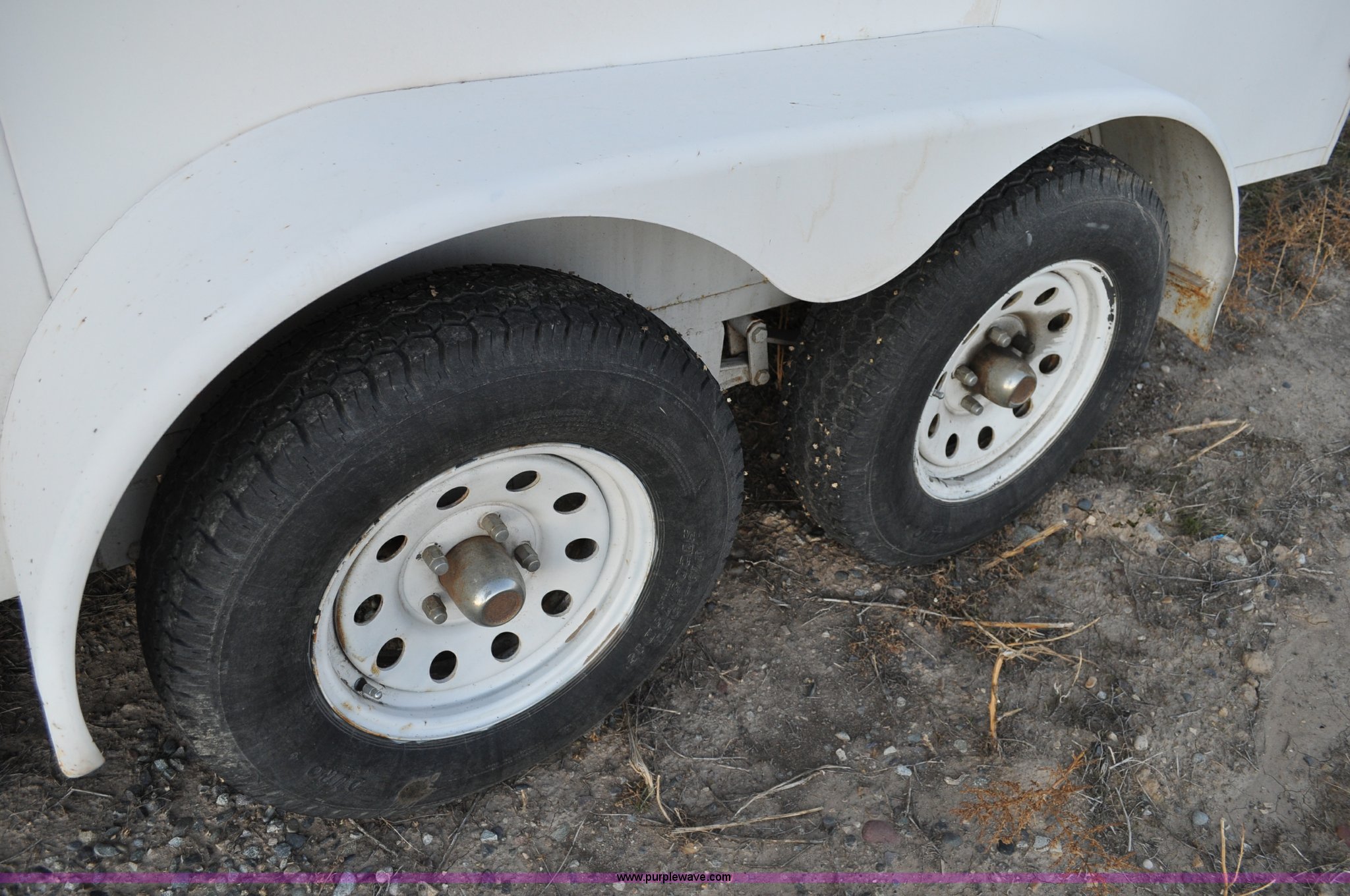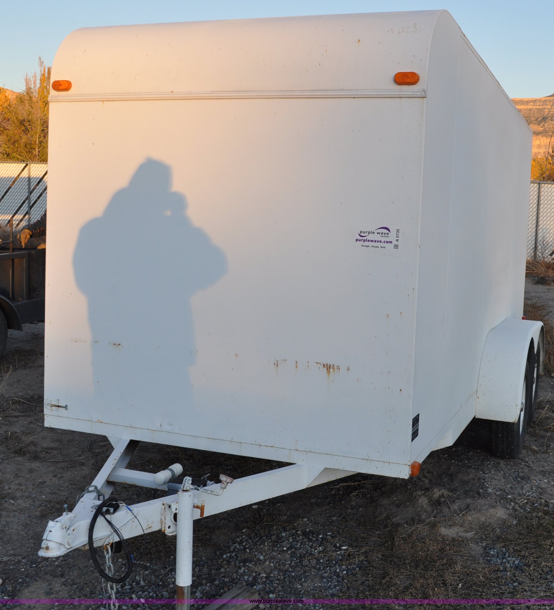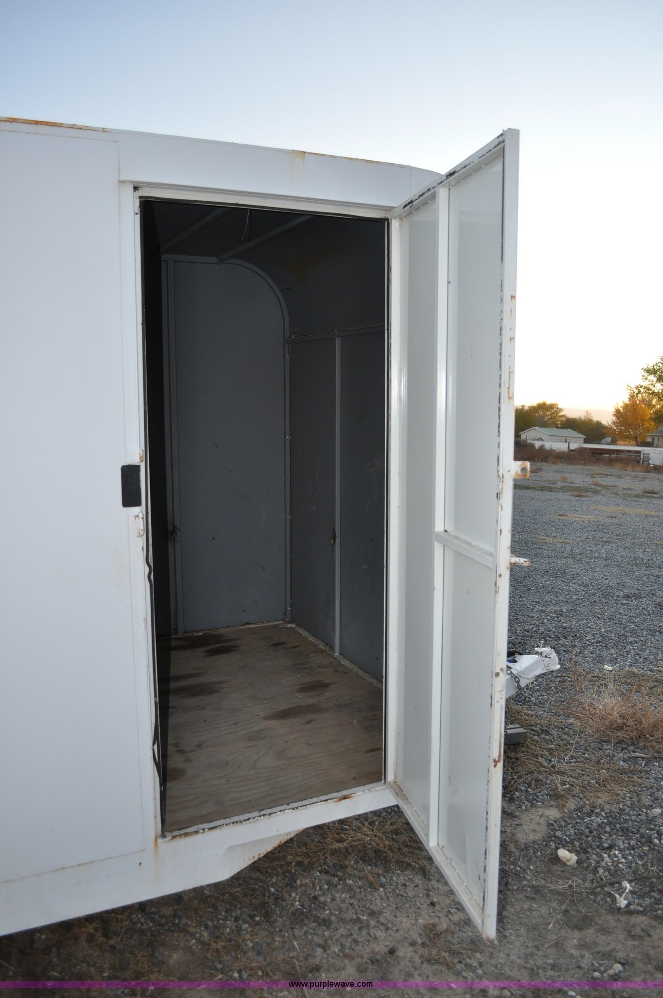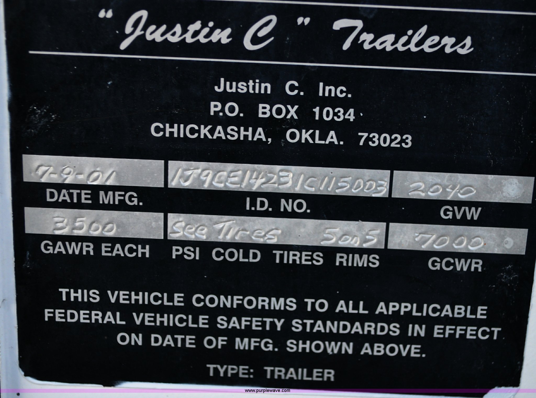 Purple Wave is selling a used Enclosed Cargo Trailer in Colorado. This item is a 2001 Justin C tandem axle trailer with the following: GVWR 7,000 lbs, 14' x 6' x 6'4"H, Wood deck, Side and rear entry, 2" ball, Electric brakes with break-away system, 78-15ST tires, 5-hole rims, Back door slight bow of bottom rail