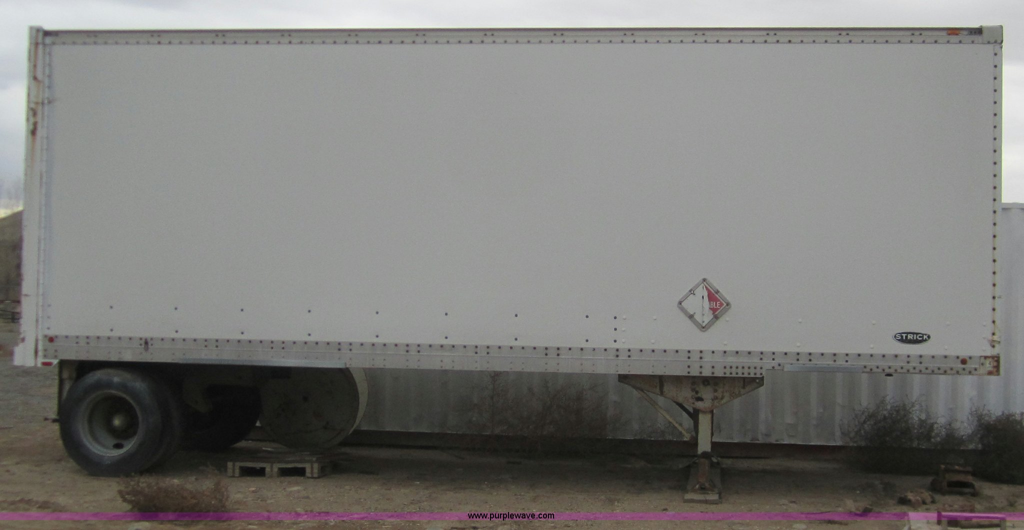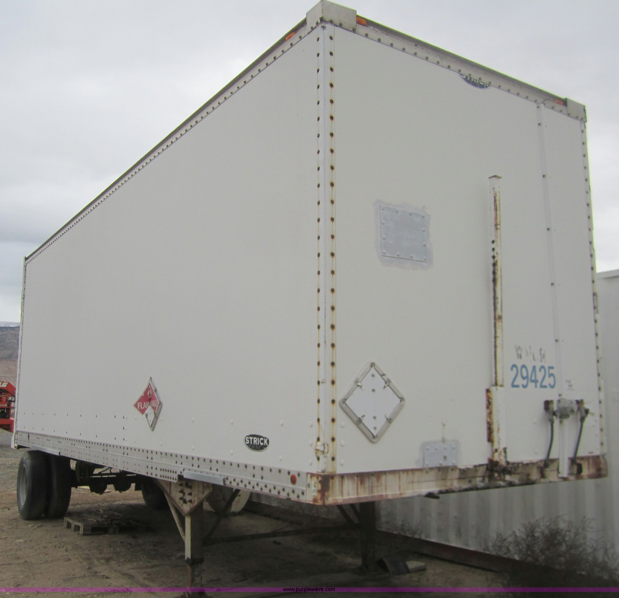 Purple Wave is selling a used Dry Van Trailer in Colorado. This item is a 1988 Strick 28'dry-van trailer with the following: 8' width, GVWR 40,000lbs, Single axle, Spring ride, Air brakes, Pintle hook, 275/80R22 tires, Roll up door, Aluminum floor