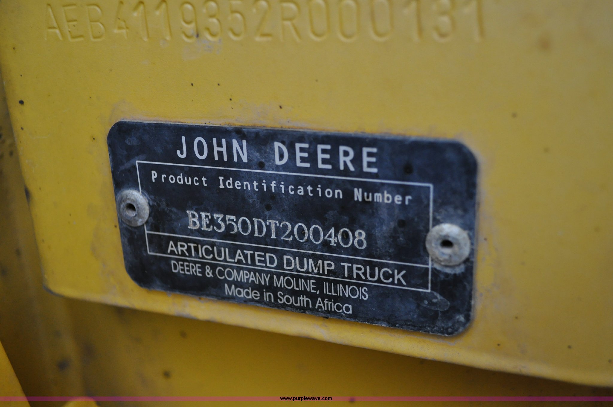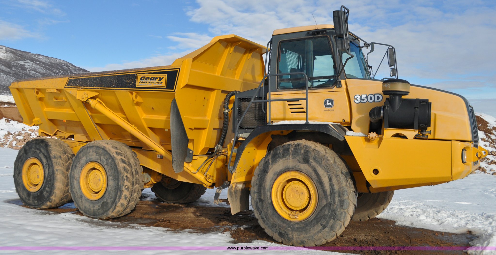 Purple Wave is selling a used Articulated Haul Truck in Utah. This item is a 2002 John Deere 350D 6x6 articulating dump truck with the following: 9,166 hours on meter, Mercedes OM501LA diesel engine, 380 HP, Transmission HD4560R, 6x6, AC and heat, 26.5R25 tires, 71,500 lb payload, 61,730 lbs. base operating weight, Serial BE350DT200408