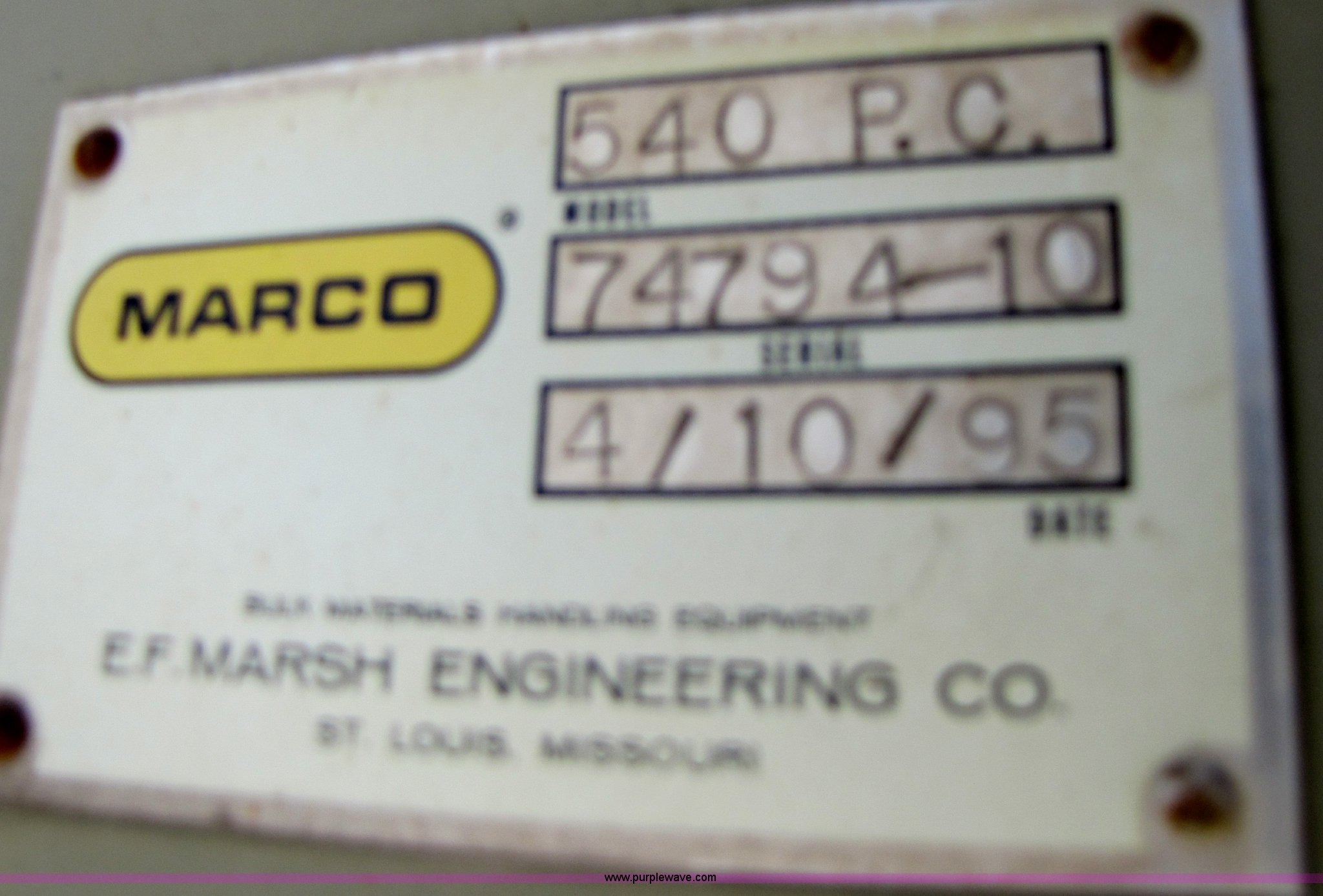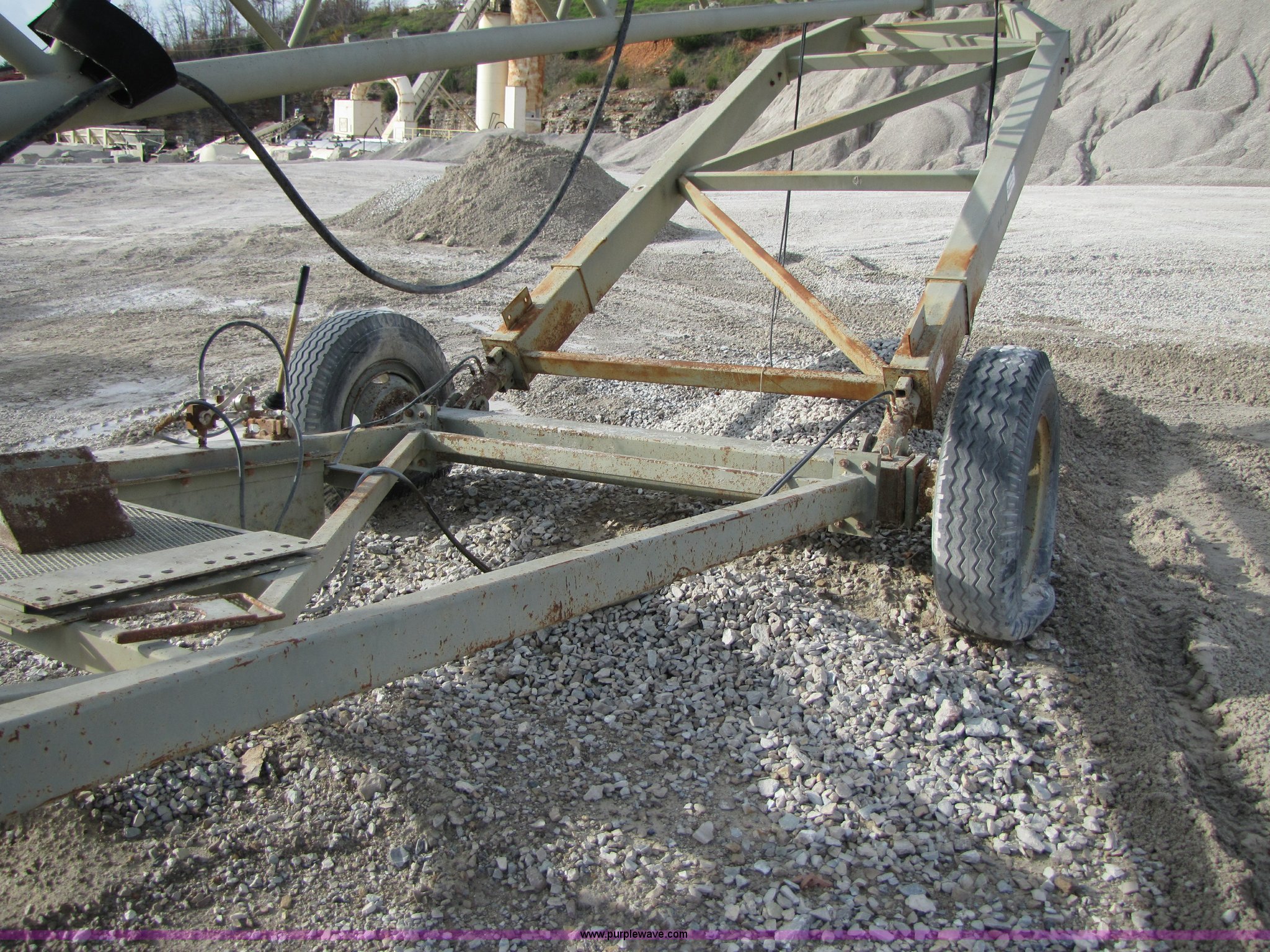Purple Wave is selling a used Conveyor in Missouri. This item is a 1995 Marco 30" X 80' portable stacking conveyor with the following: Lattice frame, Hydraulic raise, Electric motor, Quantity of electric lead lines, Single axle carrier, Pintle hitch, Serial 74794-10, Equip# 94-020
