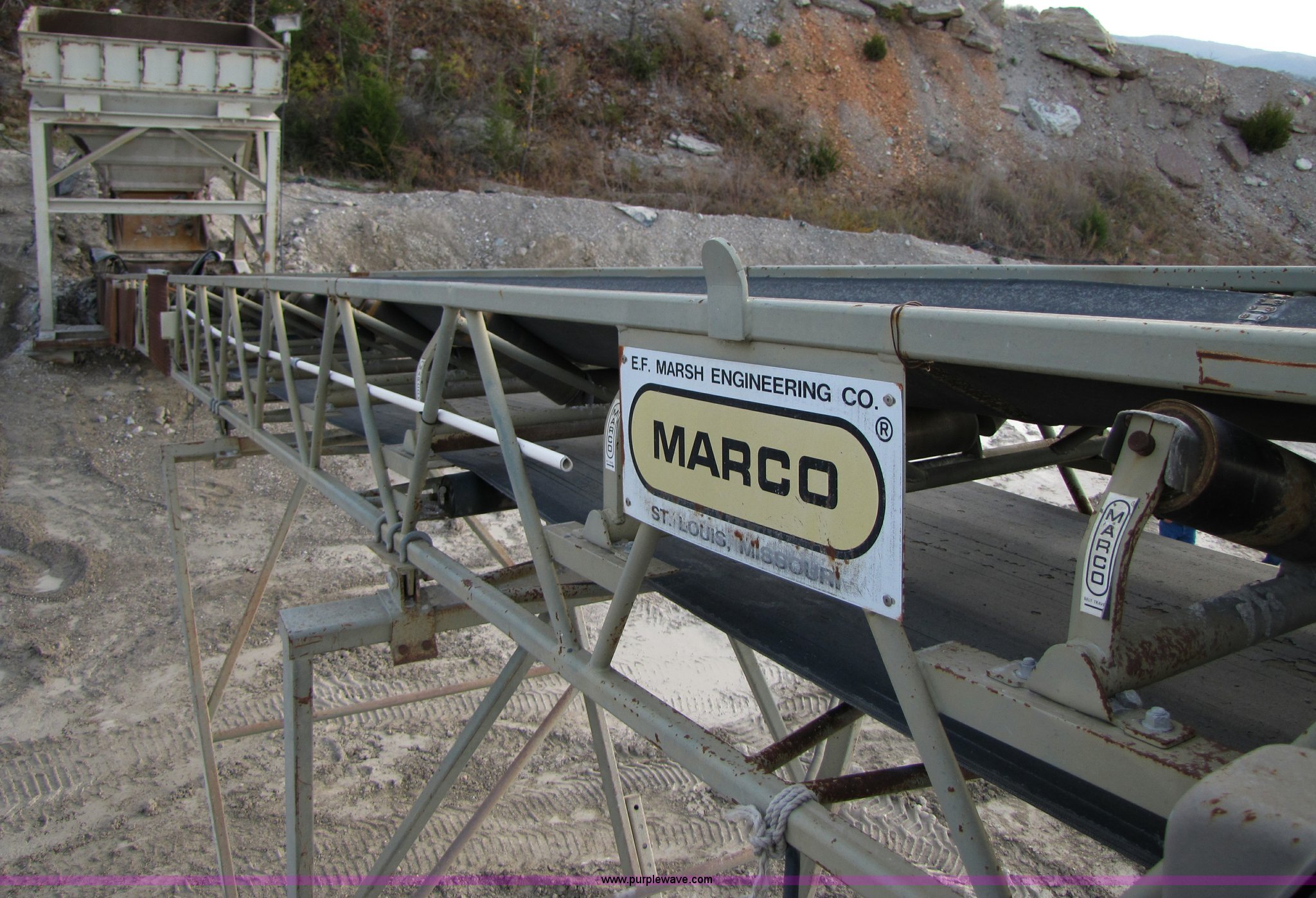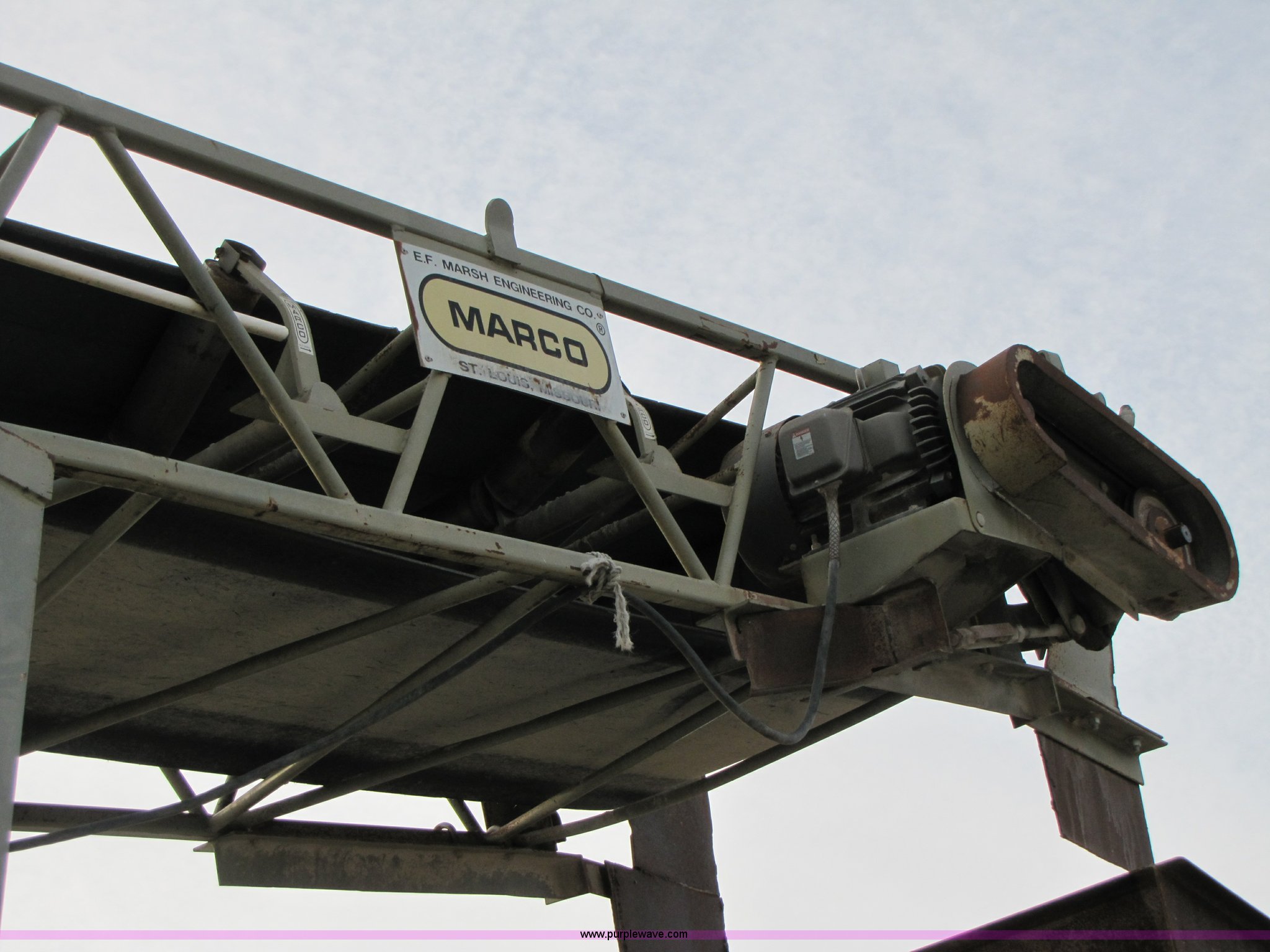 Purple Wave is selling a used Conveyor in Missouri. This item is a 1995 Marco 42" x 60' stationary conveyor with the following: Lattice frame, High efficiency 25 HP electric motor, Serial 74794-2, Equip# 94-026