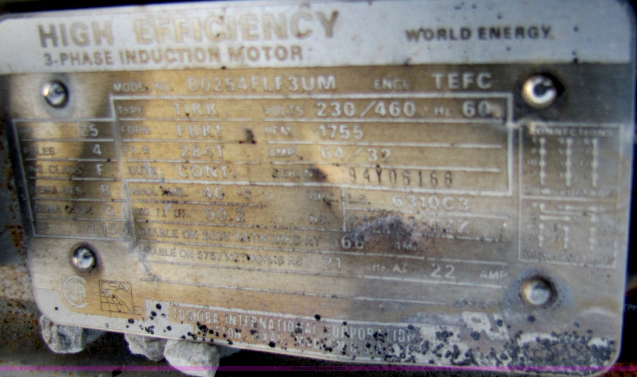 - High efficiency 25 HP electric motor