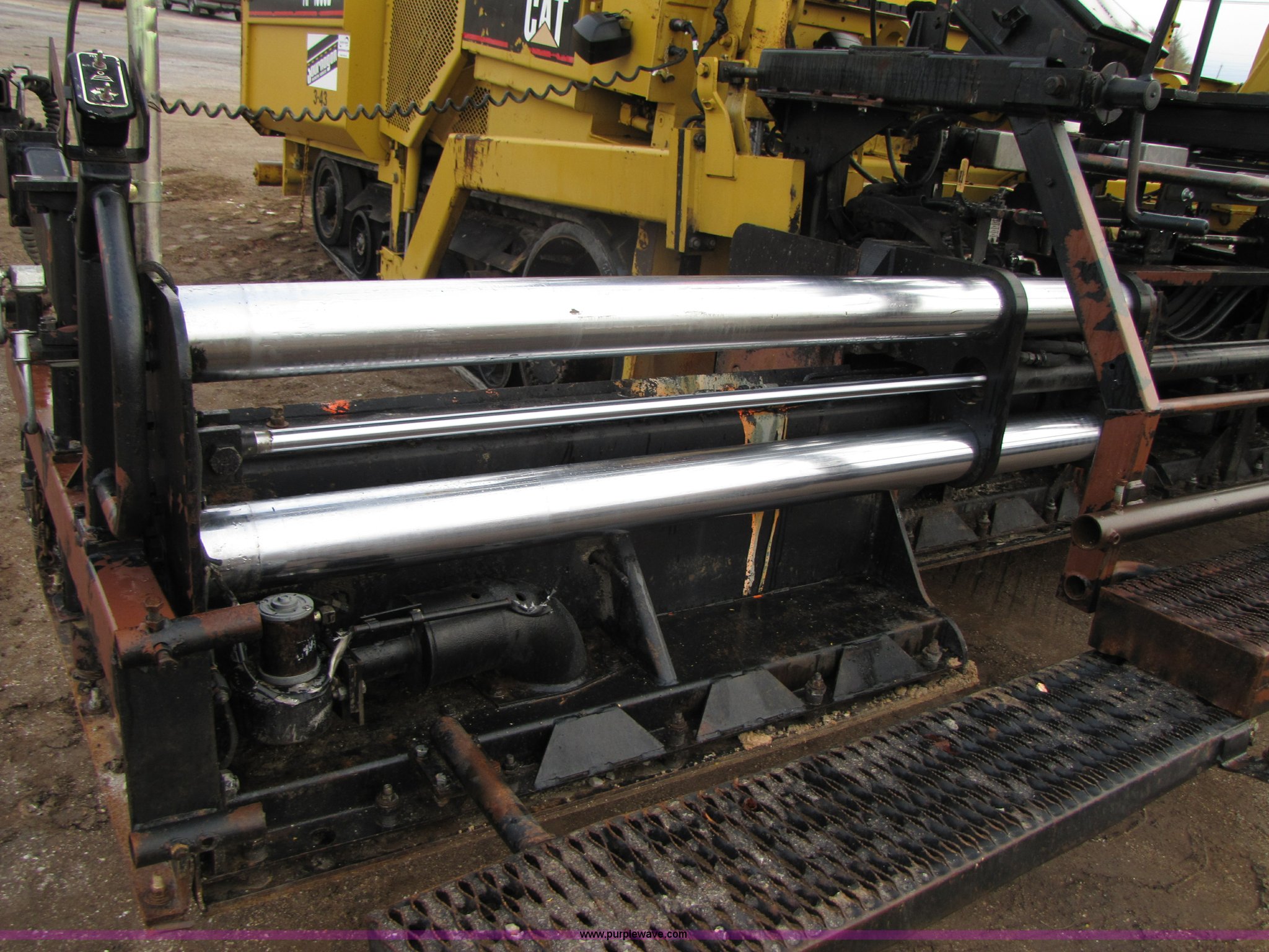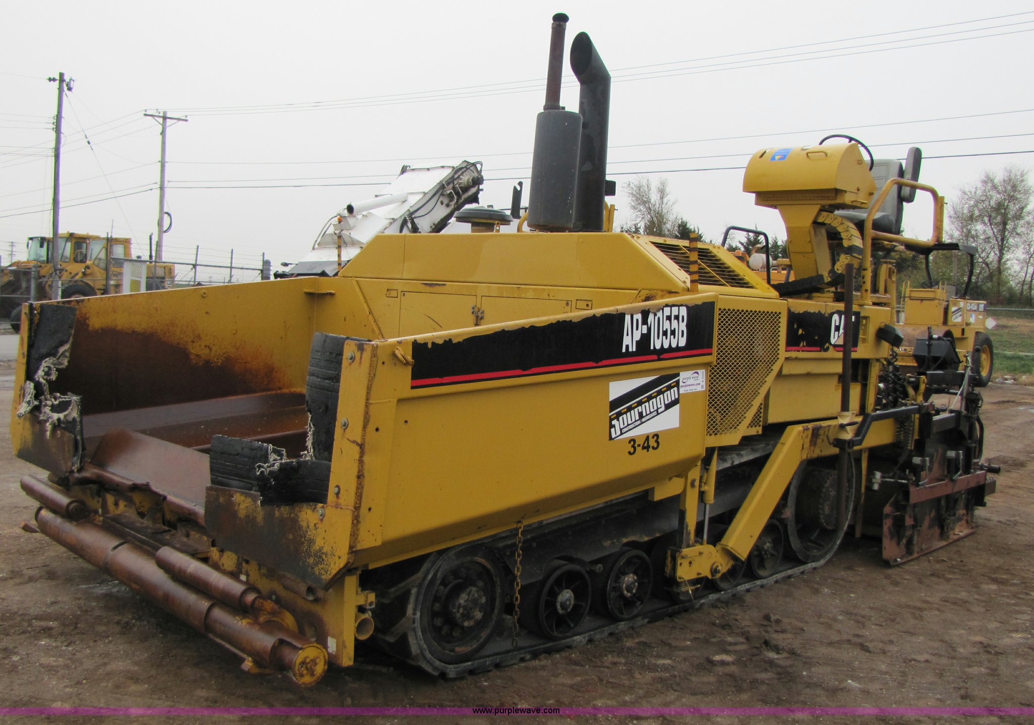 Purple Wave is selling a used Paver or Screed in Missouri. This item is a 2001 Caterpillar AP-1055B crawler asphalt paver with the following: 6,332 hours on meter, Caterpillar 3116TA turbo diesel engine, Hydrostatic drive, Pavemaster 10B extendable screed, Heated, 18" rubber tracks, Recently replaced, 10' to 20' paving width, Controls and operator seat slide to either side, Set up for Topcon laser system, Upper and lower screed controls, Reel hose wash down system, 43,500 lbs. base operating weight, Topcon electronics included, Serial ABB00343, Equip# 03-043