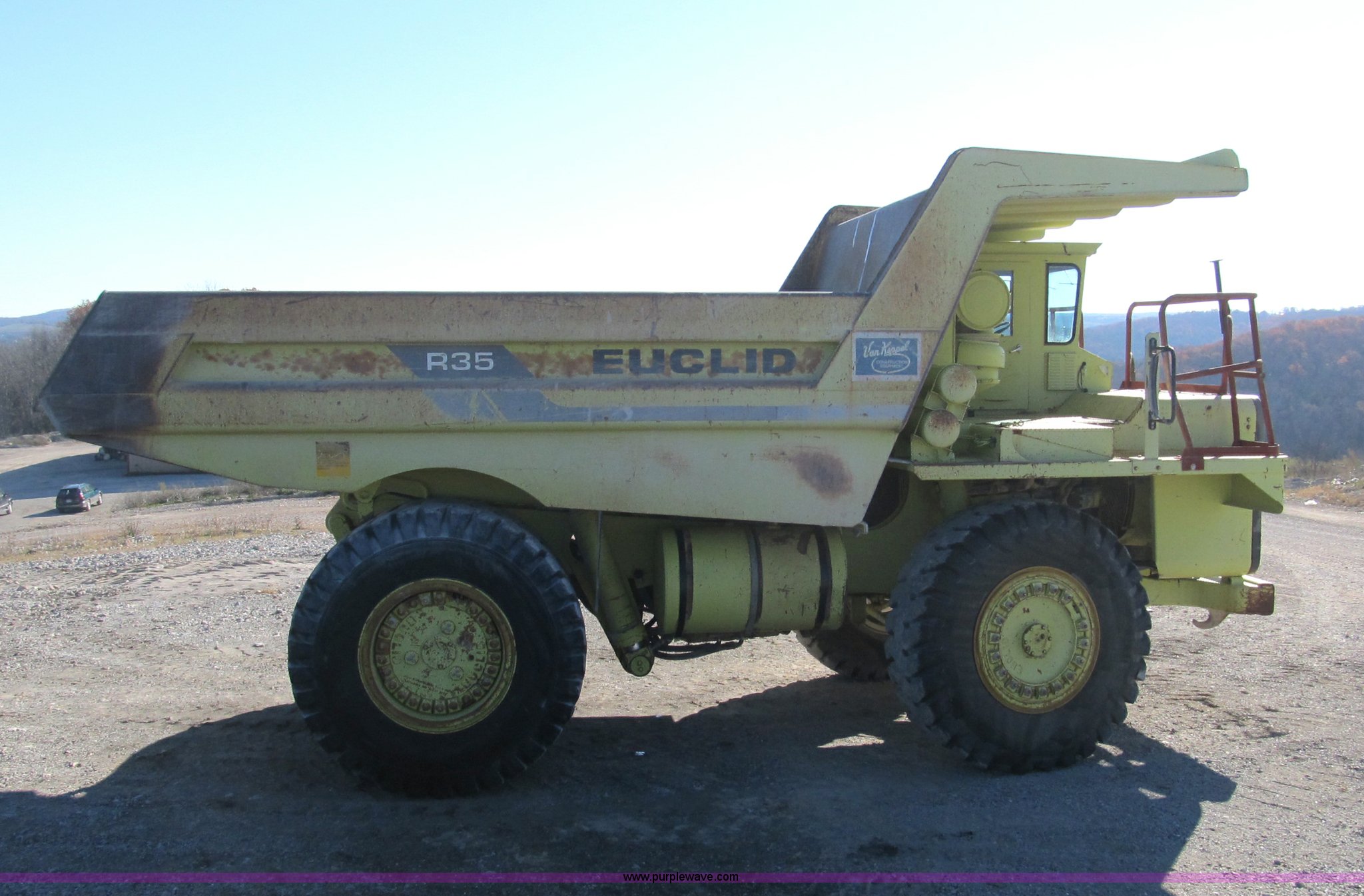 Purple Wave is selling a used Off Road Haul Truck in Missouri. This item is a 1994 Euclid R35 off road end dump truck with the following: Hour meter non operational, 20,000+ hours, Cummins KT-19C diesel engine, 430 HP, Allison automatic transmission, 35 ton capacity, 30.5 cu yd. capacity, Retarder brake, Heater, 18.00-33 tires, 134,000 lbs. base operating weight, Serial 324TDC74870, Equip# 01-237