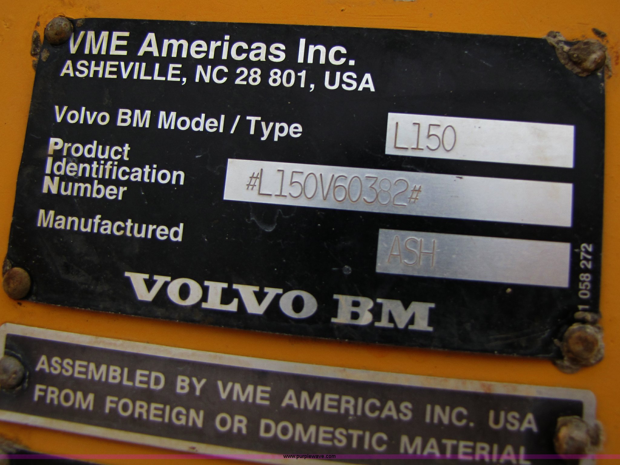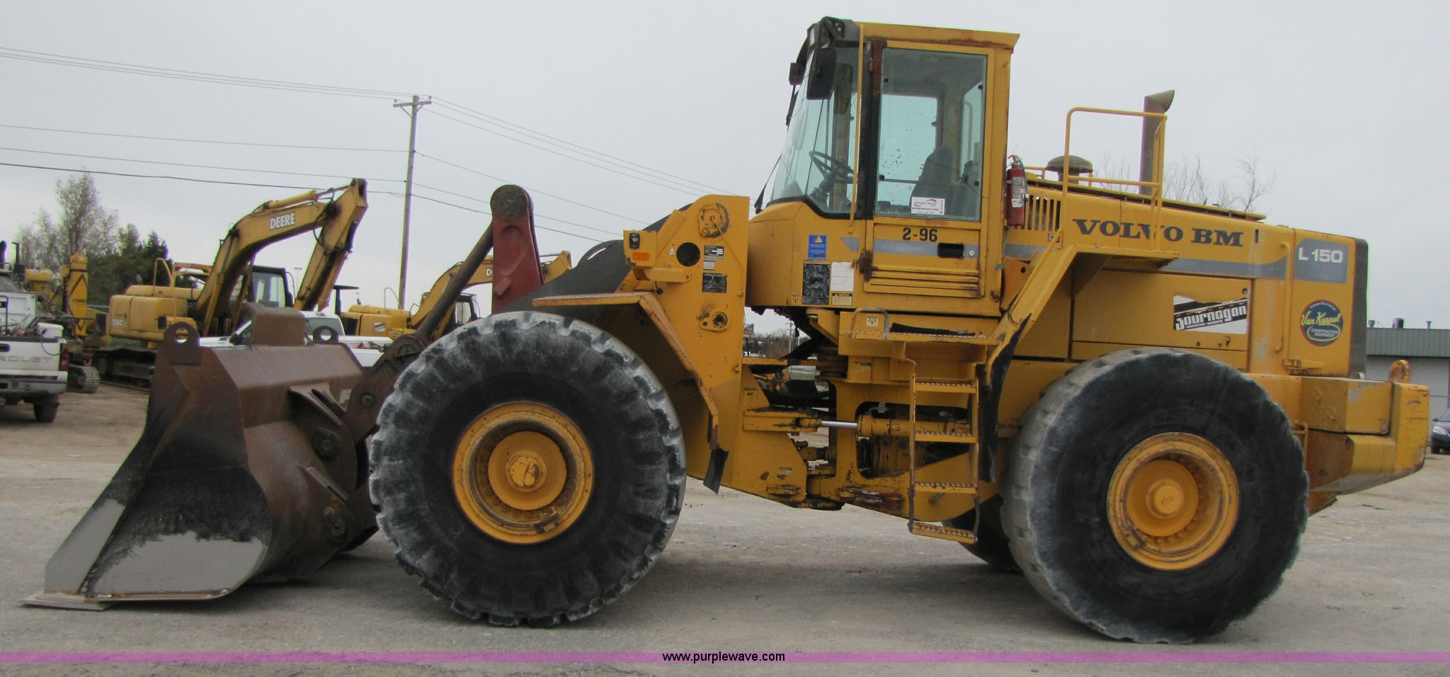 Purple Wave is selling a used Wheel Loader in Missouri. This item is a 1994 Volvo L150 wheel loader with the following: 26,745 hours on meter, Volvo six cylinder turbo diesel engine, 231 HP, Powershift transmission, Cab with AC and heat, AC does not work, 116"W 5.23 cu.yd. bucket, Bolt on cutting edge, 26.5-25 tires, Serial L150V60382, Equip# 02-096