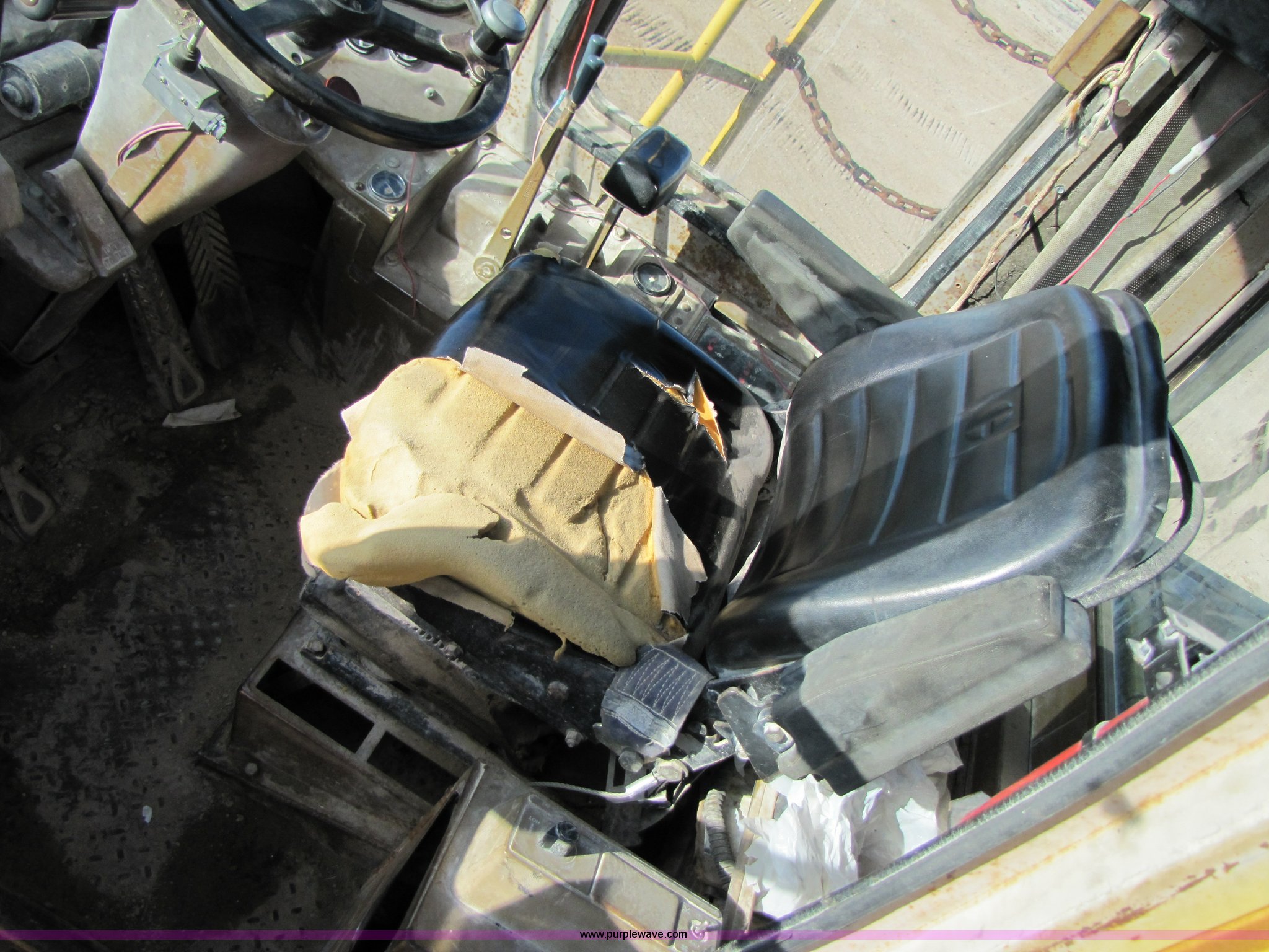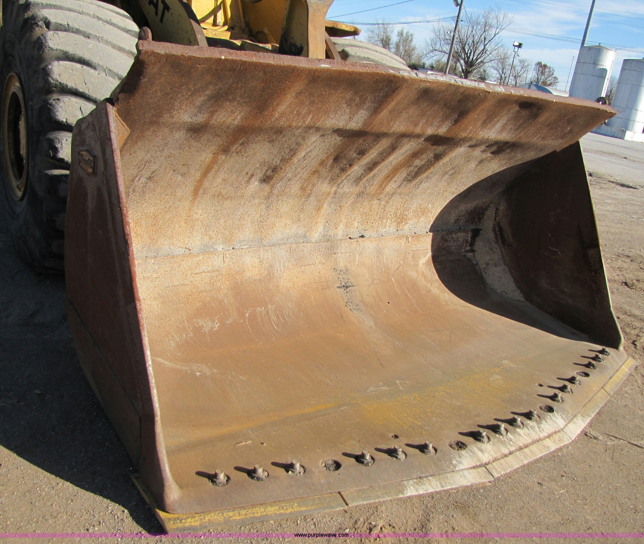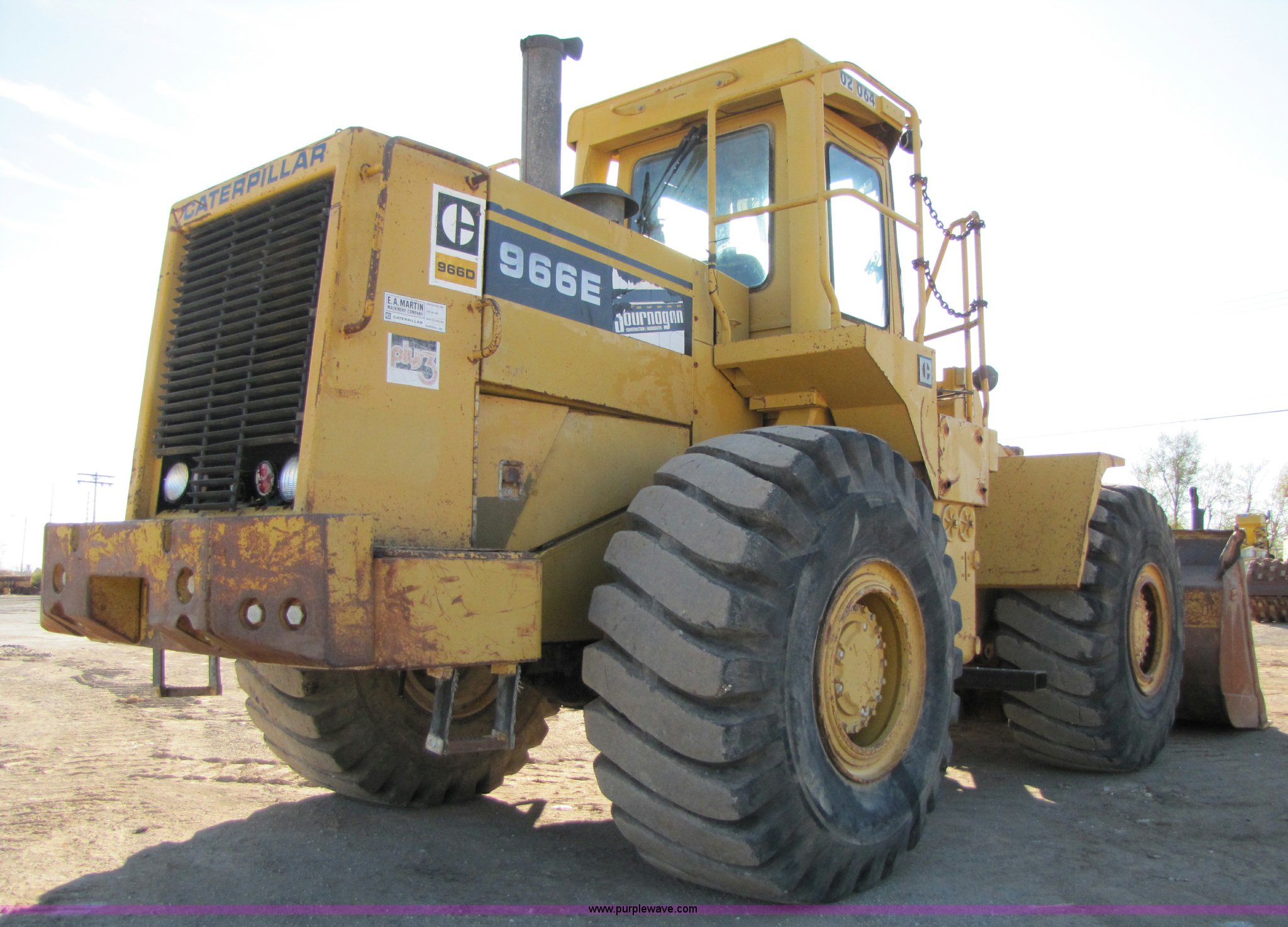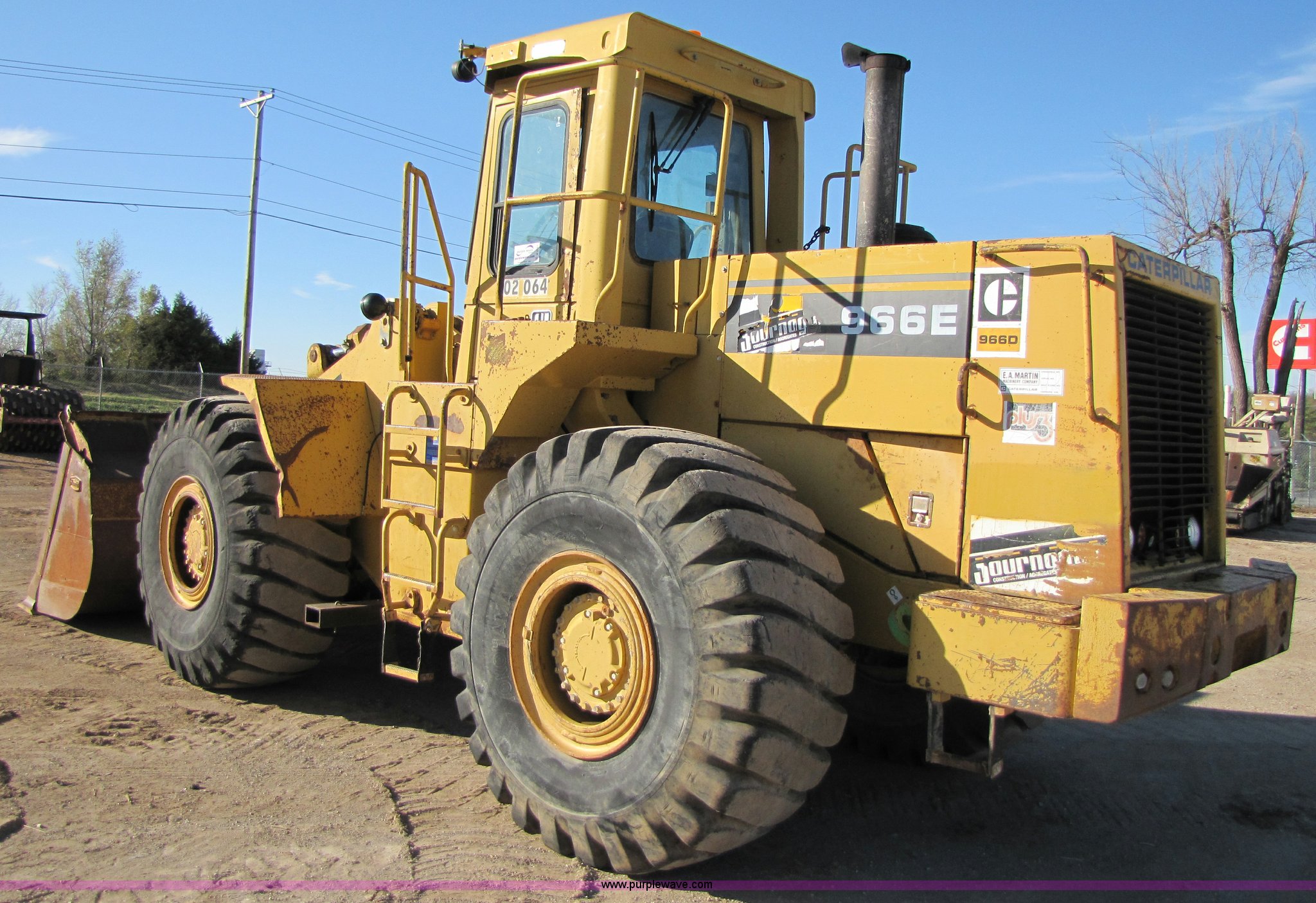 Purple Wave is selling a used Wheel Loader in Missouri. This item is a 1988 Caterpillar 966E wheel loader with the following: 16,340 hours on meter, Caterpillar six cylinder turbo diesel engine, Cab with AC and heat, 4.24 cu.yd. bucket, 123" spade nose bucket, New reversible cutting edge, 26.5-25 tires, Serial 94X07623, Equip# 02-064