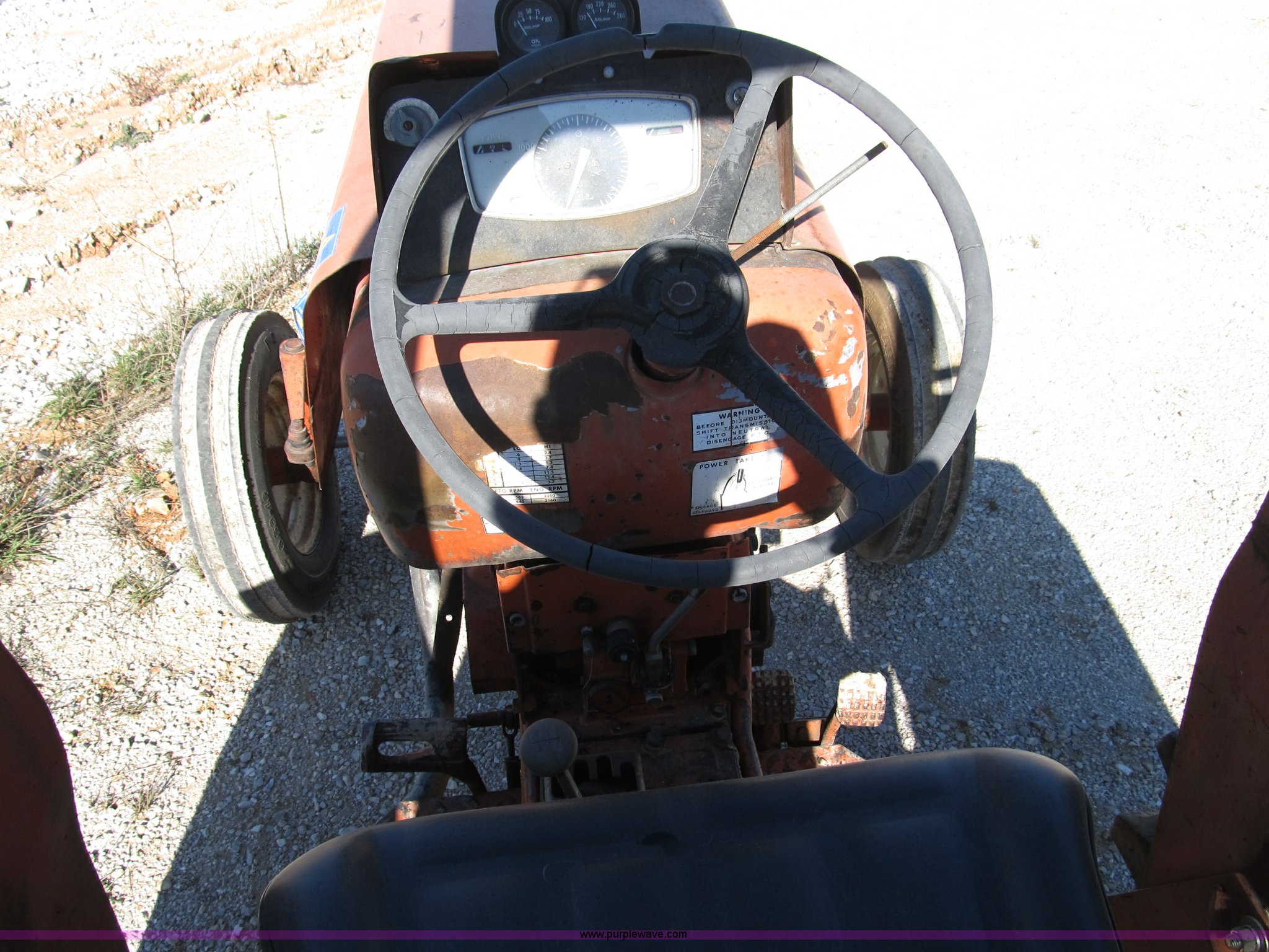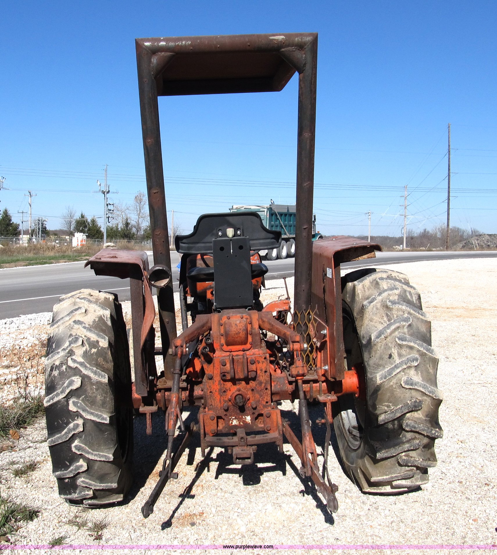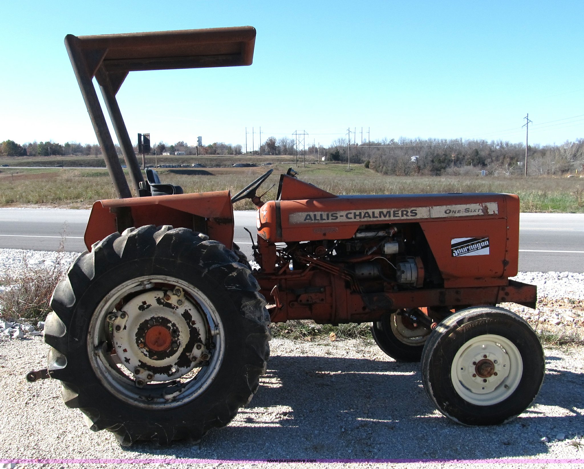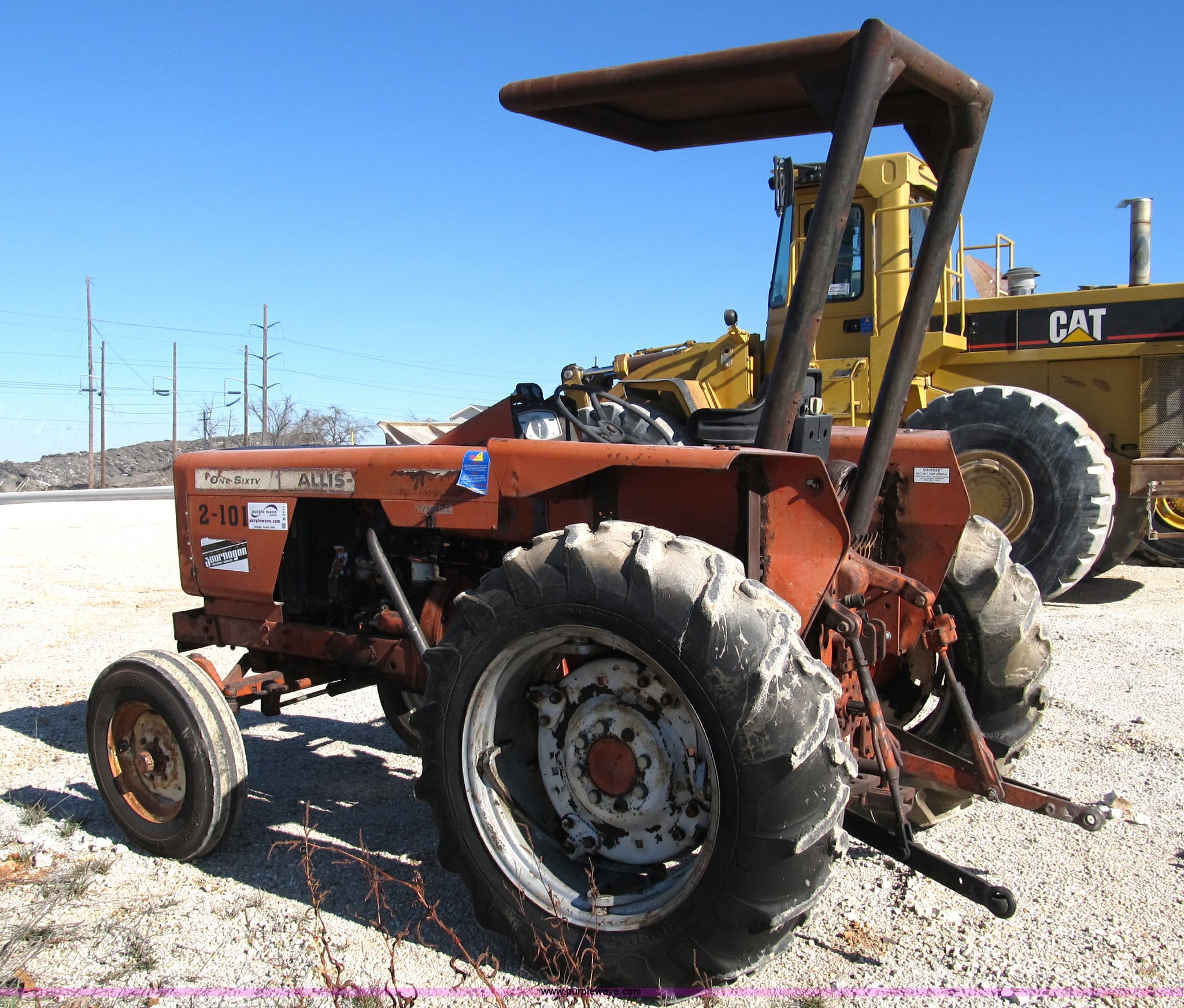 Purple Wave is selling a used Tractor in Missouri. This item is a Allis Chalmers 160 tractor with the following: Three cylinder diesel engine, Six speed shuttle transmission, Canopy, Three point, non-operational, No top link, 540 PTO, Hydraulic remote set, 6.50-16 front tires, 13.6-28 rear tires, Frame under engine has been welded, Equip# 02-101