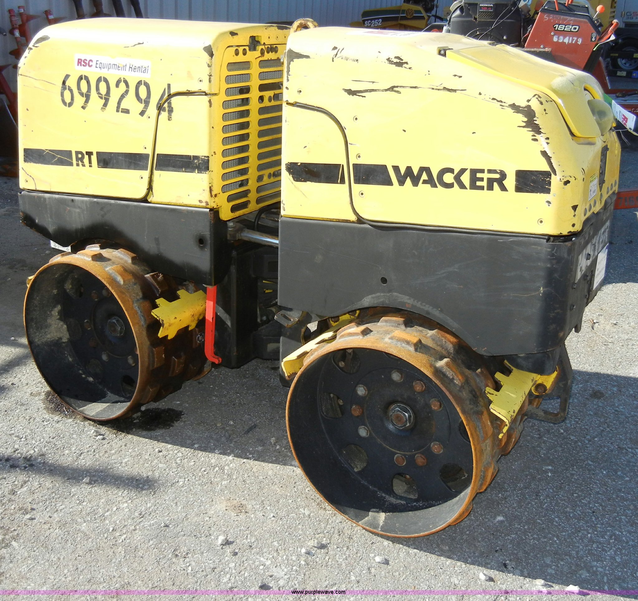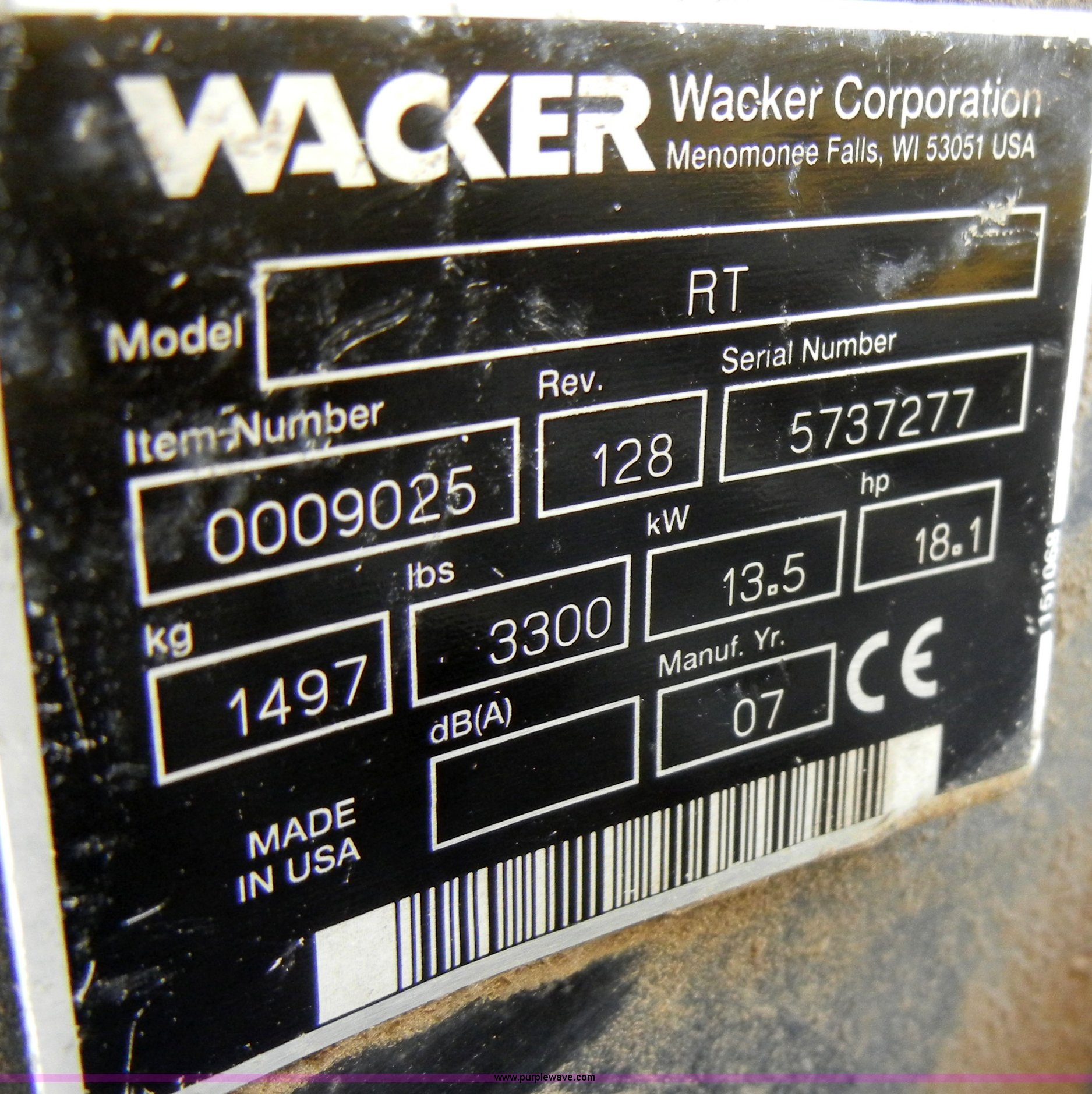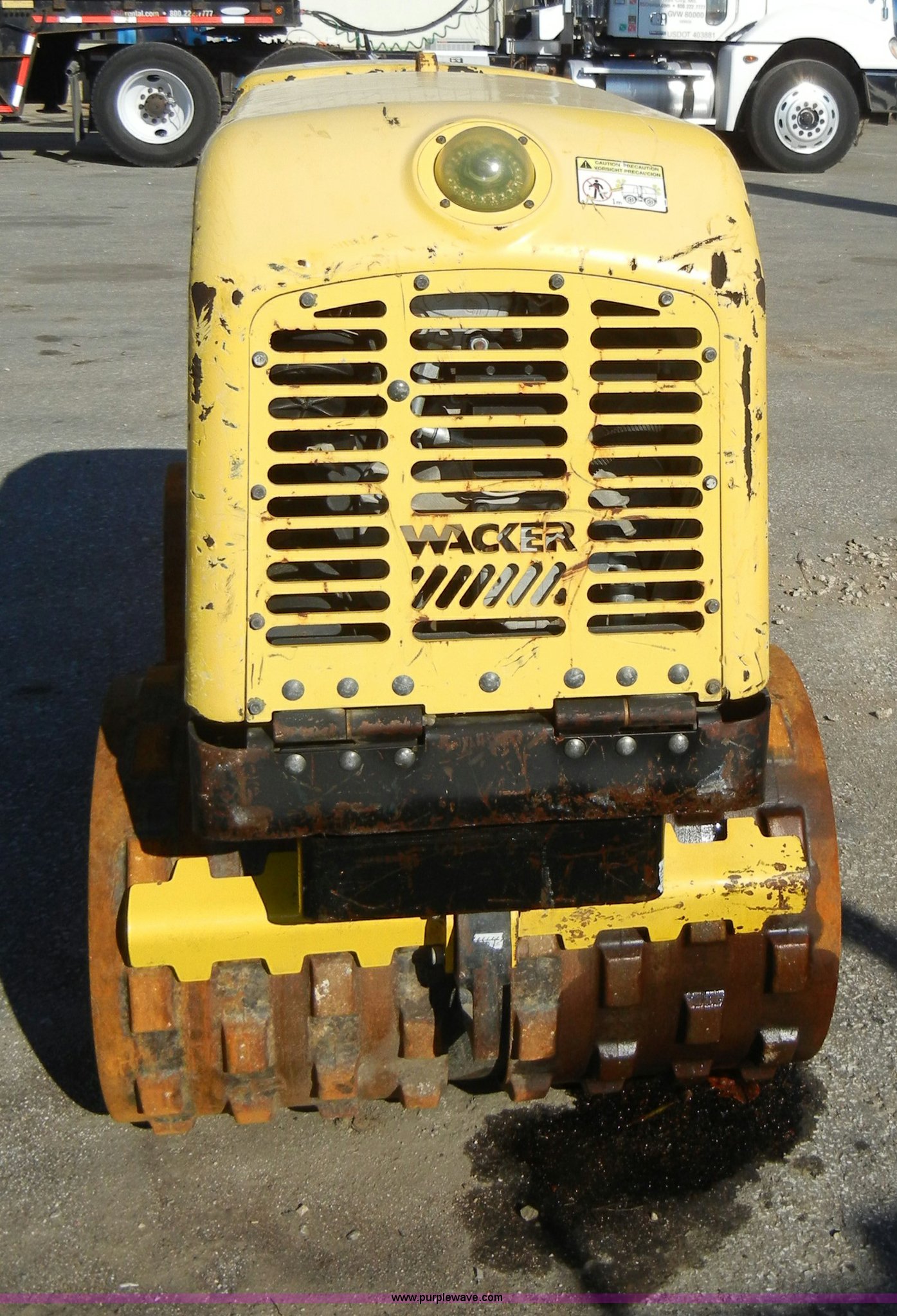 Purple Wave is selling a used Walk Behind Compactor in Kansas. This item is a 2007 Wacker padfoot roller/packer with the following: 493 hours on meter, Lombardini diesel engine, 18.1 HP, Family 7LBDL37SF0, 32" rollers, Transmitter and receiver unit, 3,300 lbs. base operating weight, Serial 5737277, EIN 699294