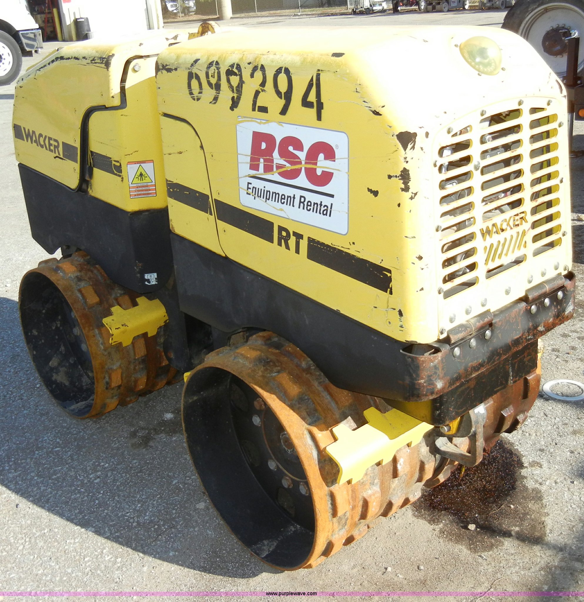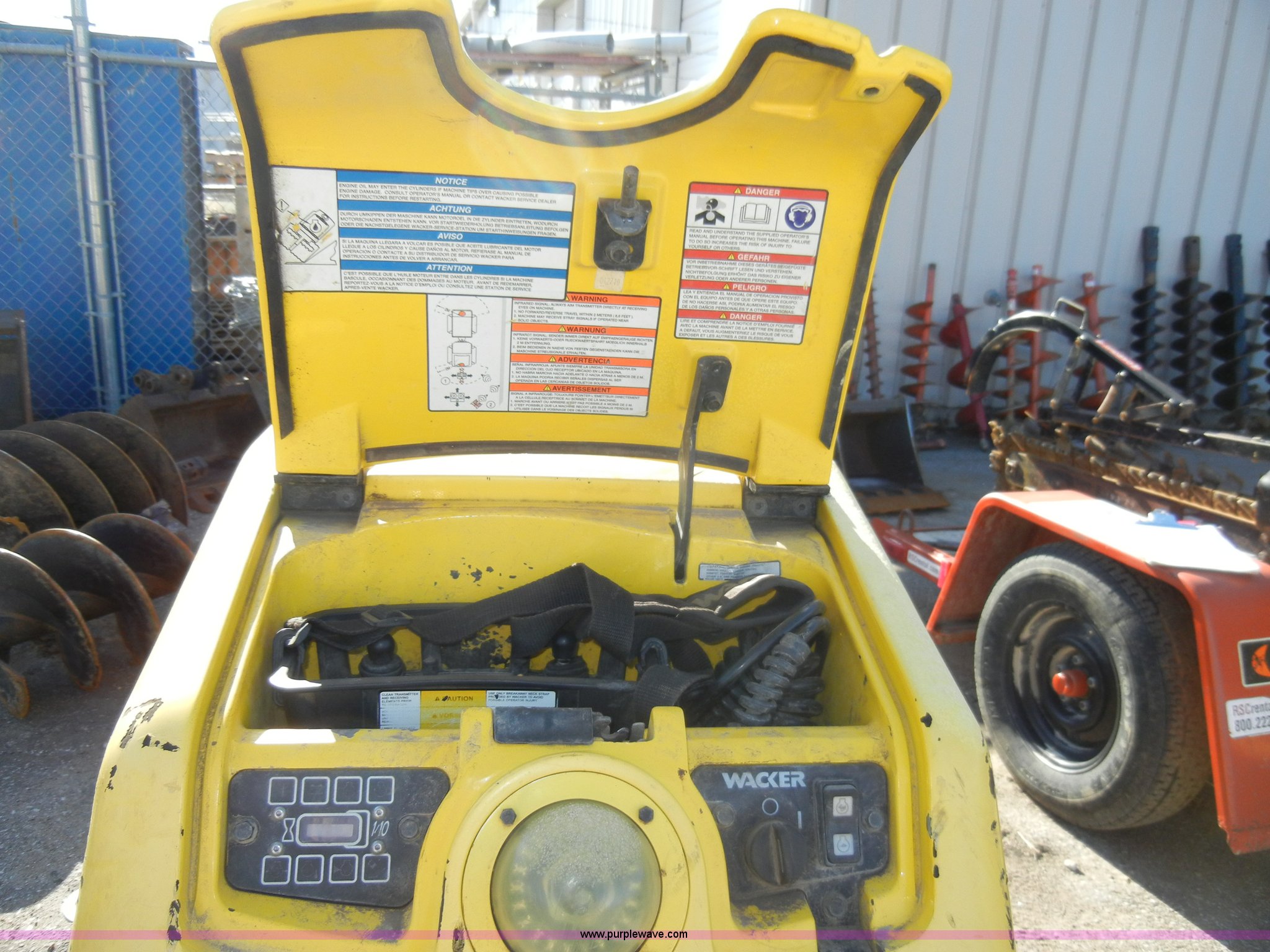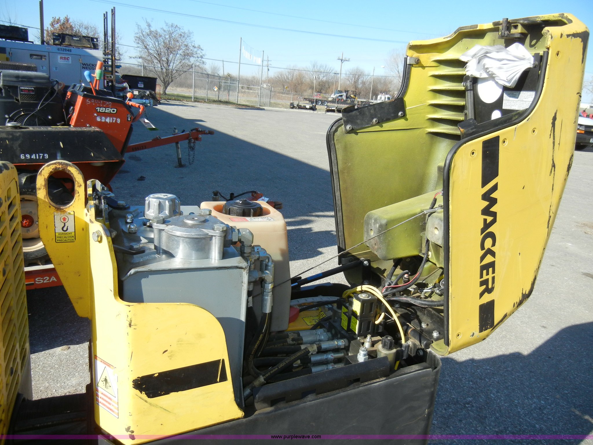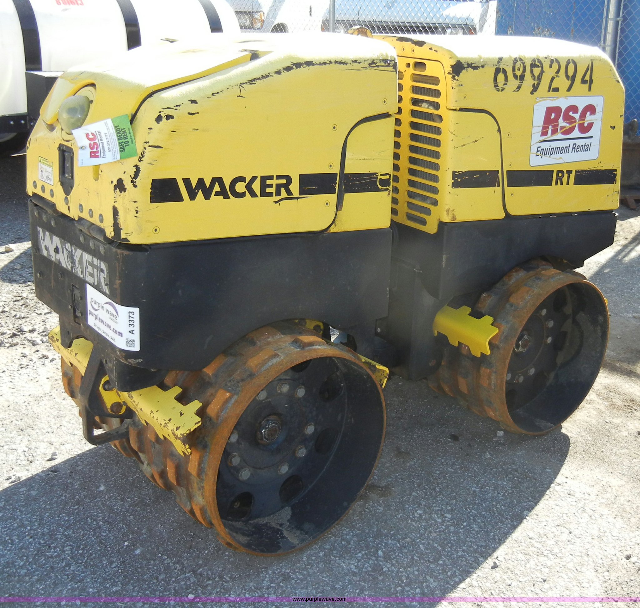 Purple Wave is selling a used Walk Behind Compactor in Kansas. This item is a 2007 Wacker padfoot roller/packer with the following: 493 hours on meter, Lombardini diesel engine, 18.1 HP, Family 7LBDL37SF0, 32" rollers, Transmitter and receiver unit, 3,300 lbs. base operating weight, Serial 5737277, EIN 699294