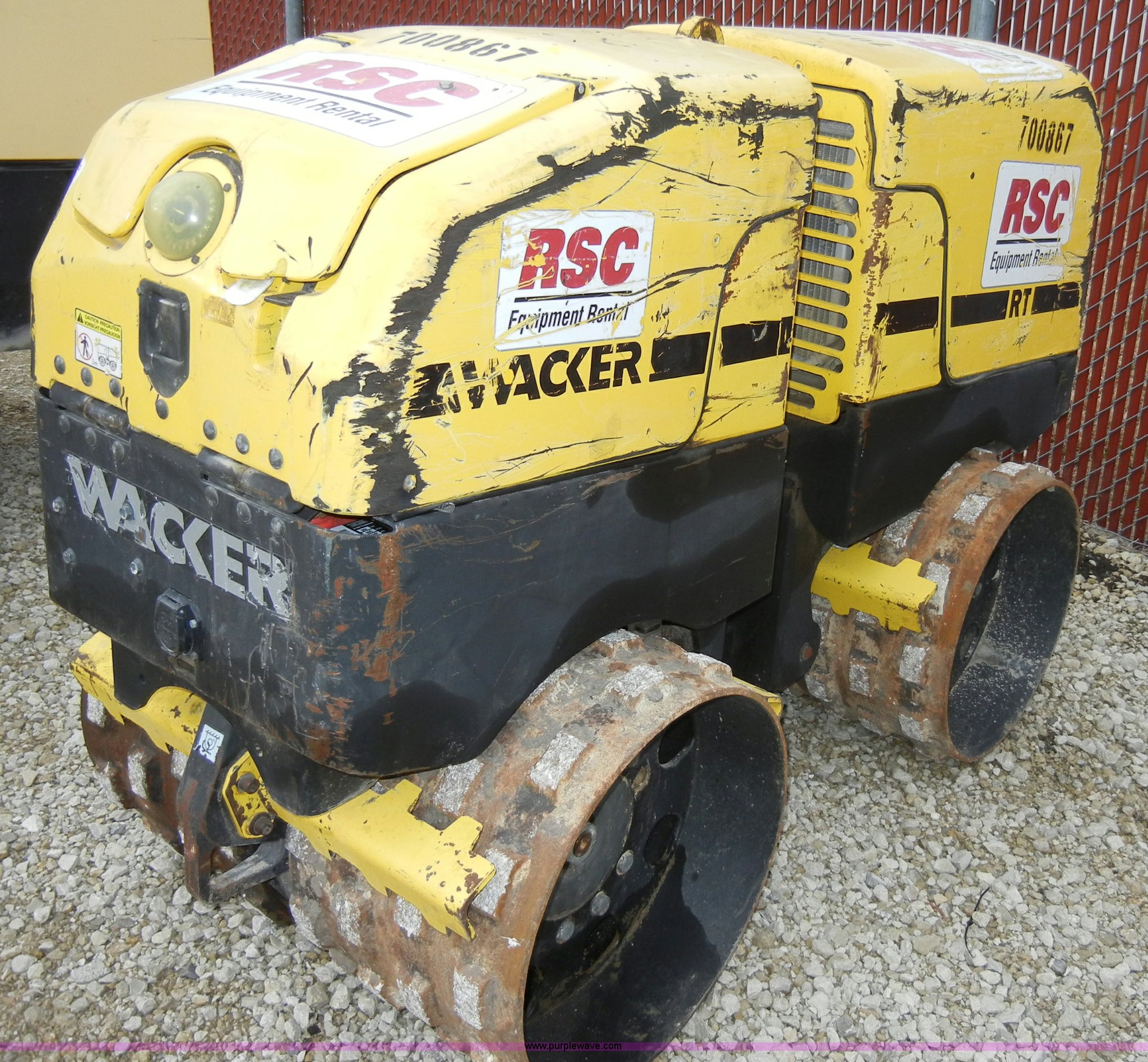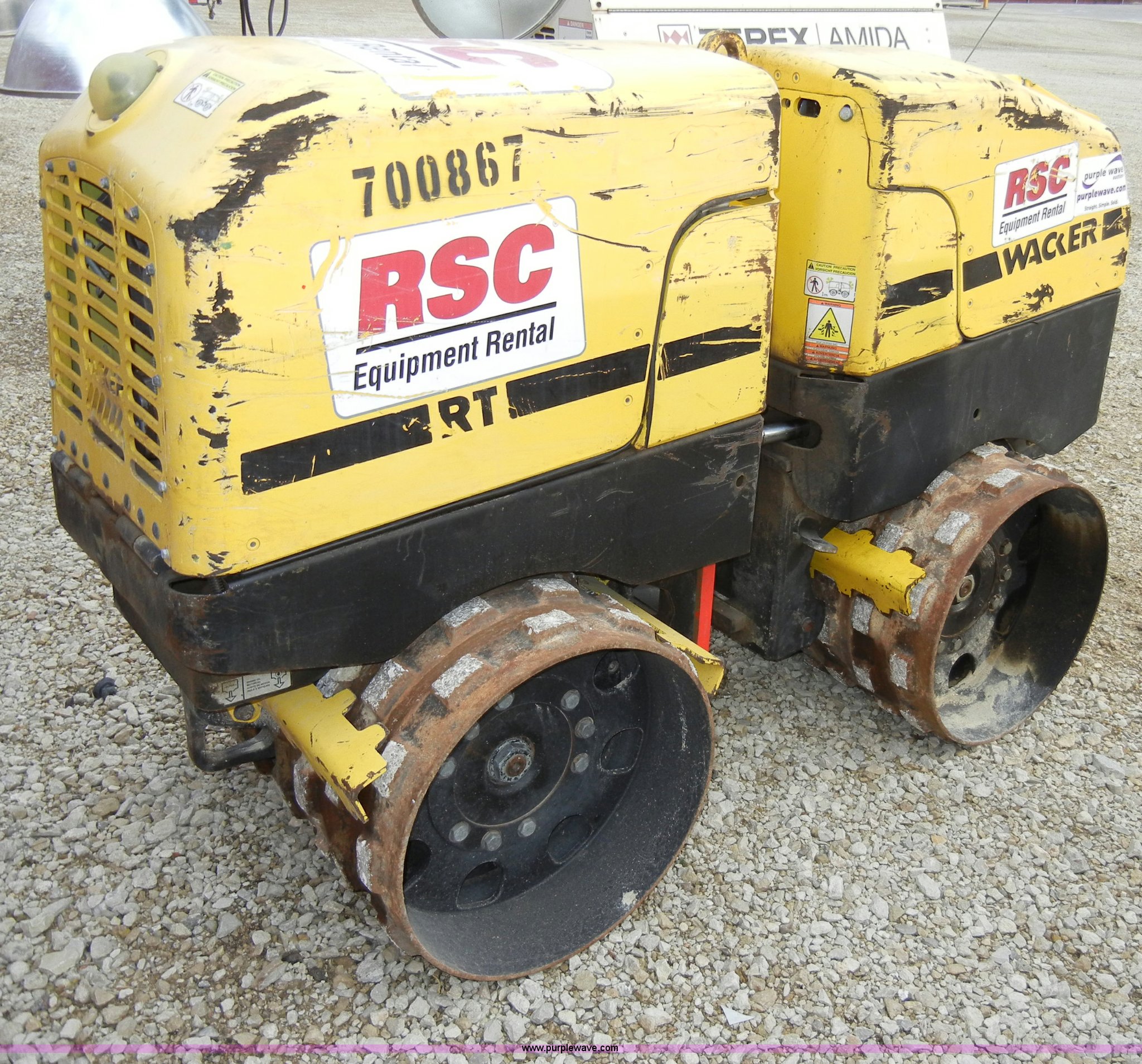 Purple Wave is selling a used Walk Behind Compactor in Kansas. This item is a 2007 Wacker RT82-SC pad foot roller/packer with the following: 718 hours on meter, Lombardini diesel engine, Family 7LBDL1375F0, 32" rollers, Transmitter and receiver unit, EIN 700867