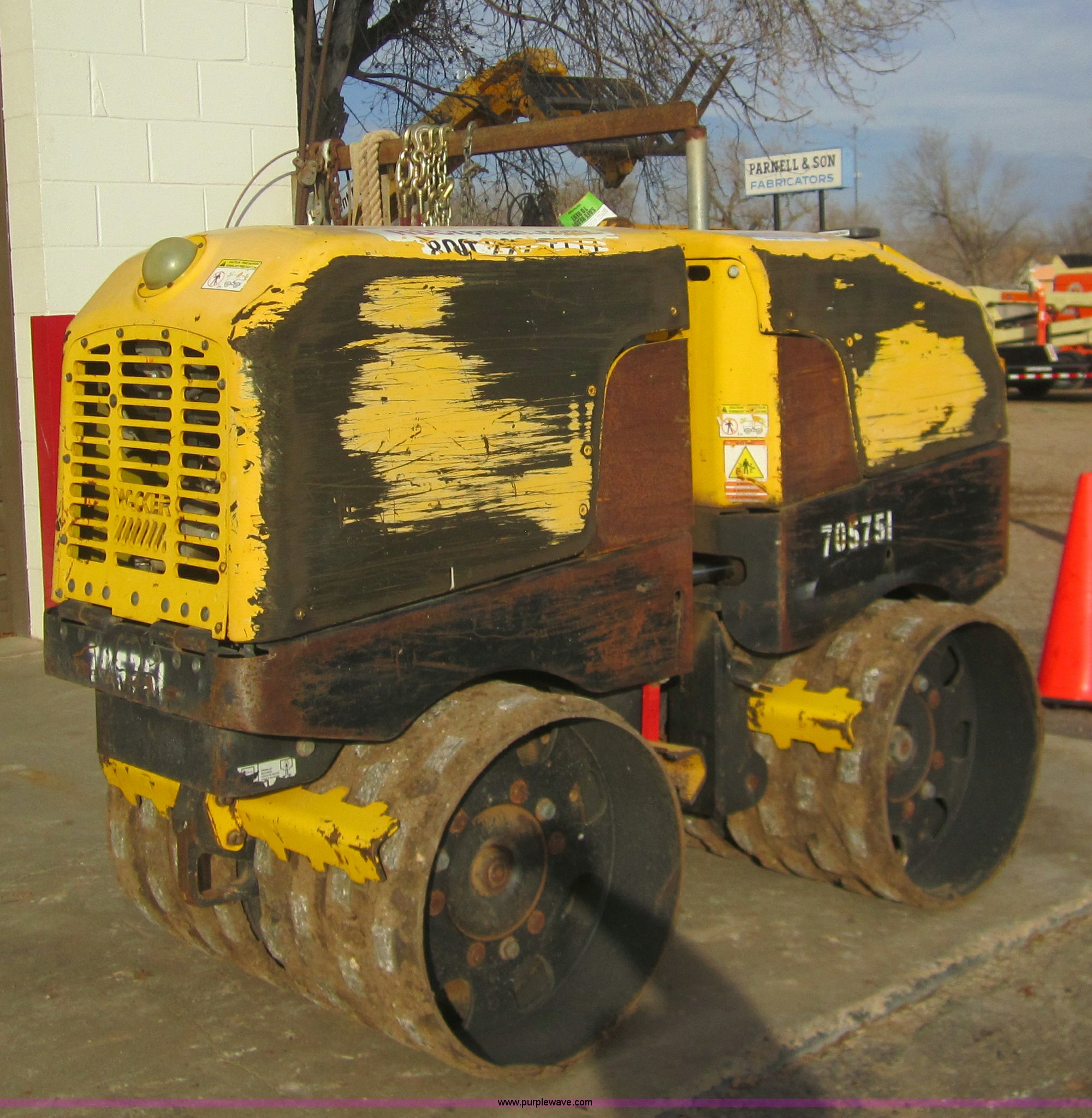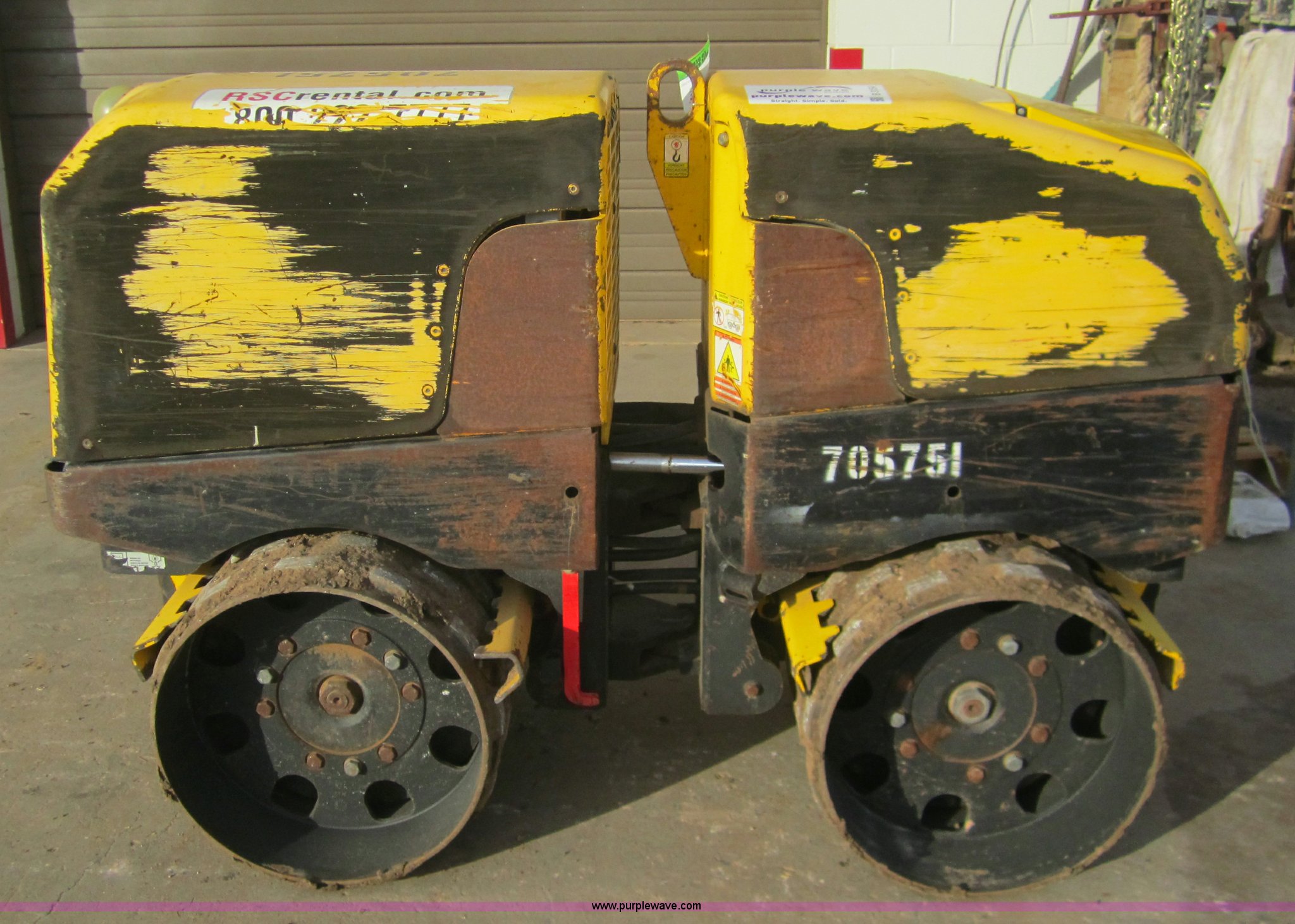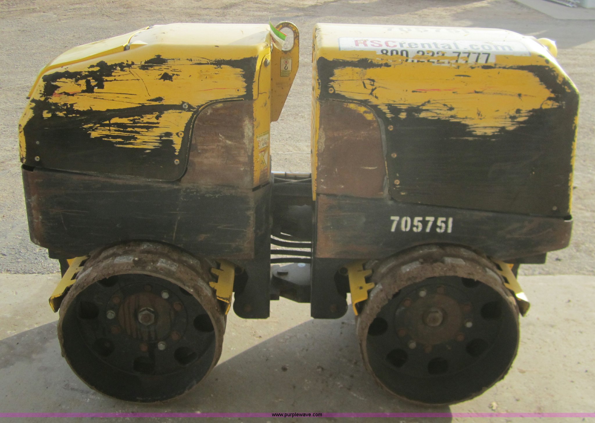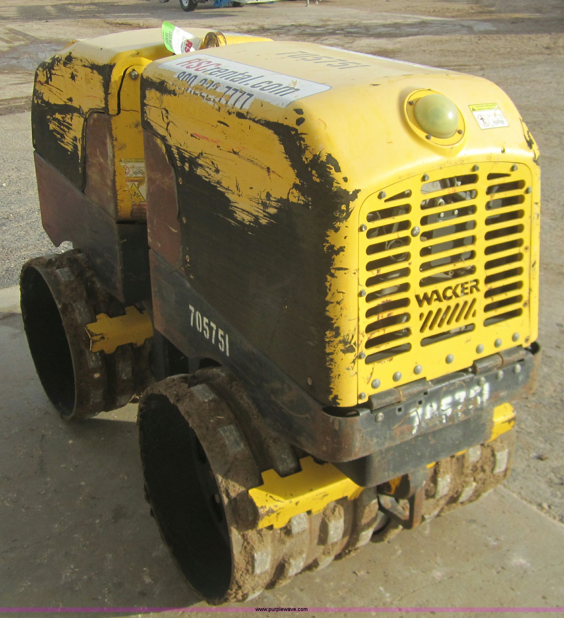 Purple Wave is selling a used Walk Behind Compactor in Kansas. This item is a 2007 Wacker RT82 roller/packer with the following: 733 hours on meter, Lombardini 18 HP diesel engine, 12v electric start, 32"W x 20.5" diameter pad foot rollers, 3,247 lbs. base operating weight, 6.3 gallon fuel capacity, Centrifugal force 7,700 to 15,400 lbs, 50% gradability, 6'1"L x 32"W x 4'H, Serial 4744989, EIN 705751