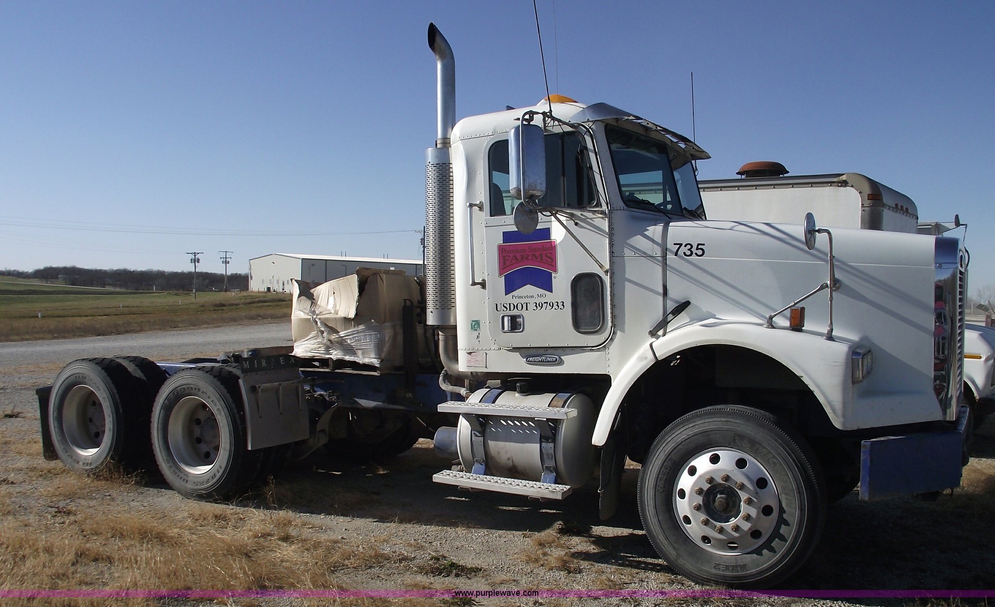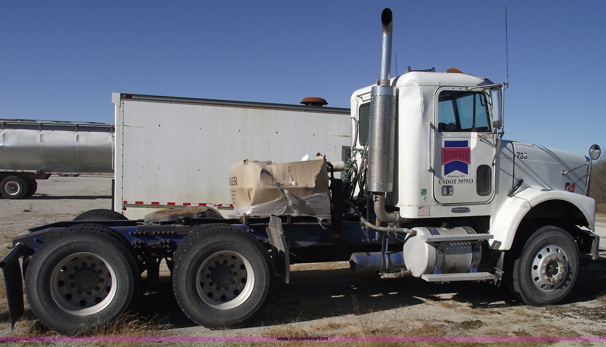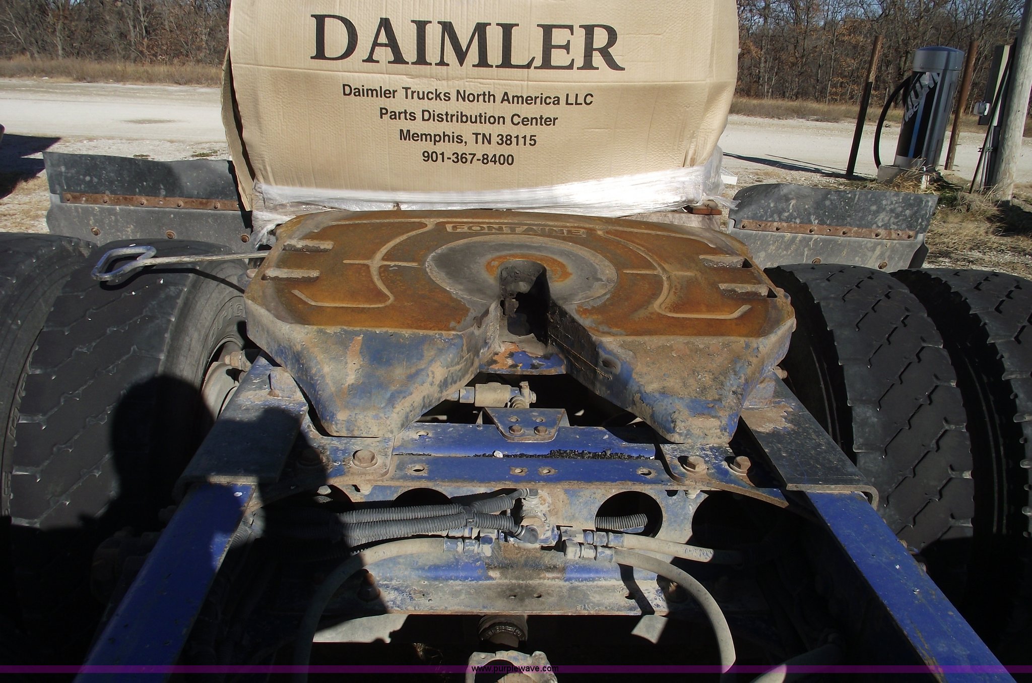 Purple Wave is selling a used Truck Tractor in Missouri. This item is a 2006 Freightliner FLD120 semi truck with the following: 530,237 miles on odometer, Mercedes Benz MBE4000 12.8L diesel engine, Complete engine, but disassembled, 10 speed manual transmission, FRO 16210C, Twin screw, AC and heat, Tilt, Cruise, AM/FM/Cassette, Passenger daylight door, Telescoping wheel, Air ride seat, Air ride cab, Power passenger window, Power and heated mirrors, Exterior visor, Bumper, Block heater, 100 gallon fuel tank, Stainless steel quarter fenders, PTO, Wet kit, Dump valves, Air suspension, Air brakes, Aluminum wheels, 11R22.5 tires, 187" wheelbase, GVWR 52,000 lbs, FAWR 12,000 lbs, IAWR 20,000 lbs, RAWR 20,000 lbs, 3.91 gear ratio, Unit# 735
