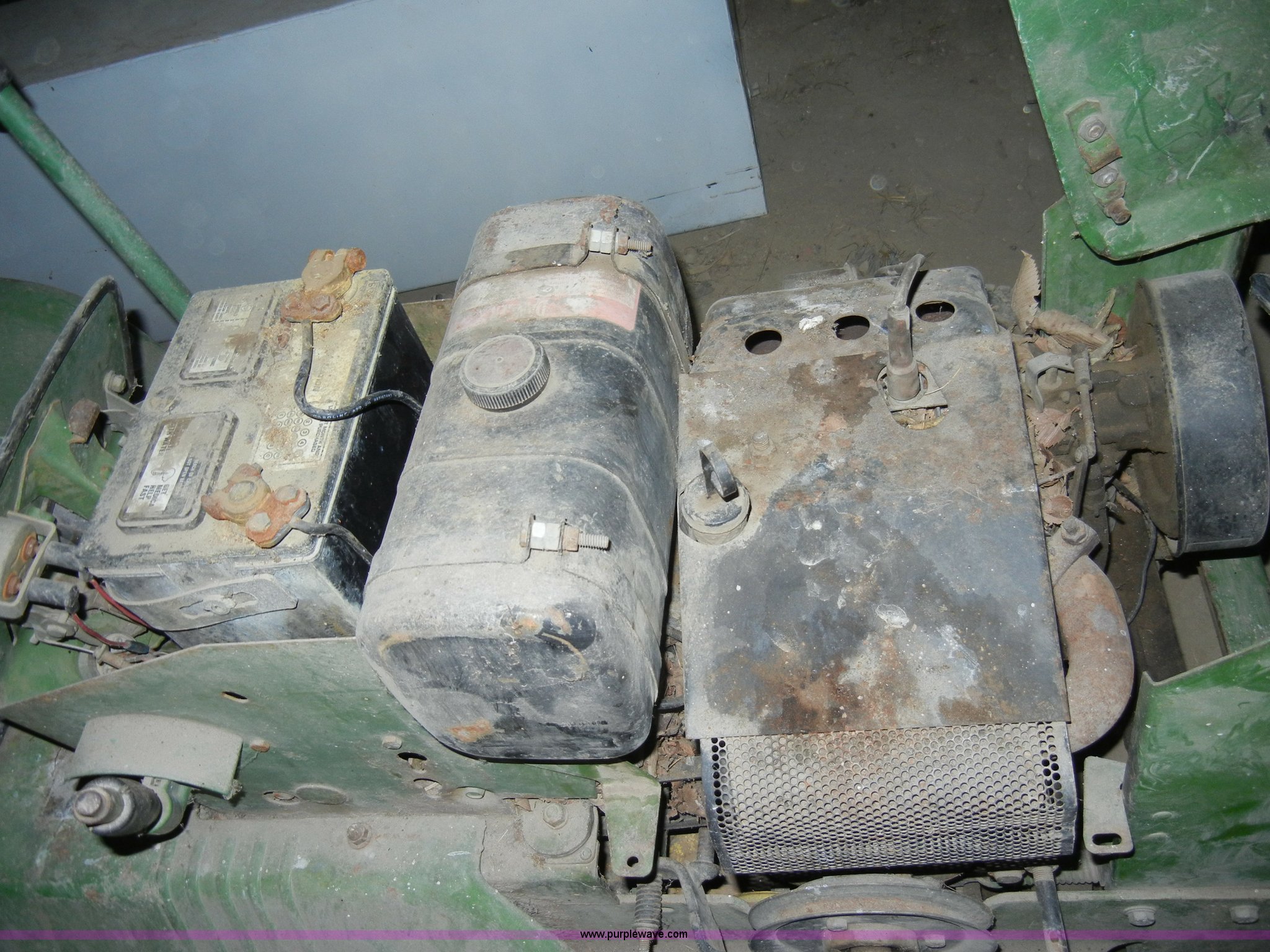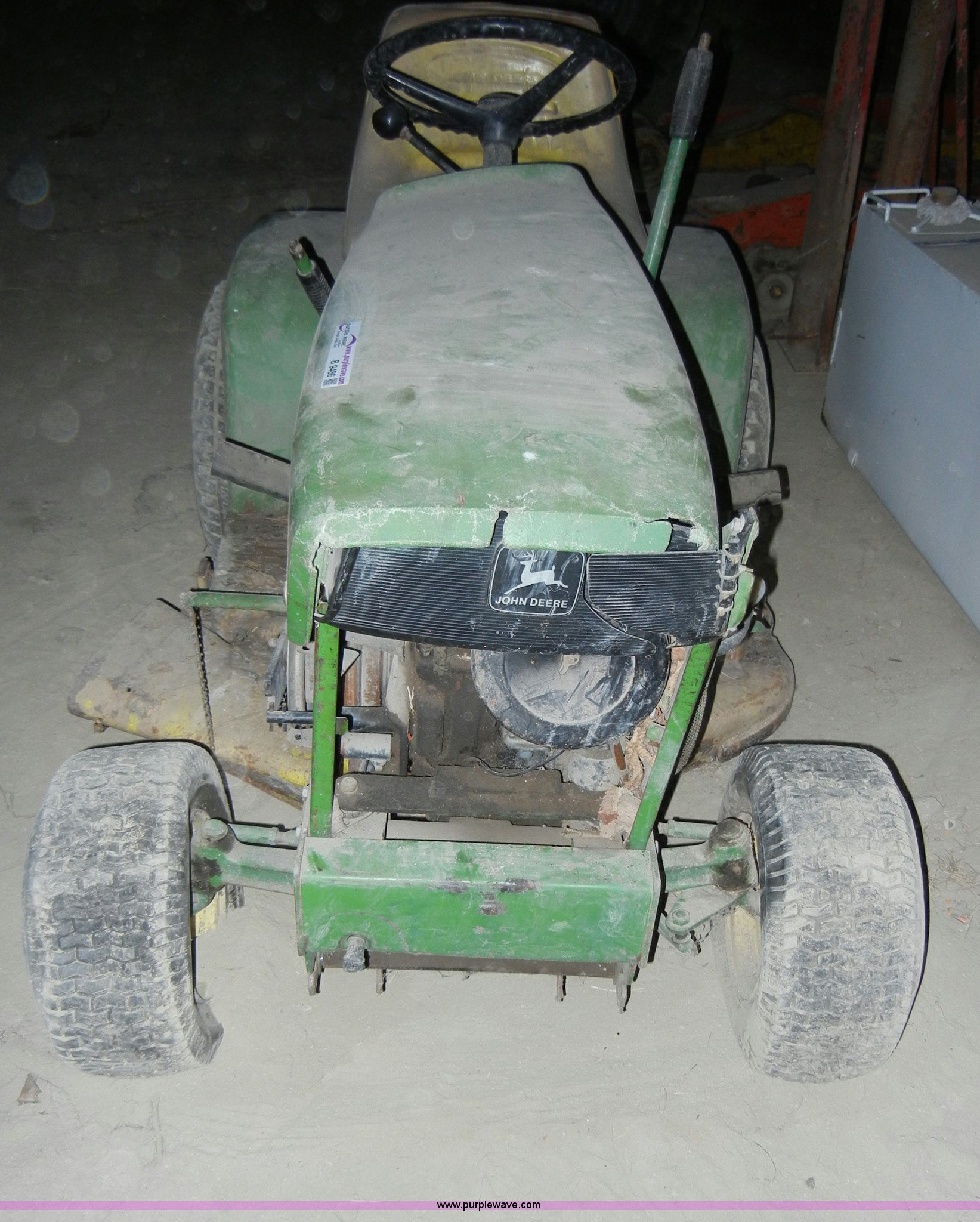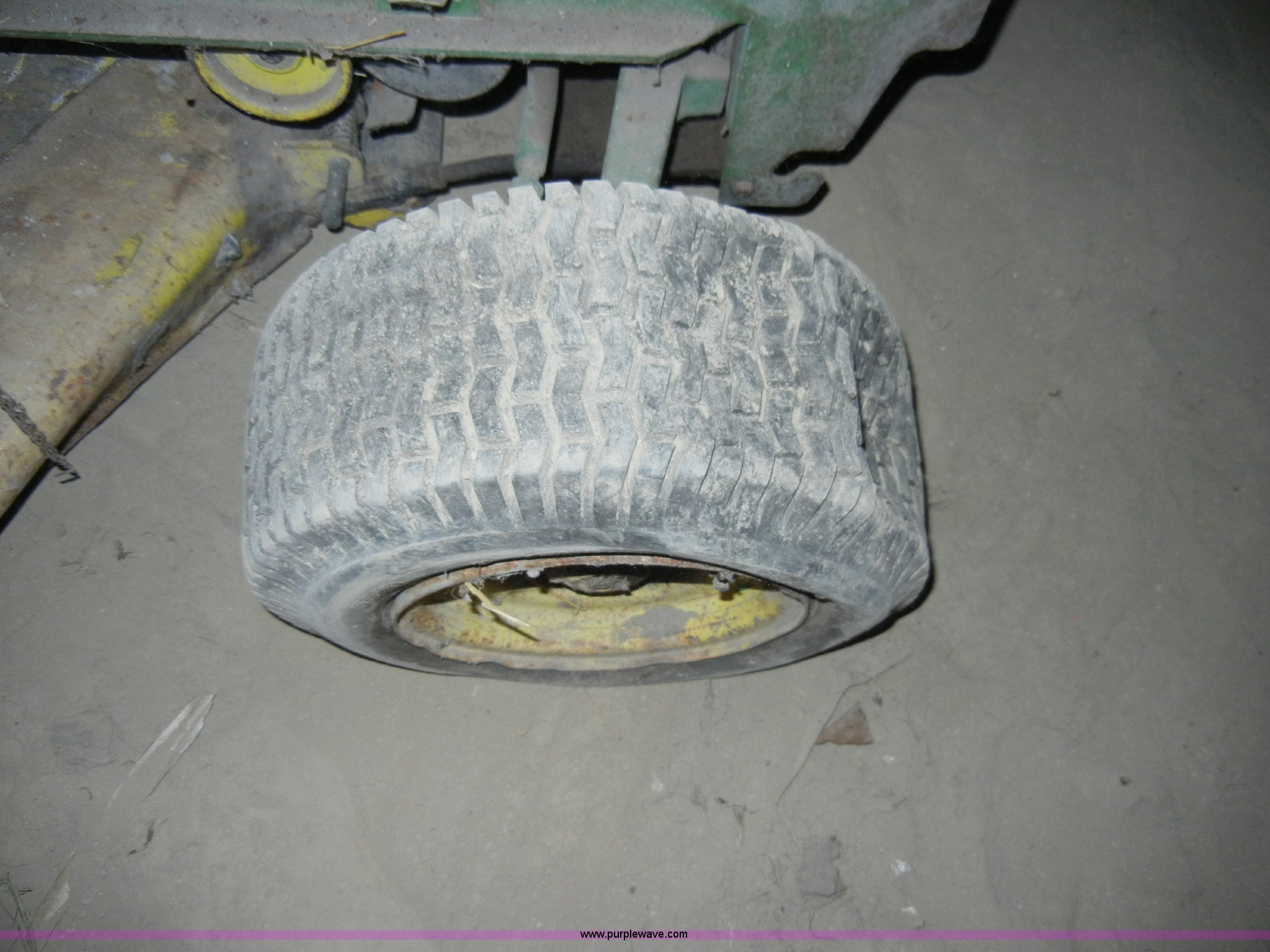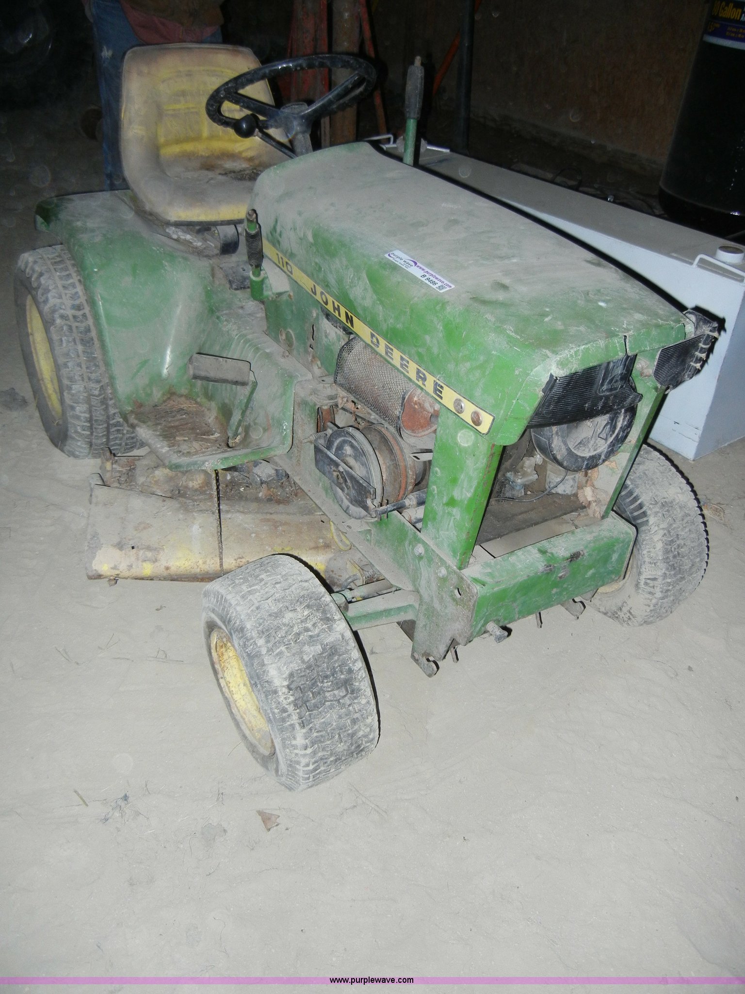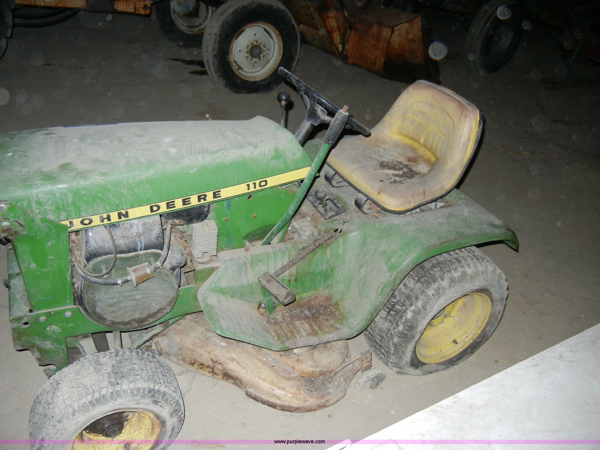 Purple Wave is selling a used Lawn and Garden in Kansas. This item is a John Deere 110 lawn mower with the following: 42" deck, Four speed transmission, Ran when parked five years ago, (3) flat tires, Serial 326546