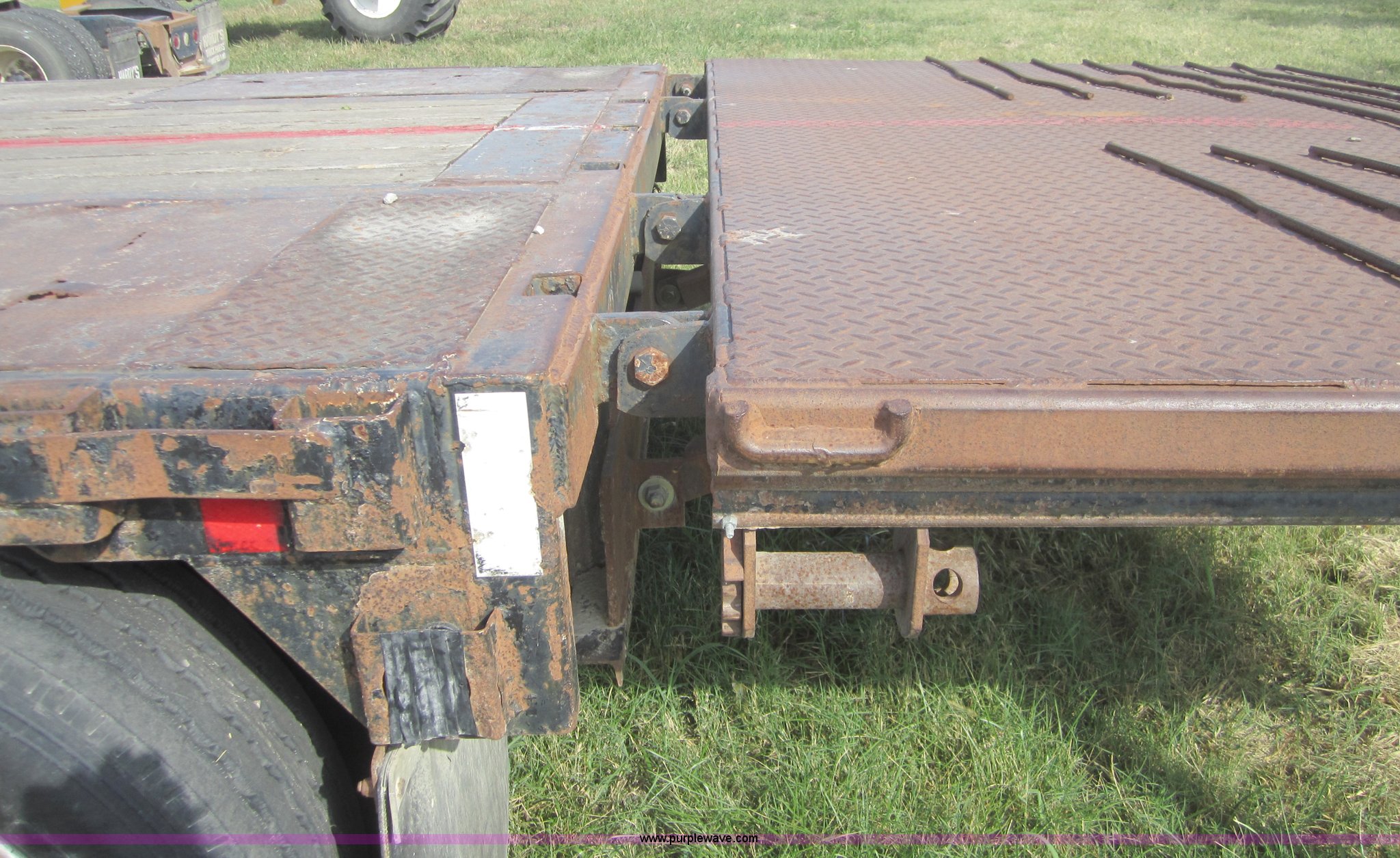 Purple Wave is selling a used Flat or Drop Deck Trailer in Kansas. This item is a 1993 Trail King 53' step deck trailer with the following: 11' neck, 37' deck, 5' manual dove tail, Spread axle, Removable headache rack, Air brakes, Air ride, Wood deck, 255/70R22.5 tires, GVWR 80,880 lbs, Dual 20,280 lb axles, Model TK70LCS-482