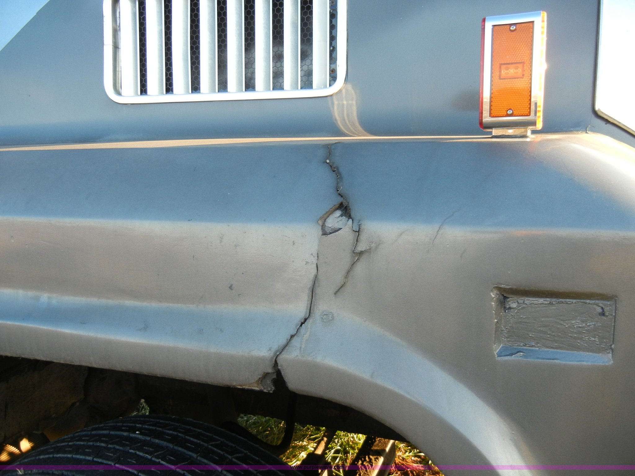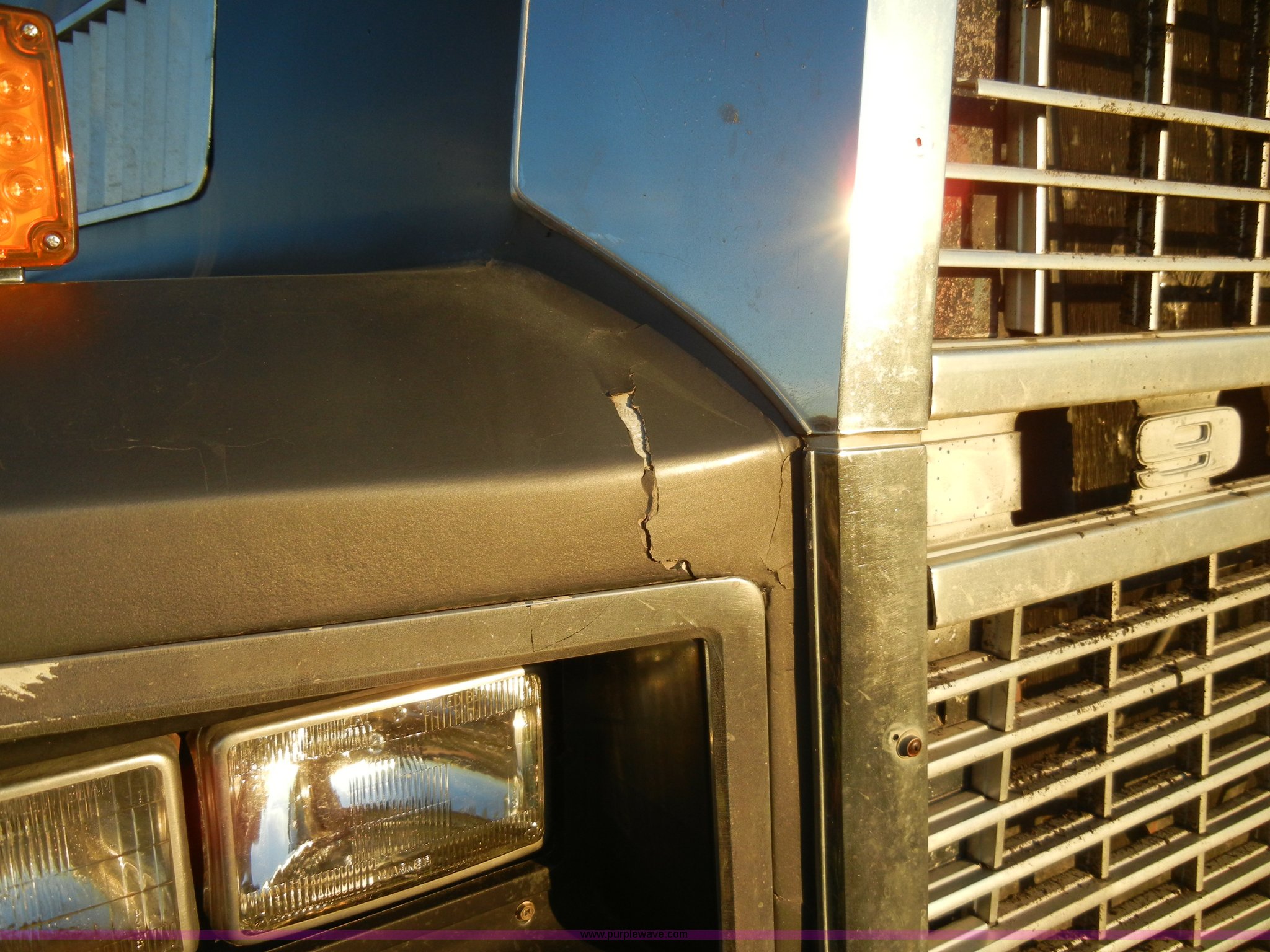 Purple Wave is selling a used Construction Dump Truck in Kansas. This item is a 1985 Ford LTL9000 dump truck with the following: 843,258 miles on odometer, Cummins N14 14.0L diesel engine, Roadranger 10 speed manual transmission, RT-11609-14609, AC and heat, Heated mirrors, 17' barrel bed, Air operated end gate, Roll over tarp, Bumper, Block heater, Trailer wiring, Pintle hitch, Dual 50 gallon fuel tanks, Spring suspension, Front tow hooks, Topside horns, Air brakes, 11R22.5 front/rear tires, 9R17.5 mid tires, GVWR 46,000 lbs, Interior cosmetic damage, Cosmetic damage to hood area, Front grill damage, BB pellet damage to windshield
