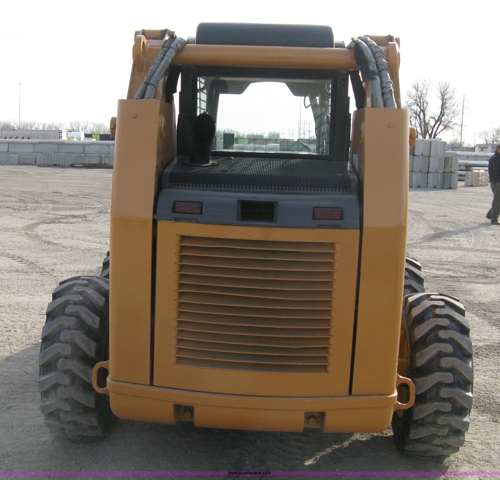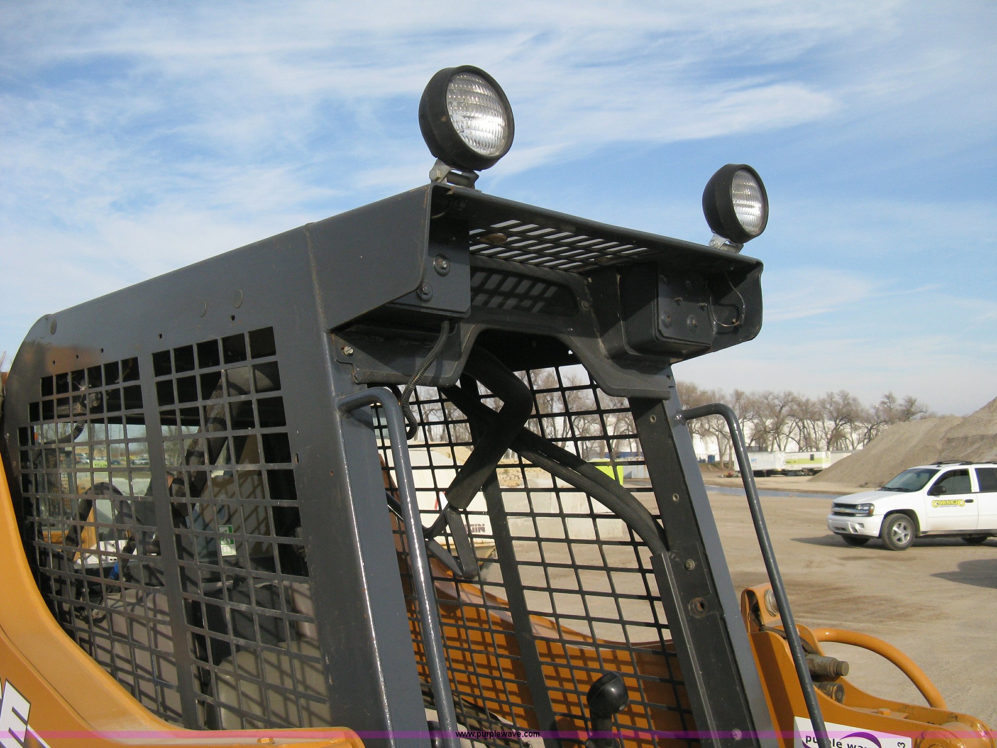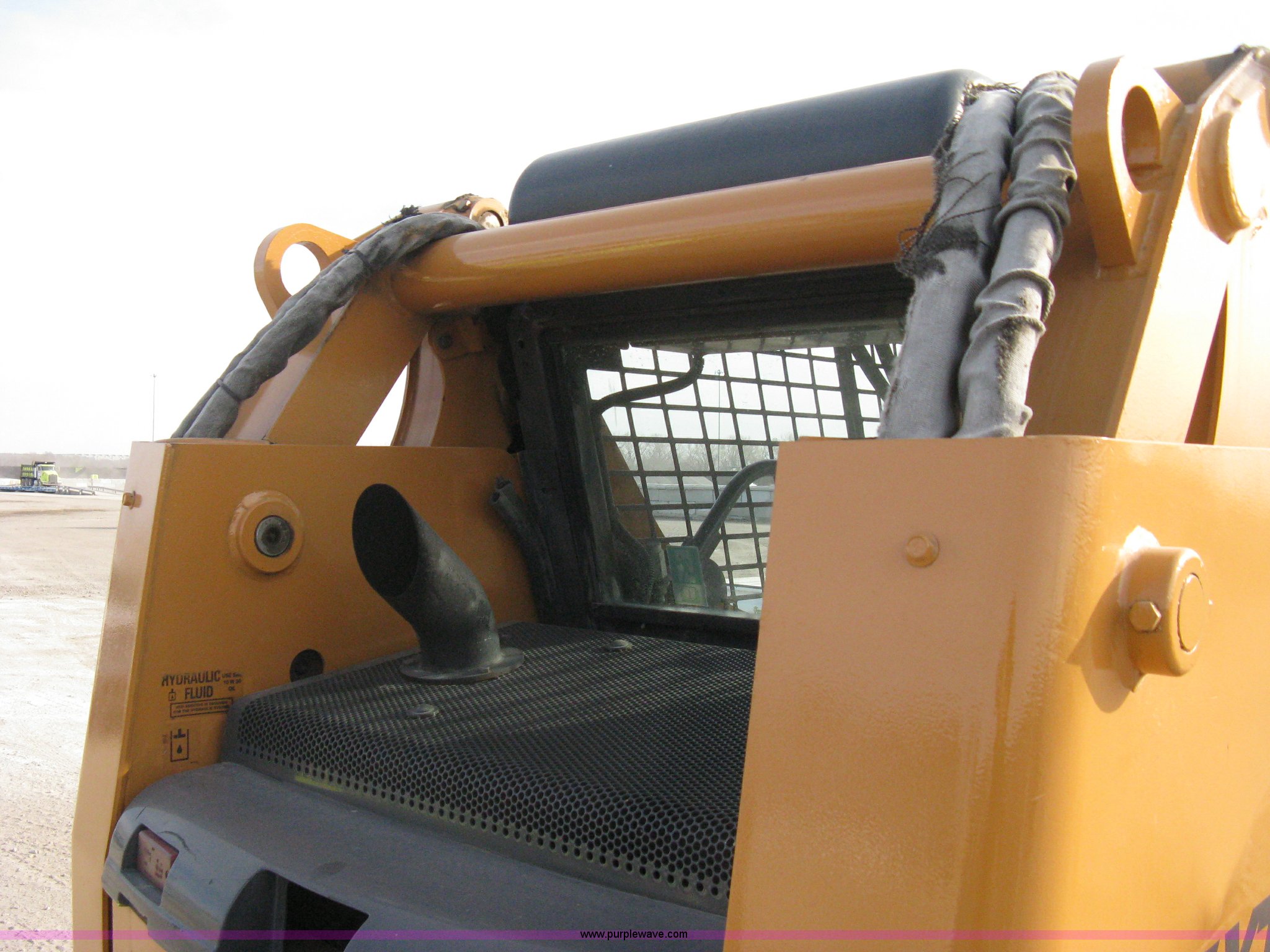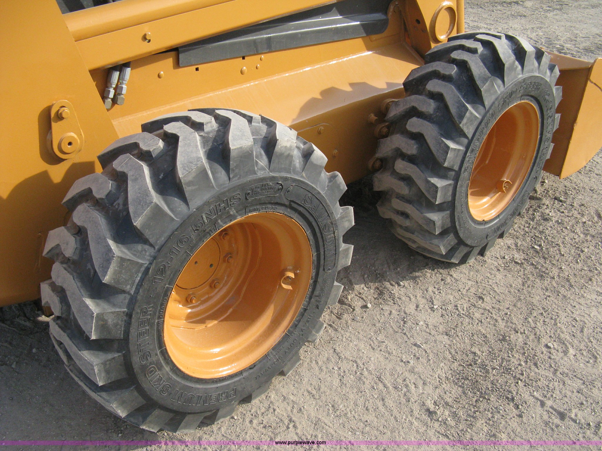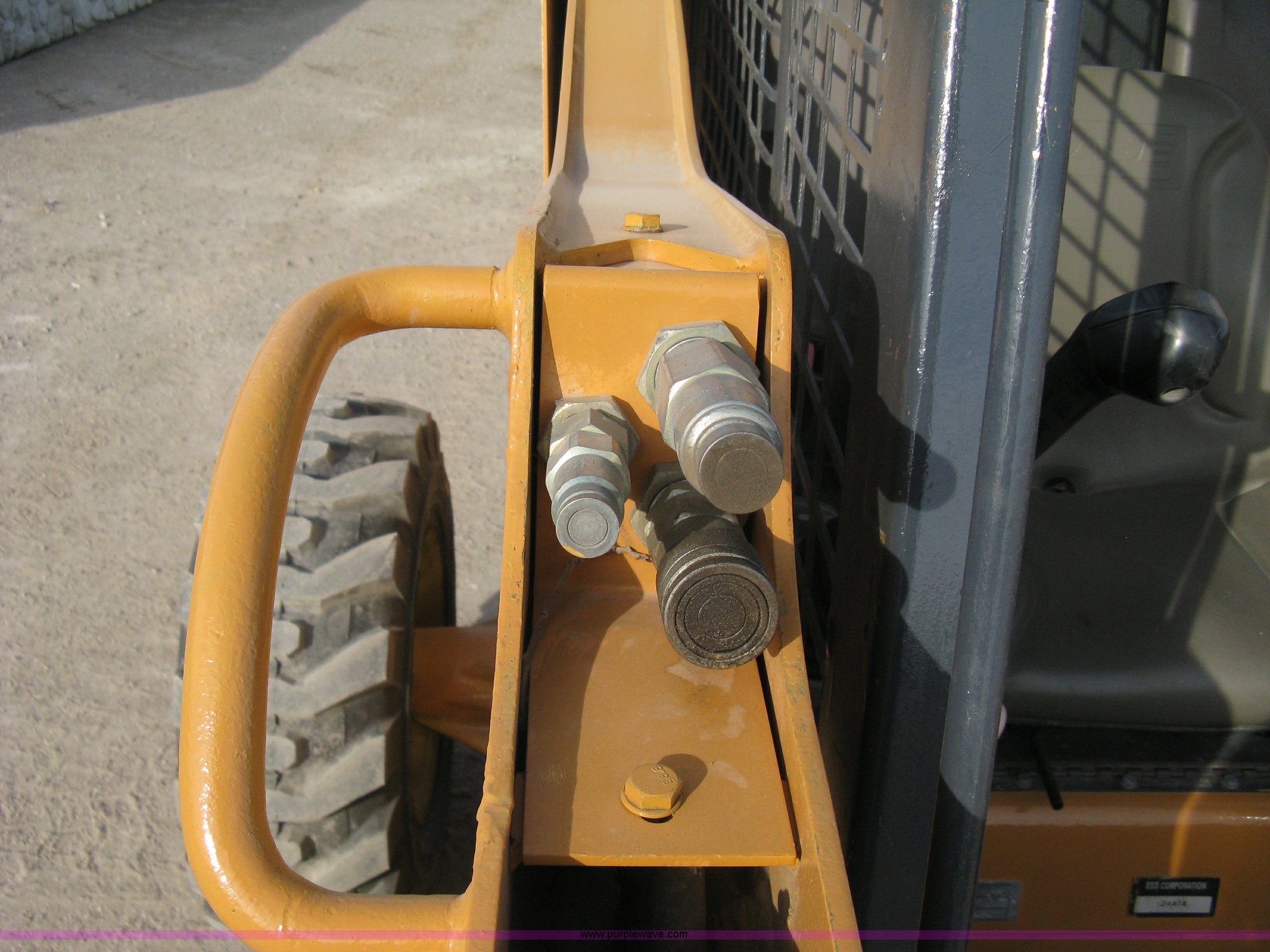 Purple Wave is selling a used Skid Steer Loader in Kansas. This item is a 2004 Case 85XT-HG skid steer with the following: 4,116 hours on meter, Four cylinder diesel engine, OROPS, 82" bucket, Bolt-on toothed bar, Bolt-on edge, Loader joystick hand control, (5) auxiliary hydraulic remotes, Electric remote, Key start converted to switch in security box, Work lights, New 12-16.5NHS tires, Serial JAF411745