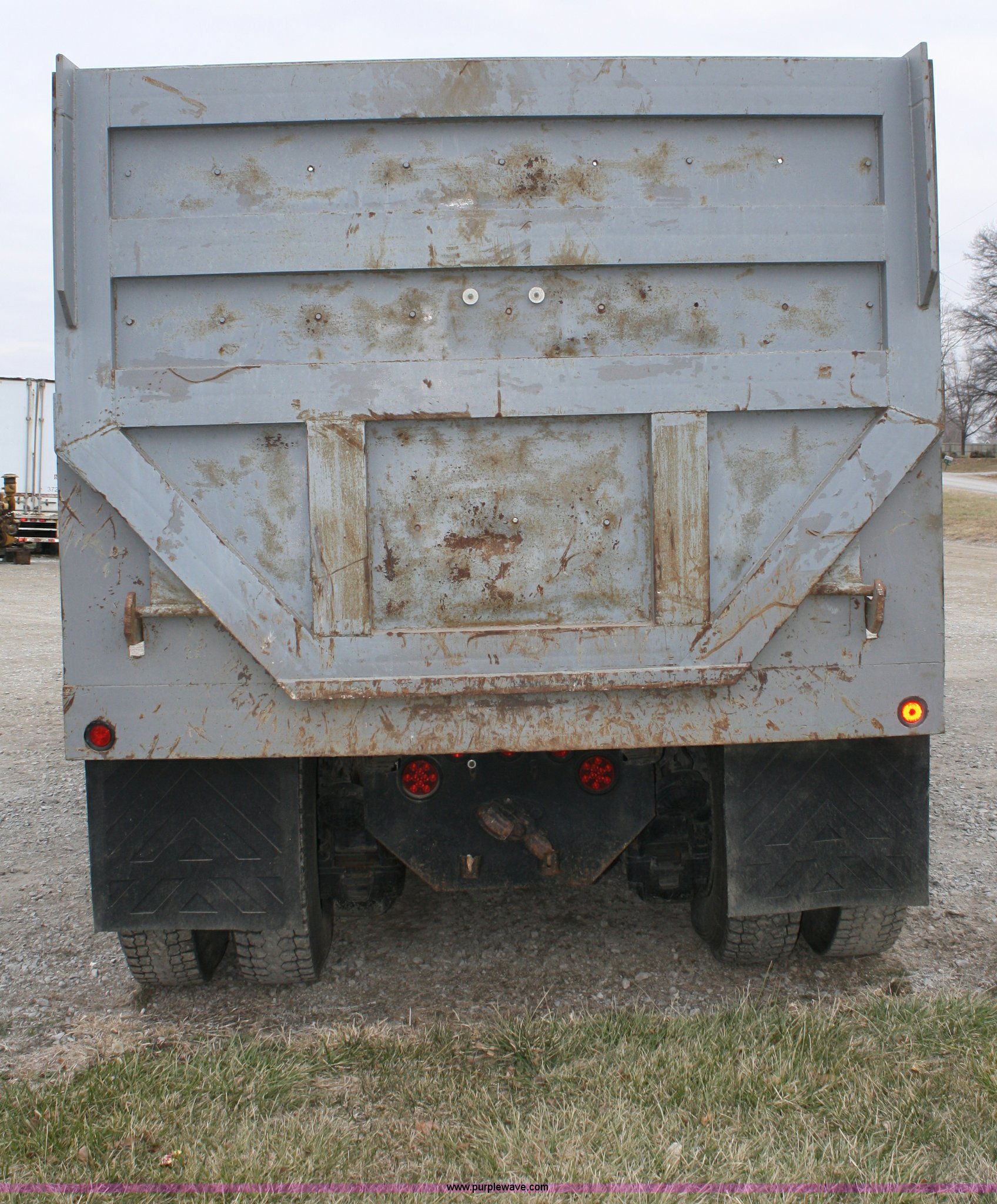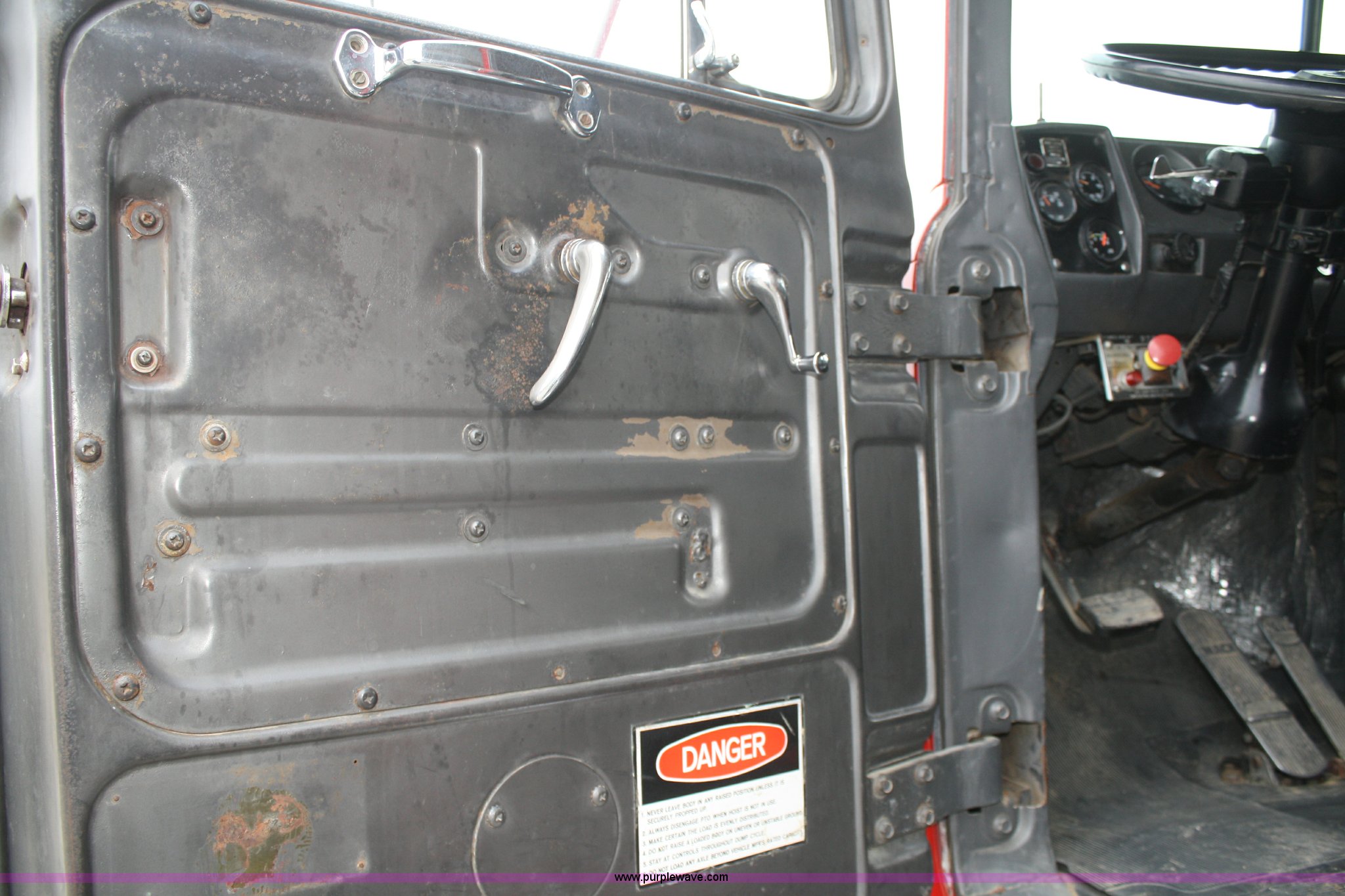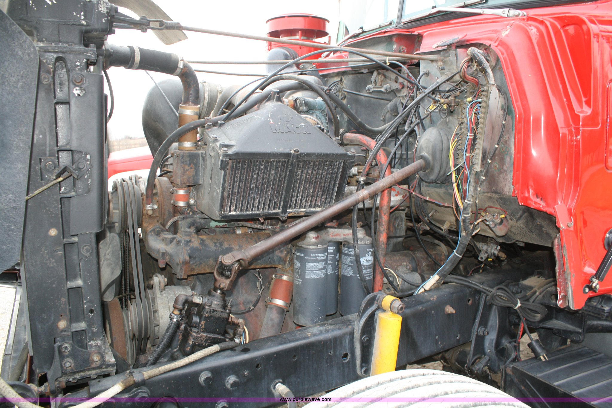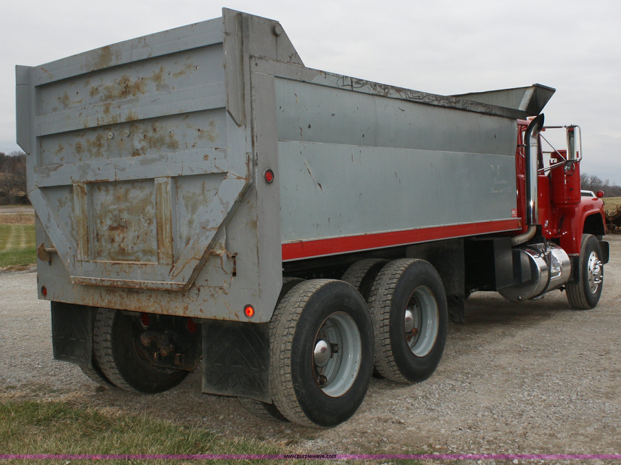 Purple Wave is selling a used Construction Dump Truck in Kansas. This item is a 1978 Mack dump truck with the following: 635,728 miles on odometer, Mack 287 diesel engine, 300 horse power, Heads reworked within last 5,000 miles, 10 speed twin stick manual transmission, Twin screw, AC and heat, New AC system within last 5,000 miles, AM/FM/CD, Air ride seat, 16' barrel bed, Pneumatic tailgate latch, Triple frame, Singel ram four stage hoist, Dual 75 gallon fuel tanks, Block heater, Pintle hitch, Mack walking beam suspension, PTO, Air brakes, New brakes installed last year, Aluminum front wheels, 11R22.5 rear tires, 315/80R22.5 front tires