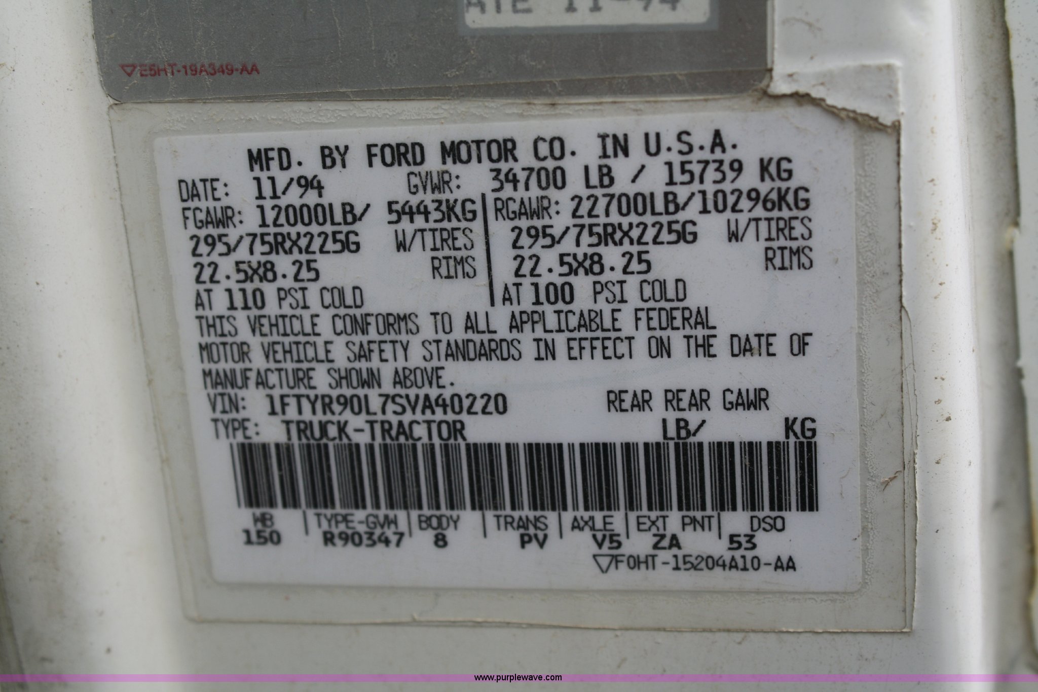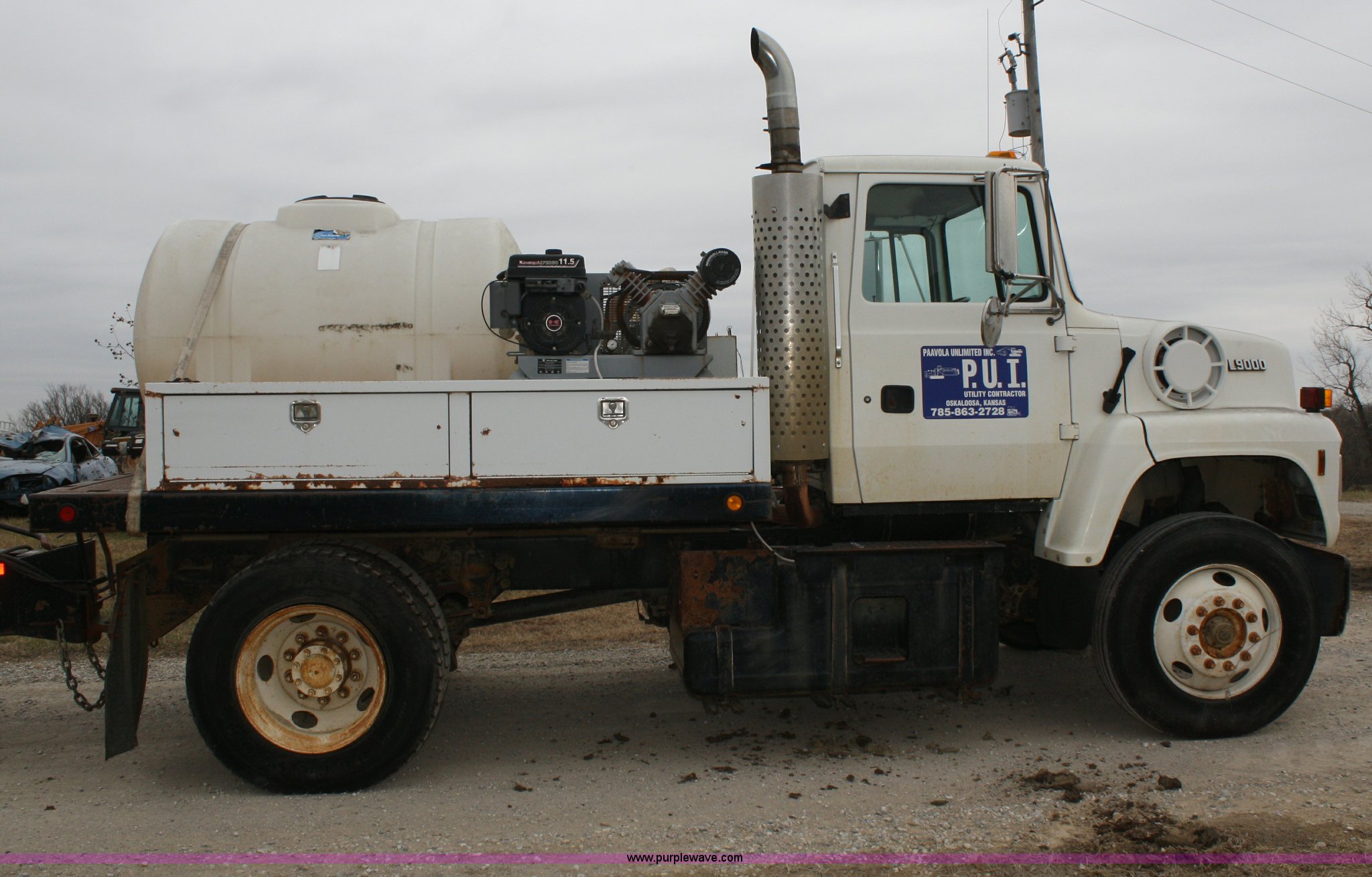 Purple Wave is selling a used Flat Bed Truck in Kansas. This item is a 1995 Ford L9000 flatbed truck with the following: 93,239 miles on odometer, Cummins L10 10.0L diesel engine, 280 HP, Eaton Fuller 10 speed manual transmission, AC and heat, AM/FM/Cassette, Air ride seat, Heated mirrors, 9'6" x 8'2" flatbed, Dual 95 gallon fuel tanks, Air brakes, Spring suspension, Pintle hitch, New batteries in July, 295/75R22 tires, GVWR 34,700 lbs, FAWR 12,000 lbs, RAWR 22,700 lbs, Bed contents not included, Flat tire will be fixed