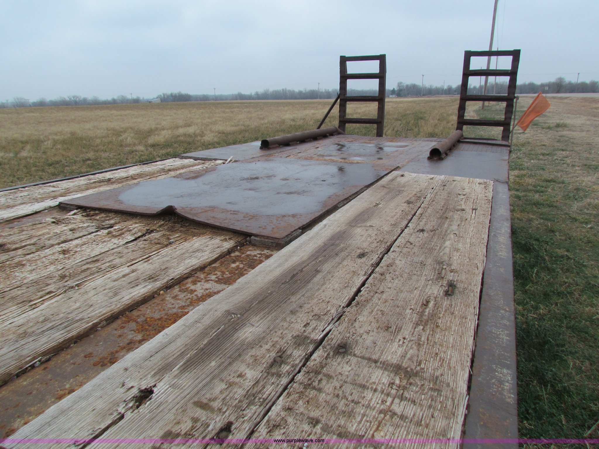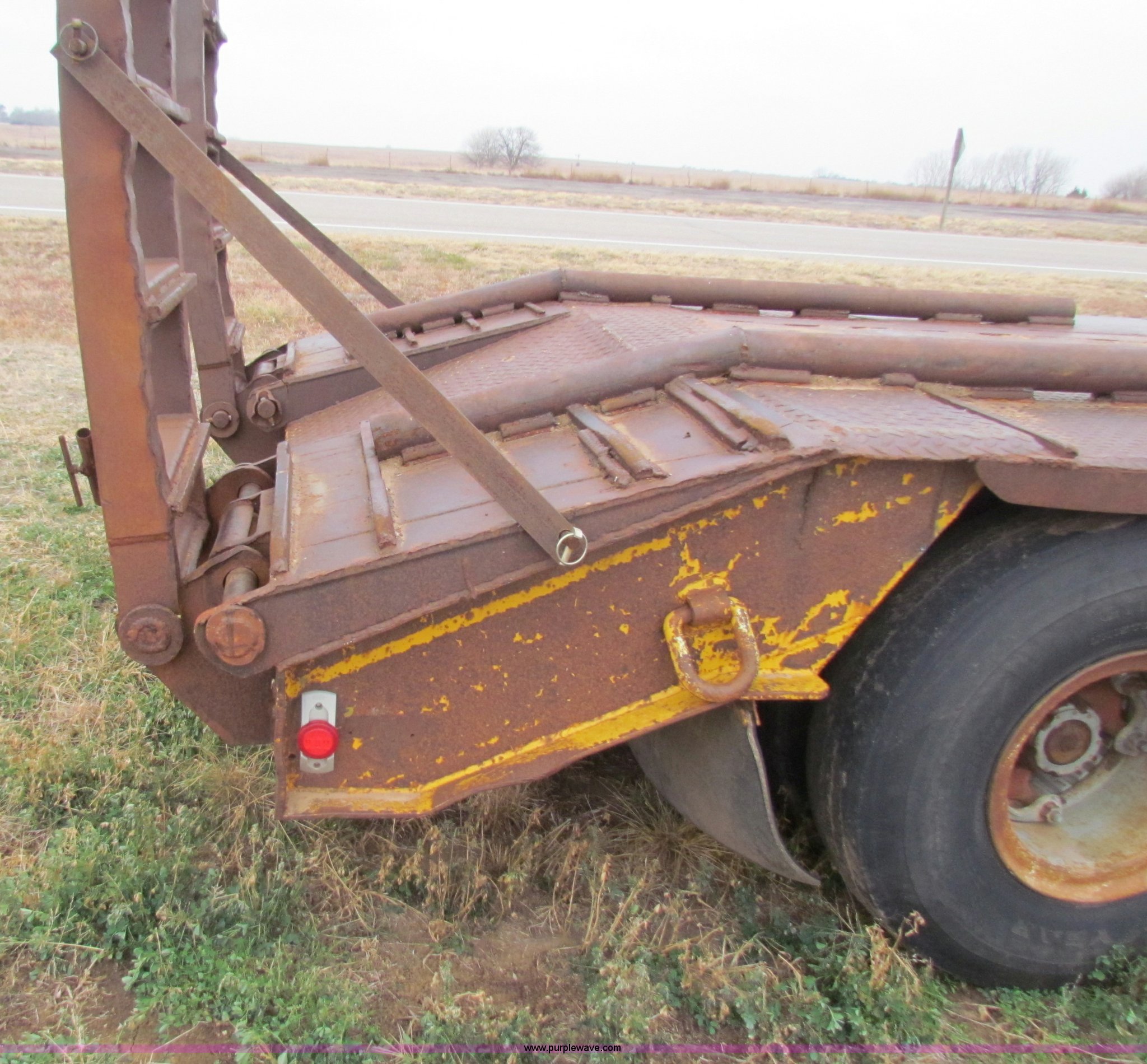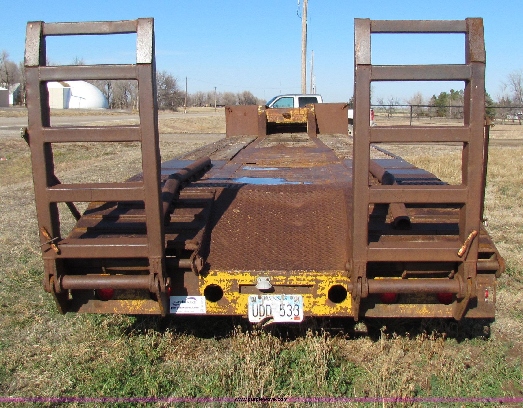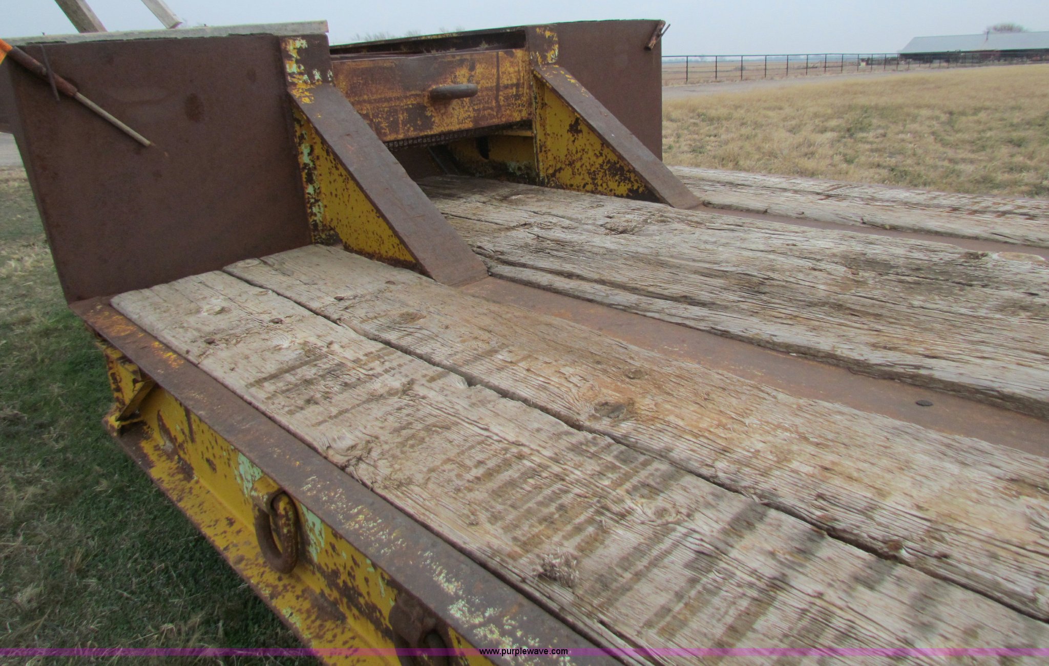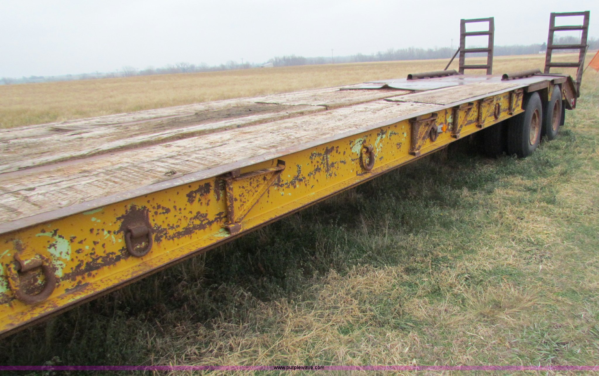 Purple Wave is selling a used Equip. Trailer in Kansas. This item is a 1976 Aztec 30 ton equipment trailer with the following: 35'L x 8'W, 32' deck, 3' dove tail, 9'6" neck over, Recently replaced wiring harness and rear lights, 10R15TR tires, (2) extra tires included